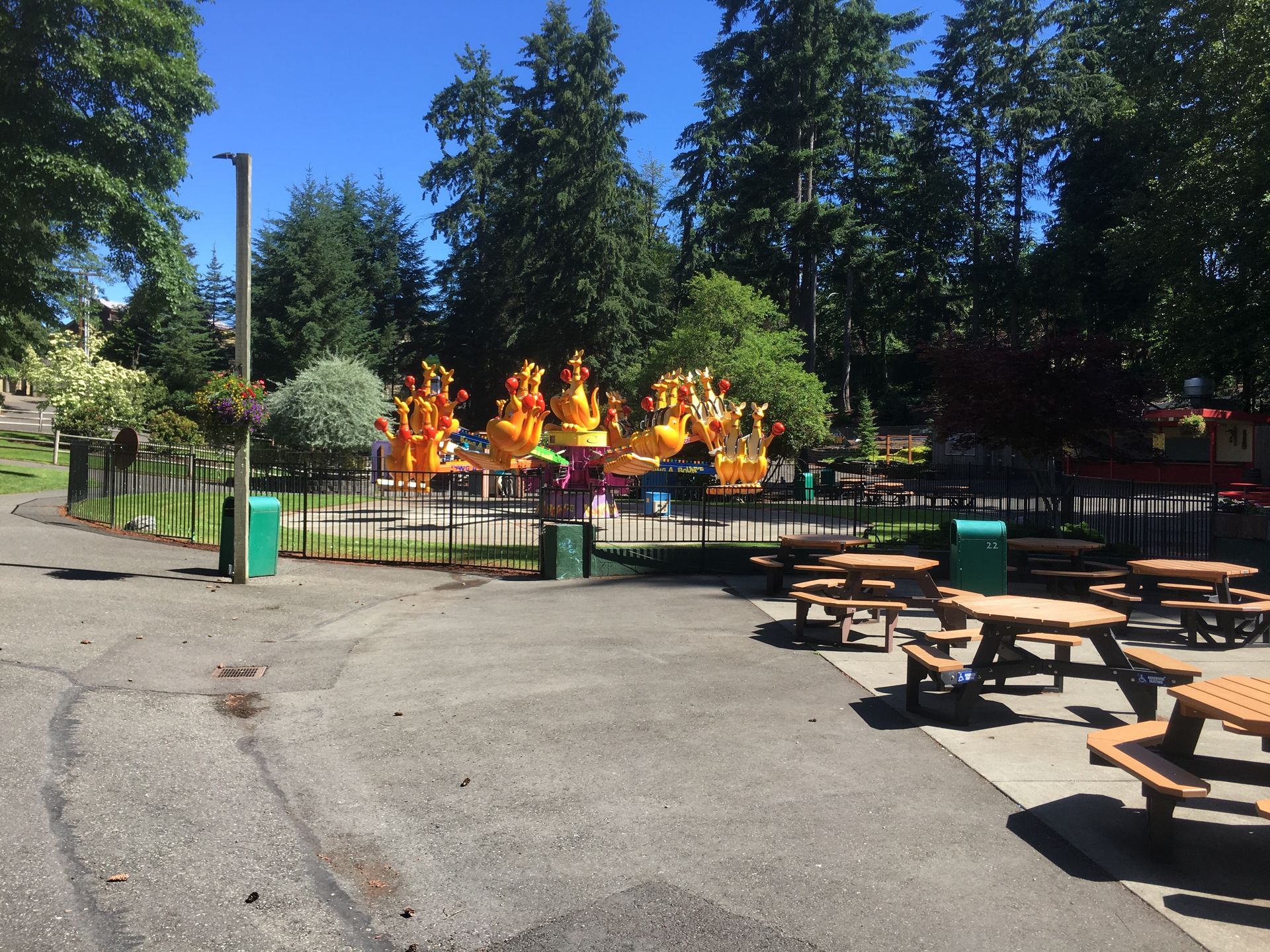 Looping Schaukel, die nett gestaltet auf Mitfahrer wartete. Leider waren einige Attraktionen geschlossen, so konnte ich die Tubing Rutsche nicht testen.