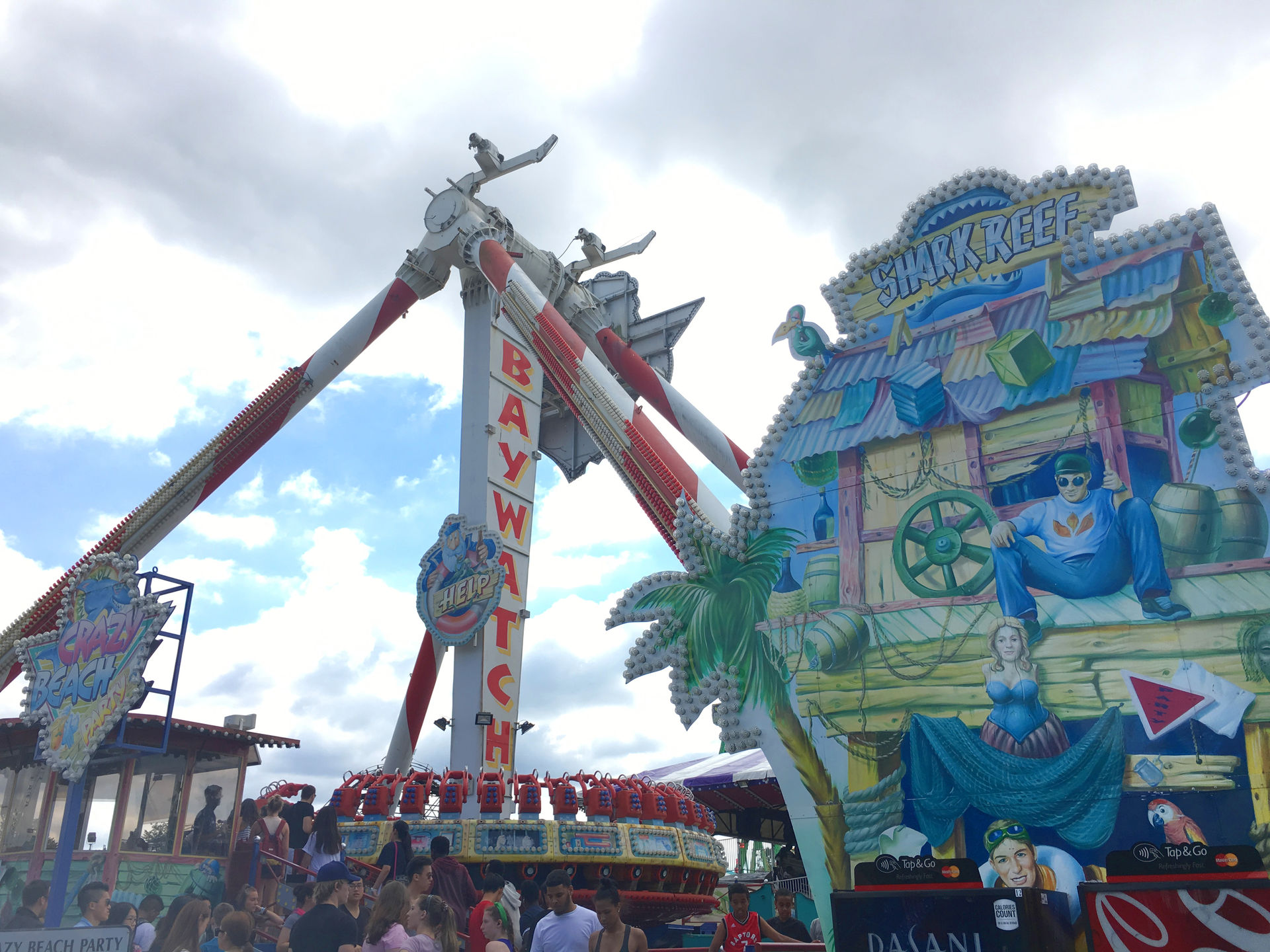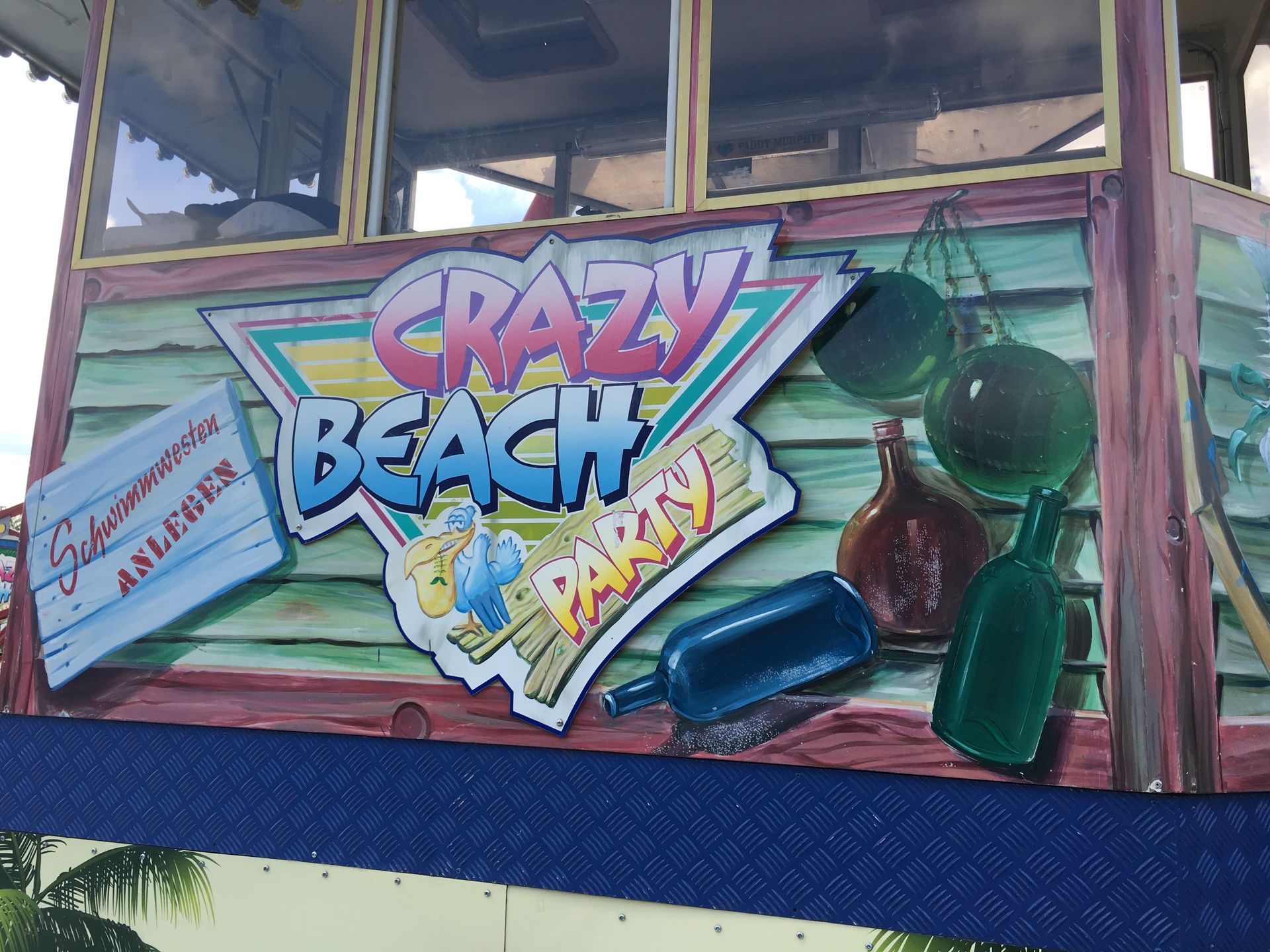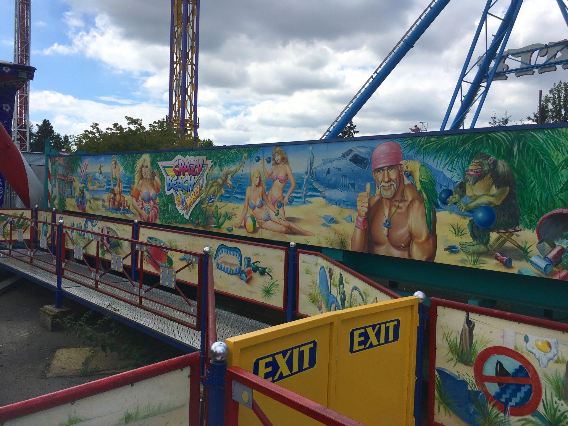 Weiter geht's zum für mich eigentlichen Besuchsgrund: Die Crazy Beach Party. Stand sie vormals auf dem Platz, auf dem sich nun The Beast befindet, wurde die Anlage leider in die hinterste Ecke verbannt. Hier steht sie nun, eng in einer Reihe, und wartet darauf, die Besucher durch die Luft zu drehen. Trotz der Lage im Park sowie dem Alter der Anlage finden sich zum Glück noch genug Personen, die der verrückten Strandparty beiwohnen wollen, die Fahrten waren allesamt voll. Der einstige Glanz hat allerdings schon ziemlich gelitten, an vielen Ecken befindet sich Grünspan und ein wenig Klarlack könnte das Gerät auch wieder vertragen.