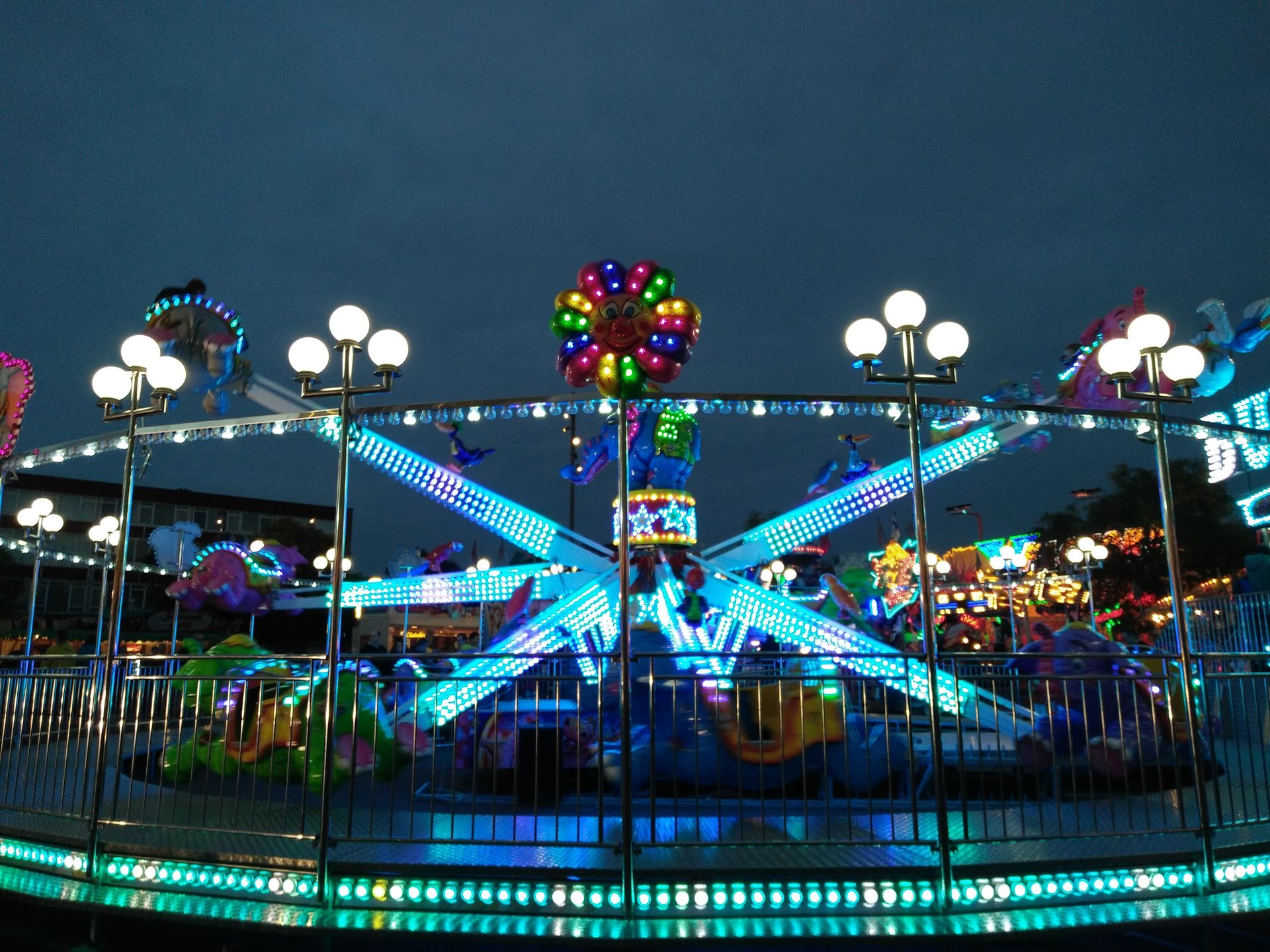 Ein ziemlich bunt und stark beleuchteter Kinderflieger: