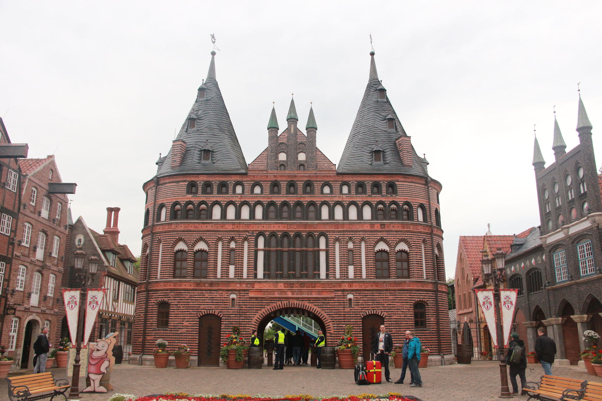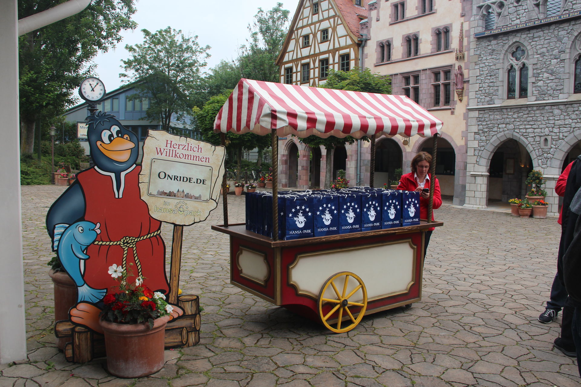 Dirk war derweil an der Kasse und holte für uns Eintrittstickets und Gutscheine für ein Mittagessen im Park. Bevor er und Markus diese verteilten, stand aber noch ein wichtiger Programmpunkt an: