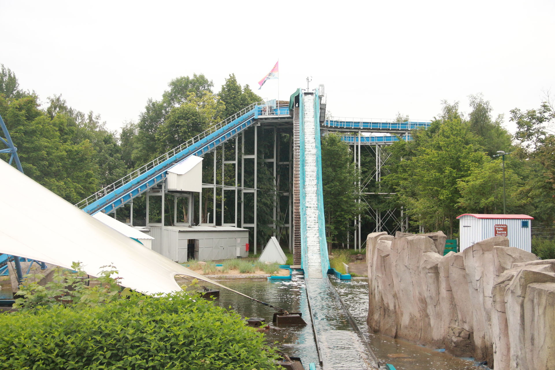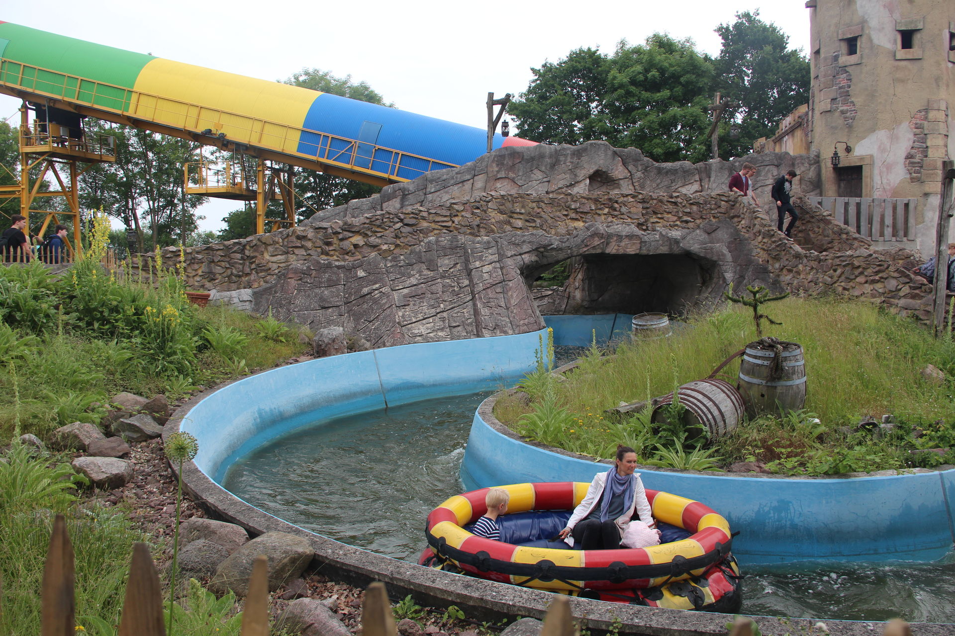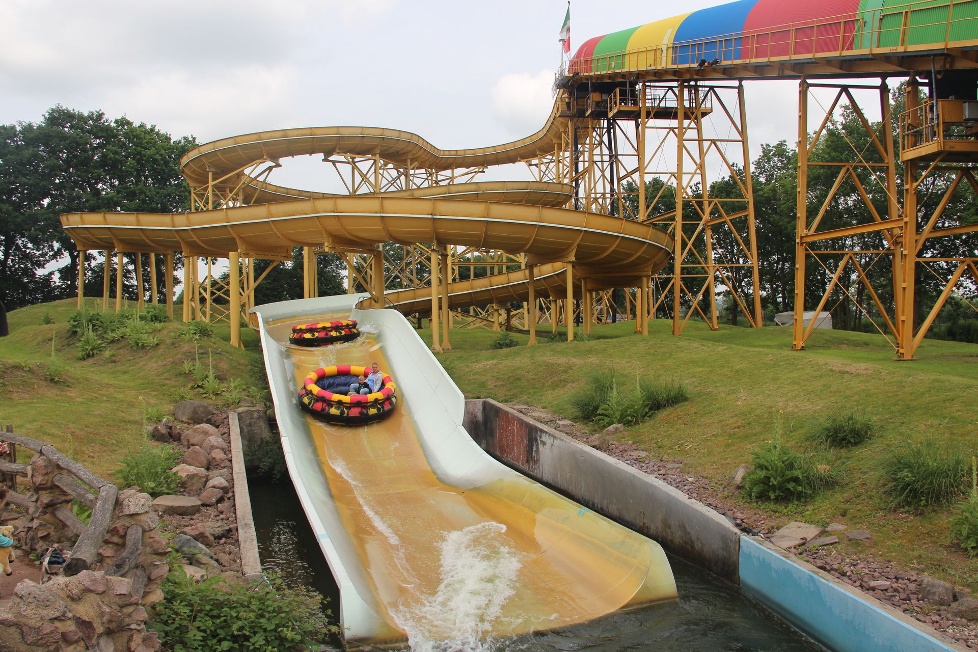 Als wir alle gegessen hatten, hatte es zum Glück auch aufgehört zu regenen und wir zogen los um die beiden übrig gebliebenen Wasserbahnen auszuprobieren.