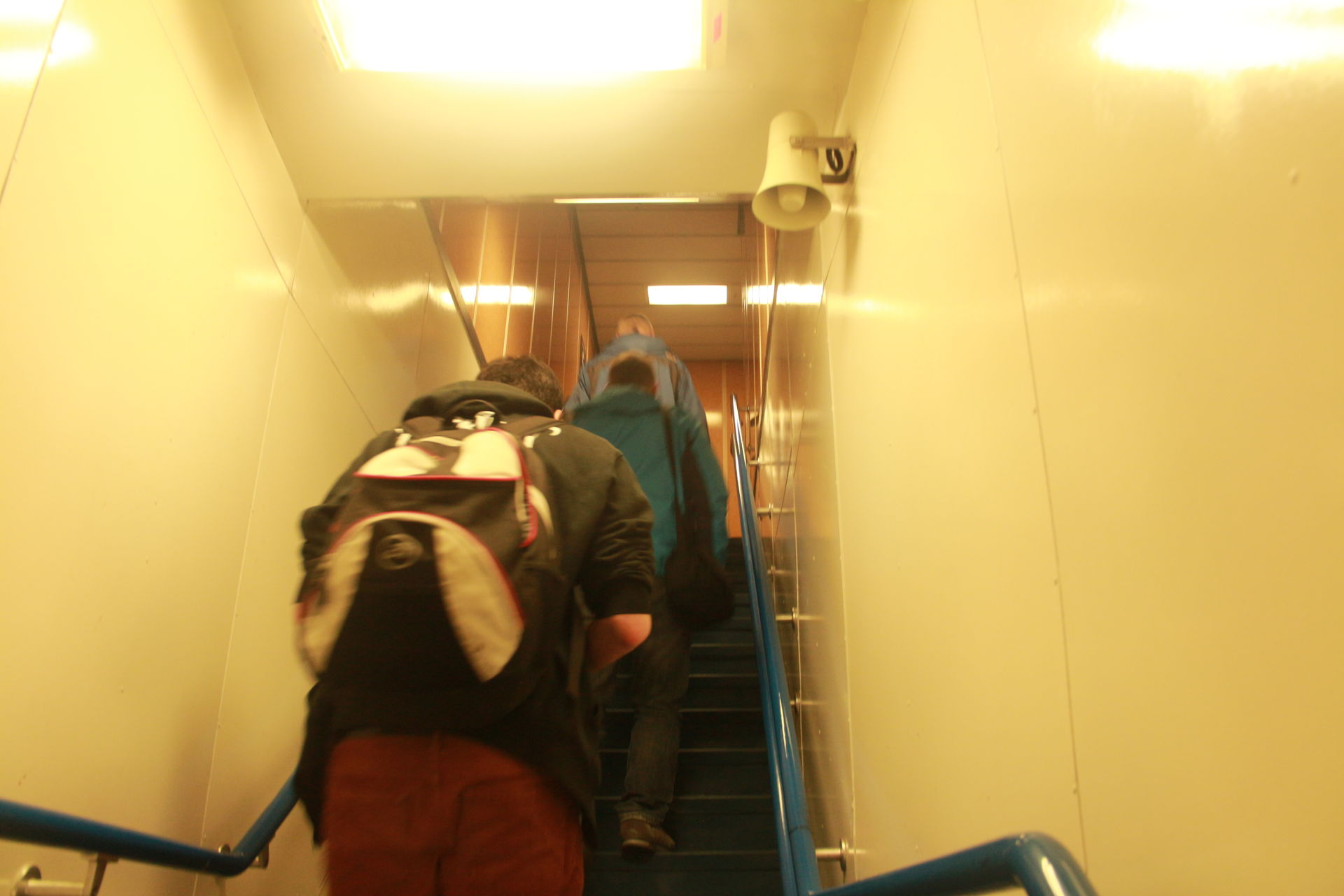 Auf der Fähre angekommen heißt es aussteigen, denn während der Überfahrt müssen alle aus ihren Fahrzeugen aussteigen und das Parkdeck verlassen.
