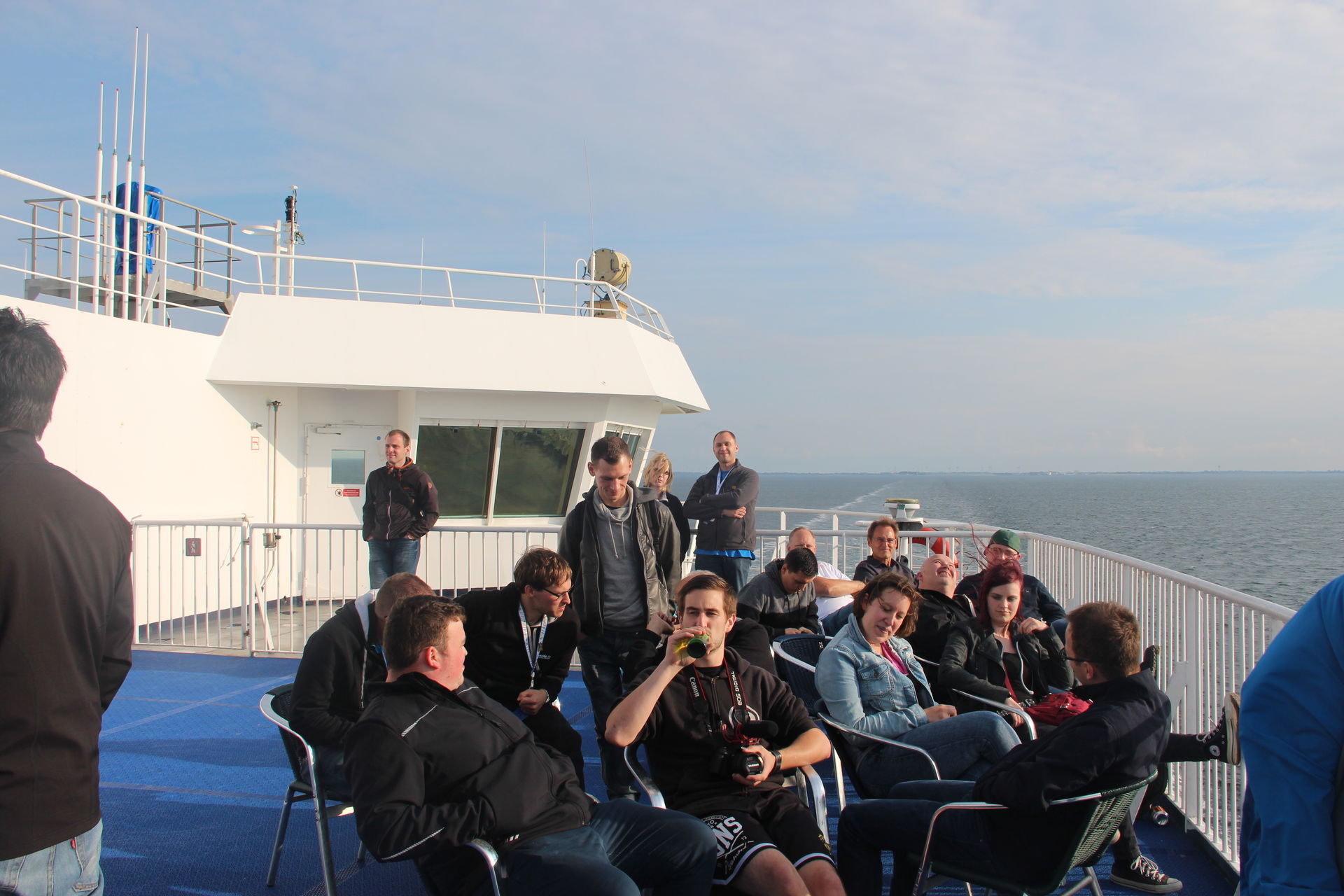 Auf dem Oberdeck angekommen hatte die Fähre schon abgelegt und es hieß "Bye Bye Deutschland".
