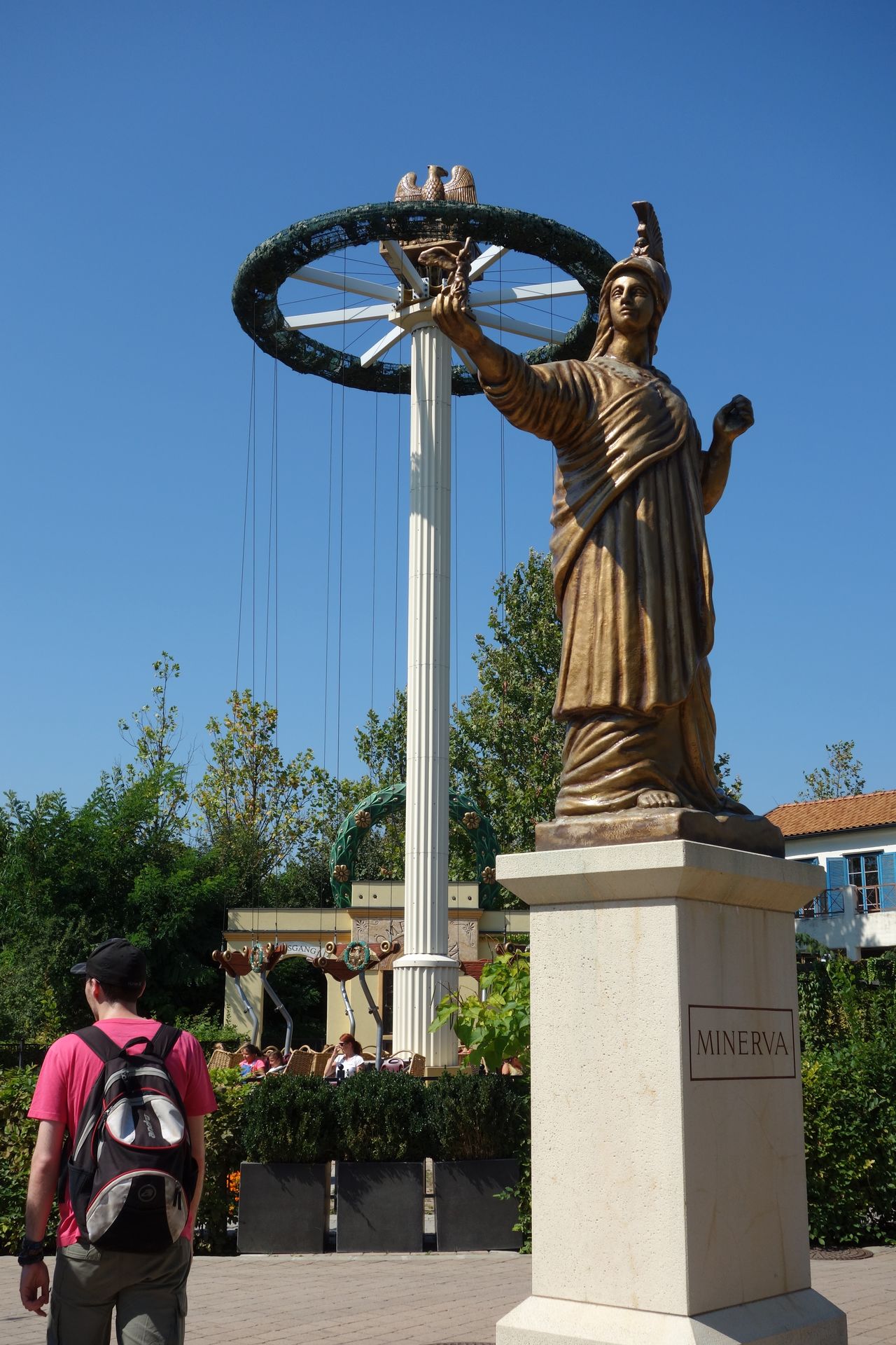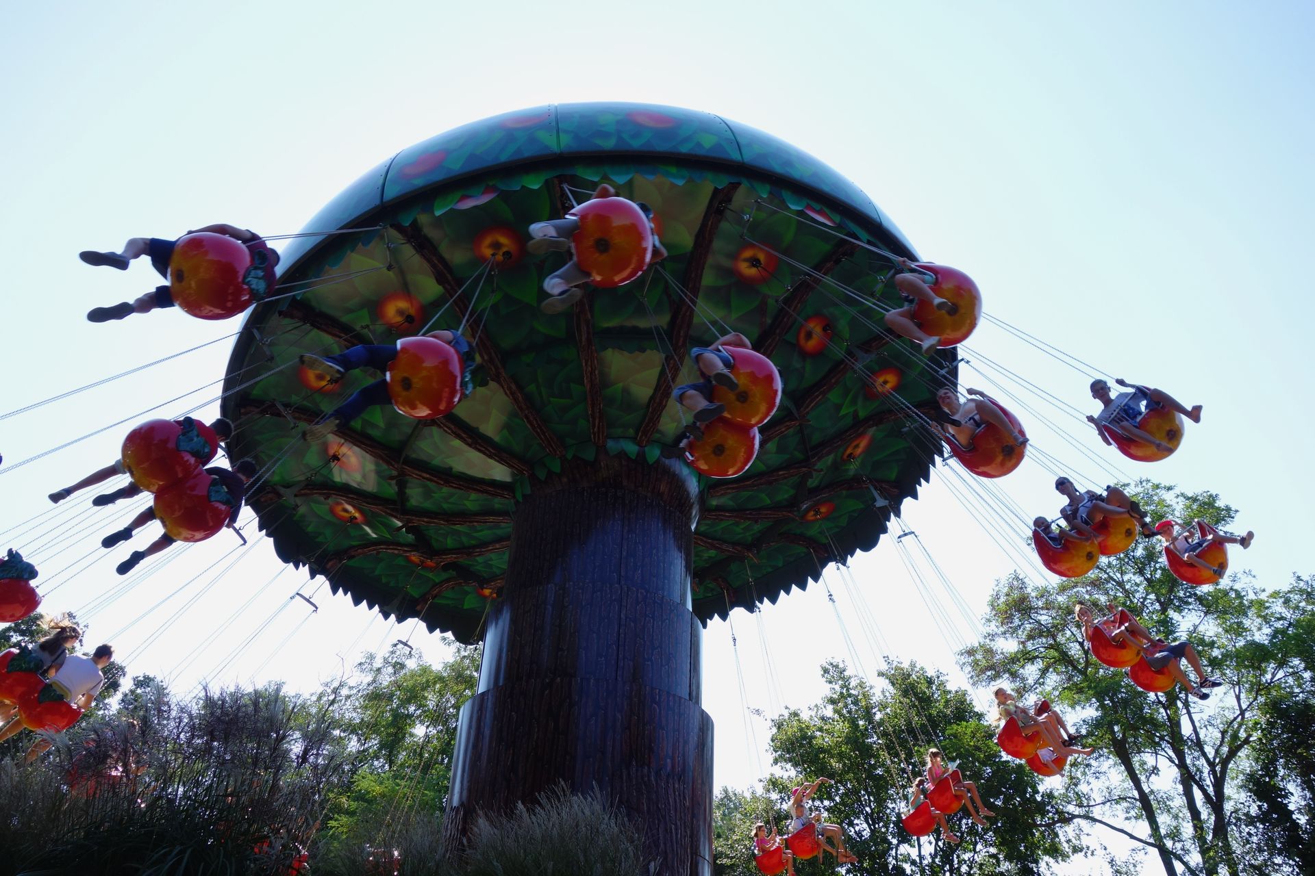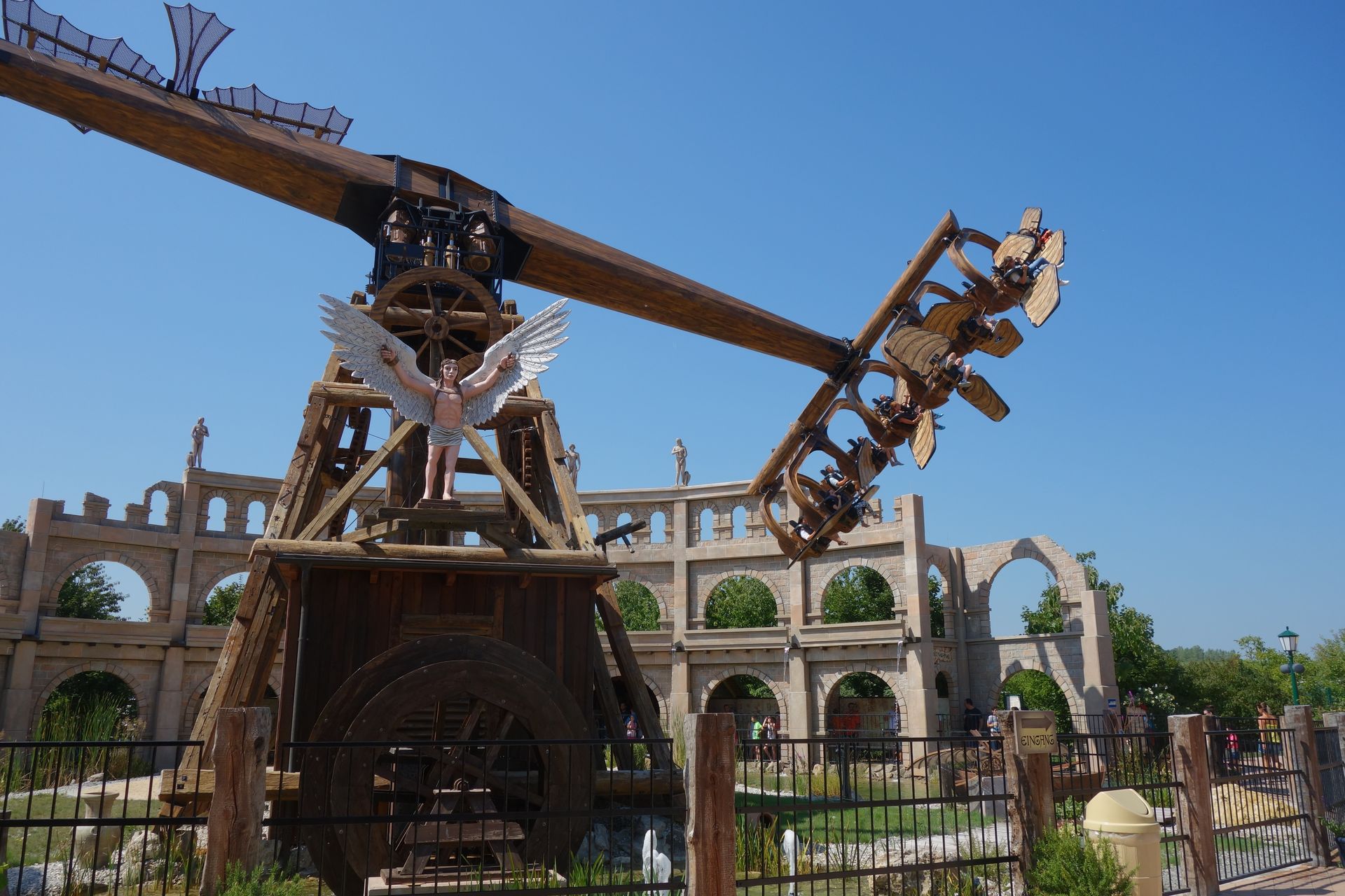 Es war also an der Zeit für Wiederholungsfahrten. Den Anfang machte die Rattenmühle, gleich nebenan tobten Nicolas und ich uns noch an den Riesenschaukeln aus. Dann gönnten wir uns mal ein Eis und entspannten etwas im Schatten. Schließlich begaben wir uns nochmal zum Götterblitz und drehten zum Finale noch eine überschlagsreiche Fahrt mit dem Sky Fly.