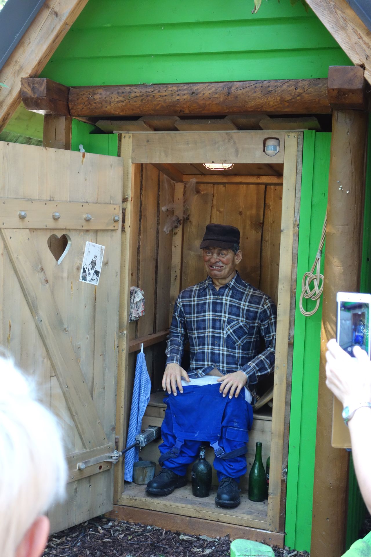 Wir gingen allerdings zunächst am Eingang vorbei und umrundeten quasi einmal die Station. Denn neben dem Ausgang gibt es noch das sogenannte Rattenloch. Ein nicht ganz einfacher Weg quer durch das Stationsgebäude, über den man wieder zurück zum Eingang kommt. Nette Idee und zum Teil cool gemacht, aber ich würde den Weg außenrum doch bevorzugen. Da muss man nicht klettern und stößt sich seine Knie nicht an irgendwelchen Holzpodesten mitten in einer dunklen Röhre...