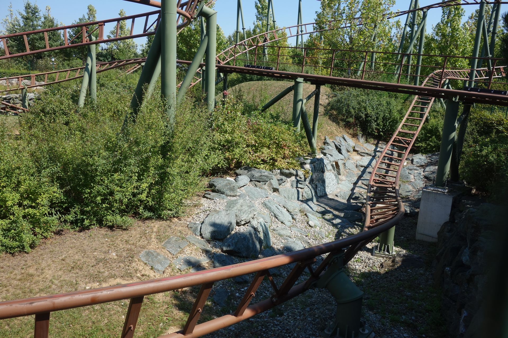 Stattdessen schauten wir uns noch die zweite große Achterbahn des Parks an.
