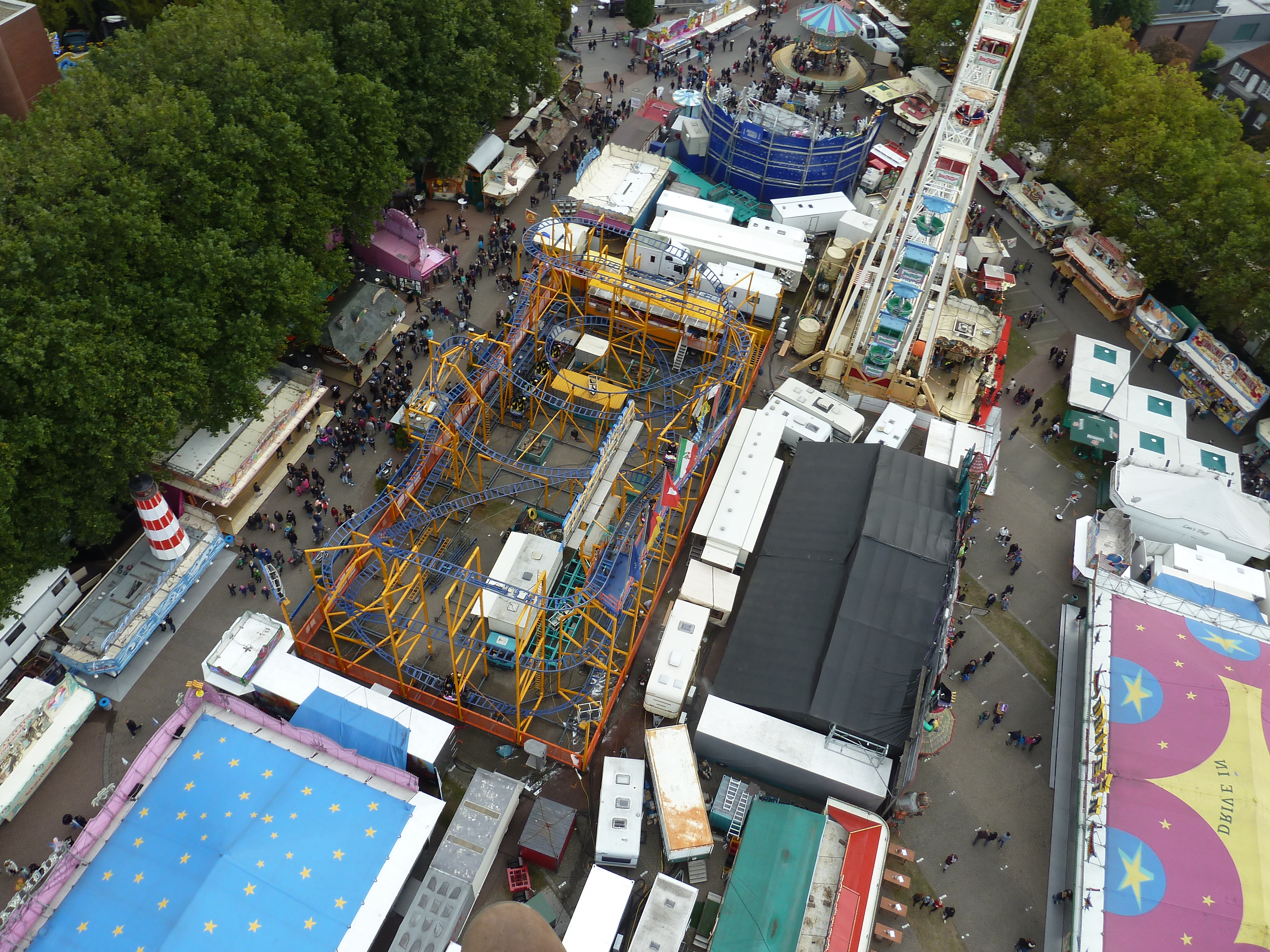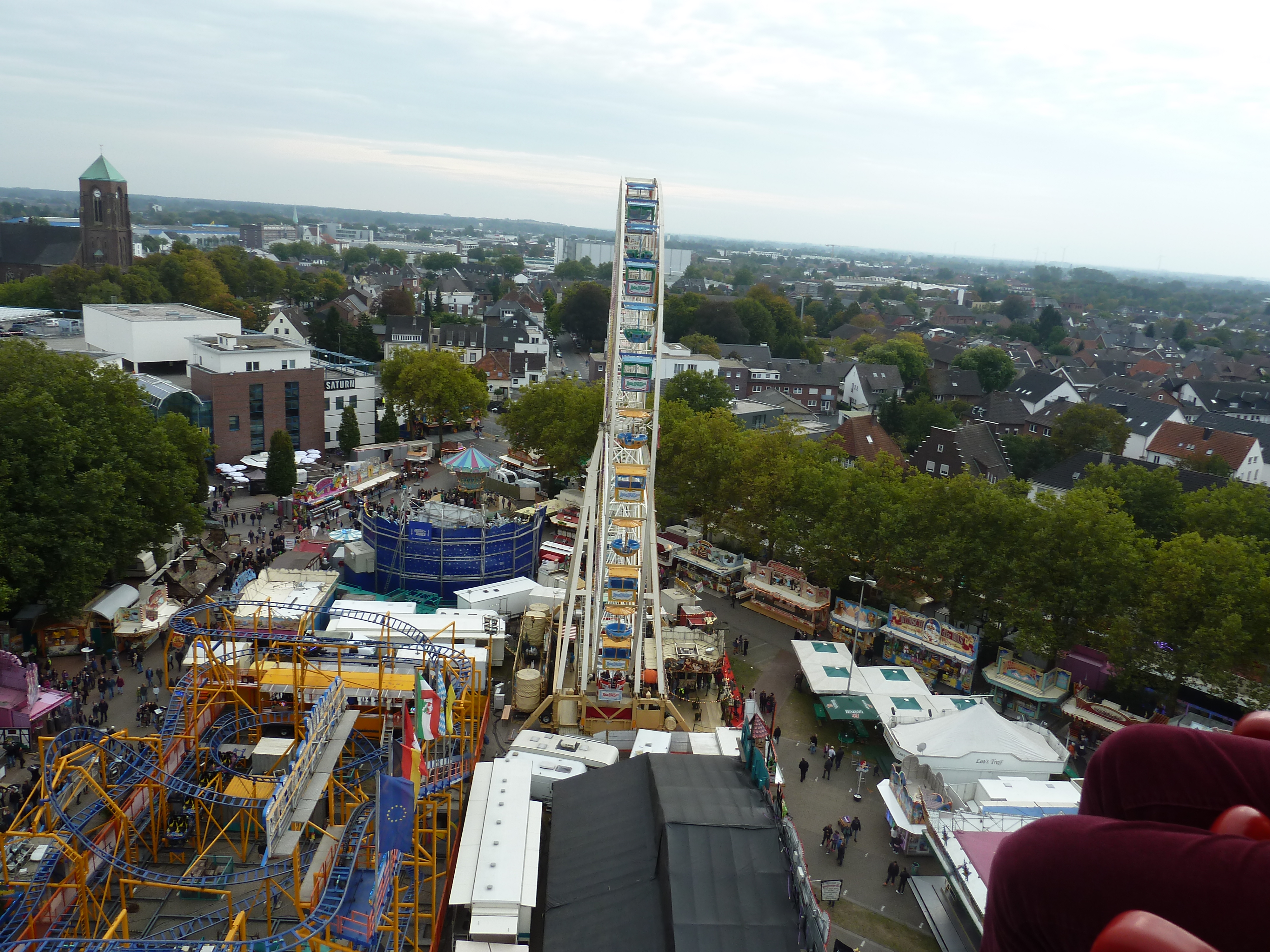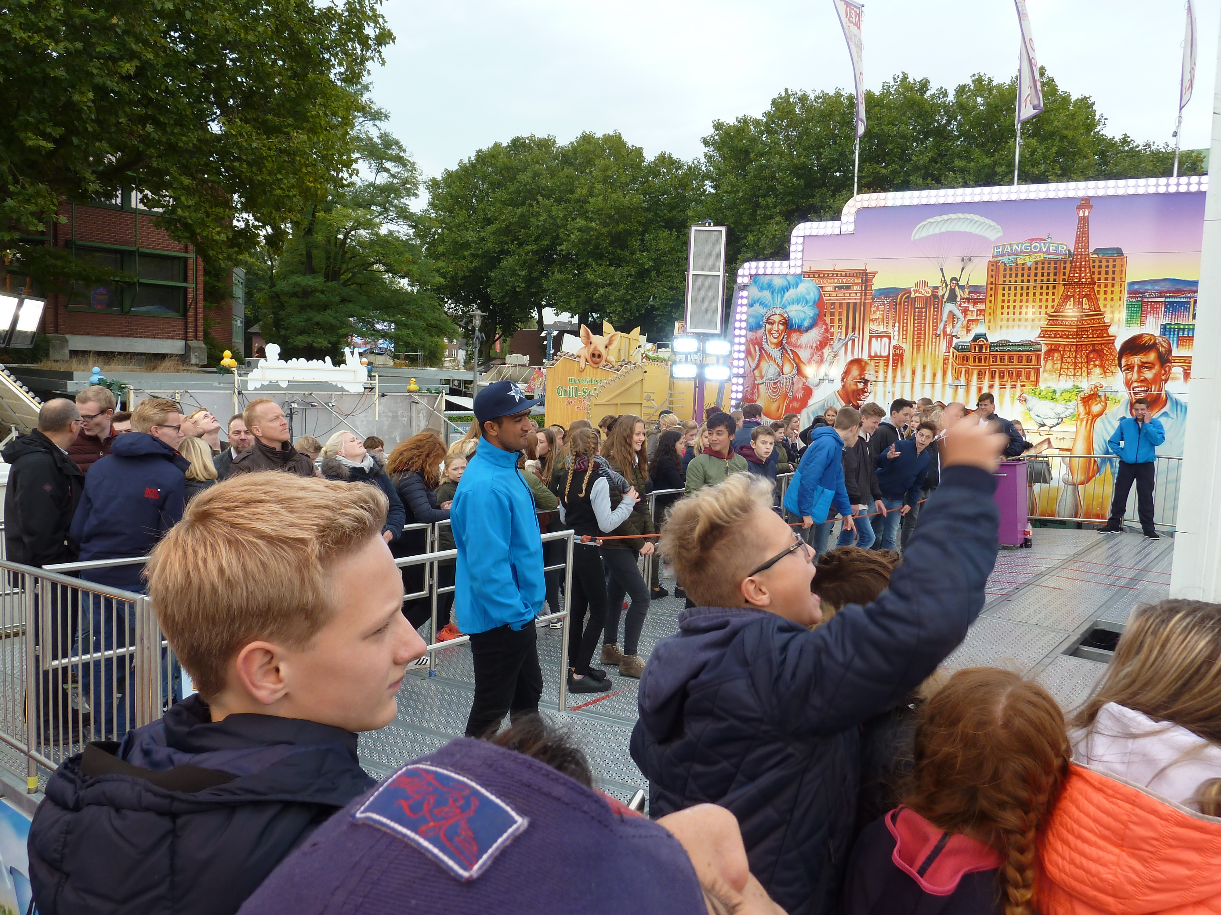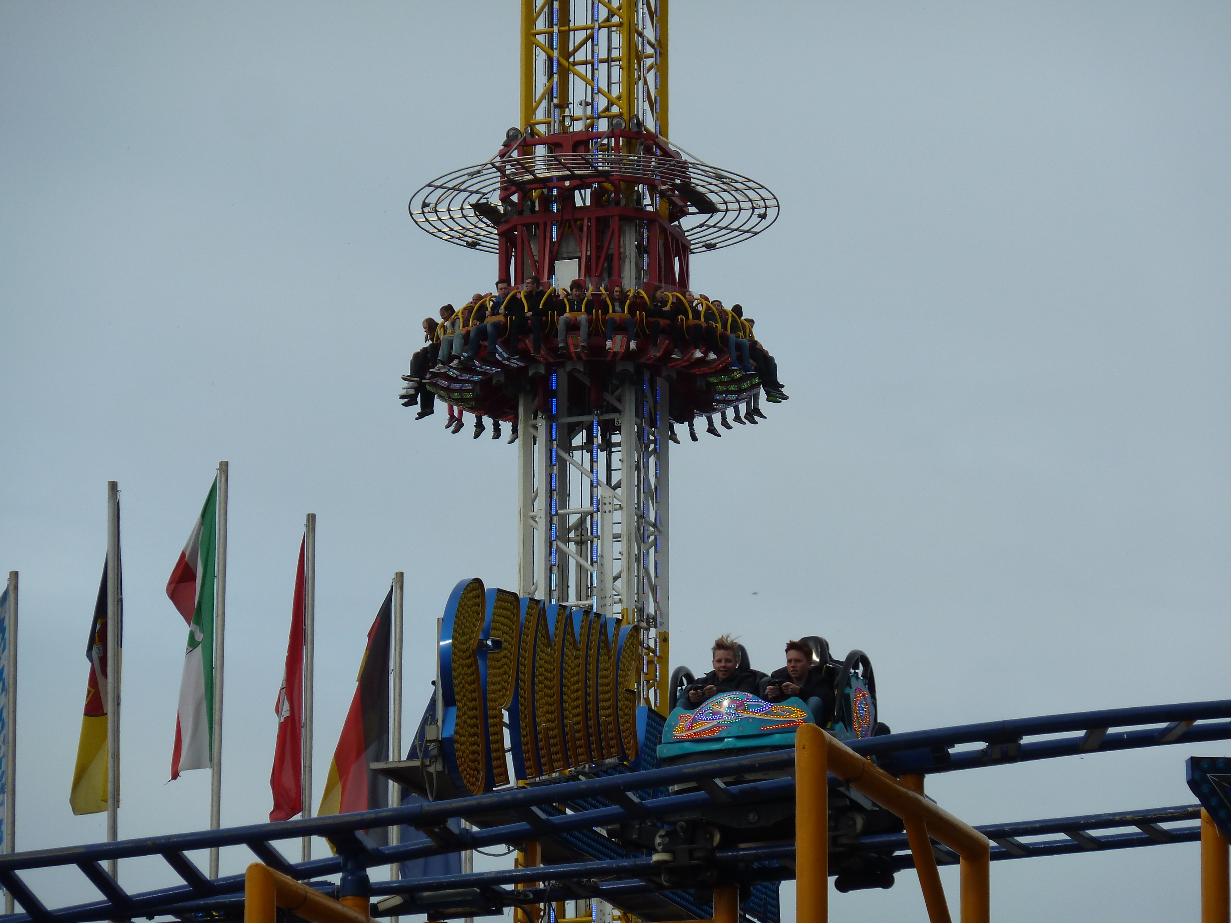 gestern startete die Bocholter Kirmes pünktlich um 14 Uhr mit einer 3-stündigen, 50% reduzierten, Happy Hour, die gut vom Familien- und U16-Publikum angenommen wurde. Um 15 Uhr war der Platz bereits gut gefüllt, motiviert wurde gefahren, gespeist und rekommandiert. Der Hangover fuhr im 1,5-Betieb für 3 Euro und wurde stark frequentiert, linke Q komplett gefült. Ebenso wurde der Breaker von den U16 Kindern stark frequentiert und auch der Spinning Racer war im 5-Chaisen-Betrieb unterwegs gewesen. Lange Schlangen bildeten sich auch vor dem Riesenrad. Interessant so eine Happy Hour püntklich zur Eröffnung. Anbei ein paar Impressionen.
