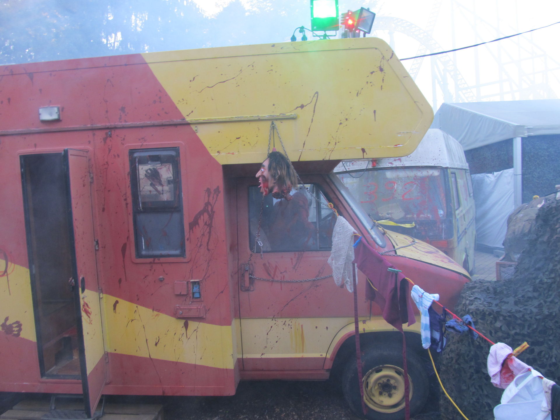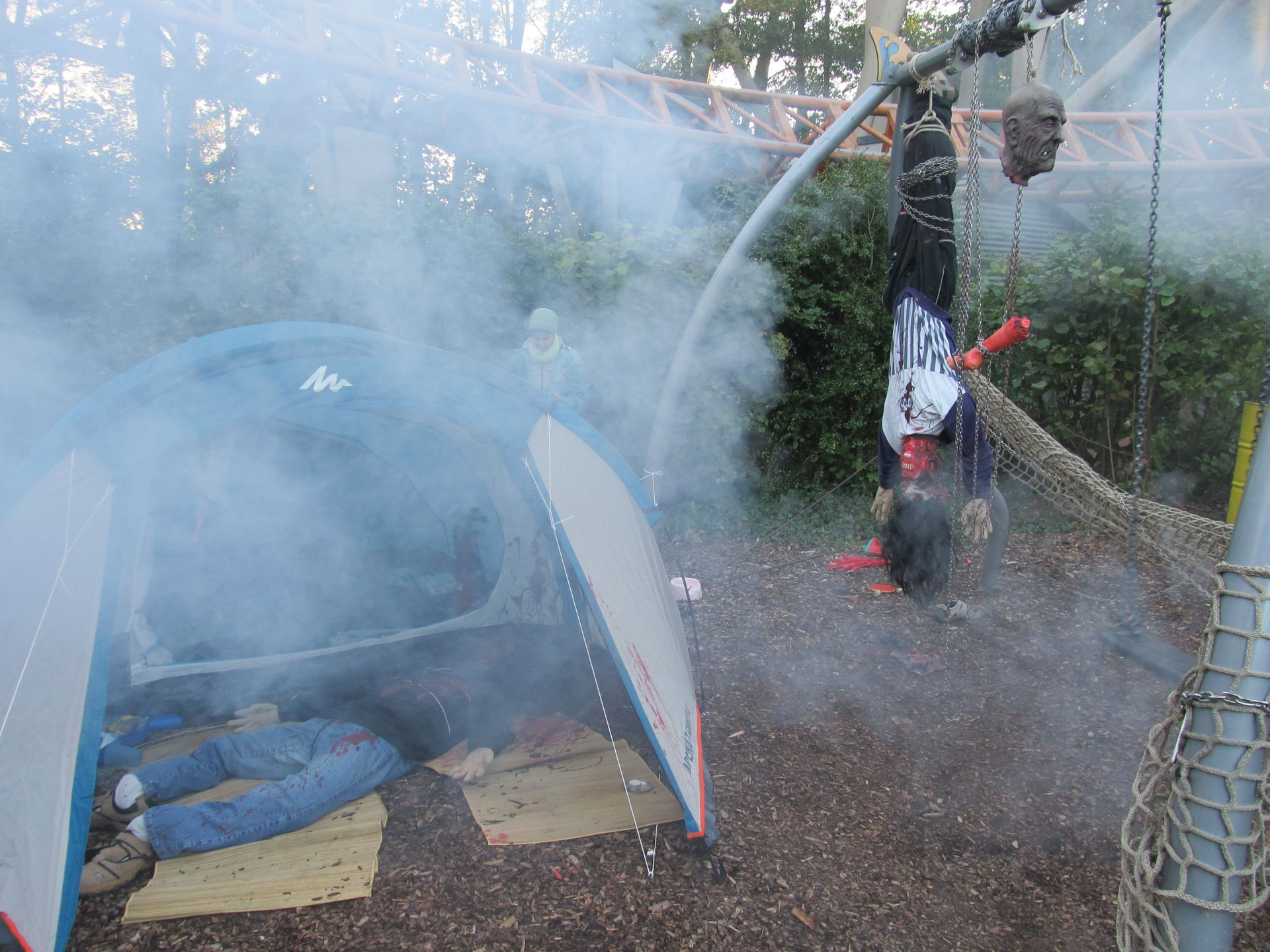 "Camp Sonnenschein" recht schnell in einen Albtraum, da auch hier die anderen Bewohner sich in schreckliche Zombies verwandelt haben. Ein Teil der Maze befindet sich dabei im Freien, sodass man hier durchaus unterschiedliche Erlebnisse hat, je nachdem ob man die Attraktion nun im Hellen oder im Dunkeln besucht. Mit zahlreichen Zelten, Wohnwagen und Wohnmobilen hat es der Holiday Park geschafft, eine atmosphärische Kulisse zu schaffen. Doch die Wagen sind nicht nur Hintergrundkulisse, sondern offenbaren den Besuchern im Laufe des Rundgangs auch von innen ihre grausamen Überraschungen...