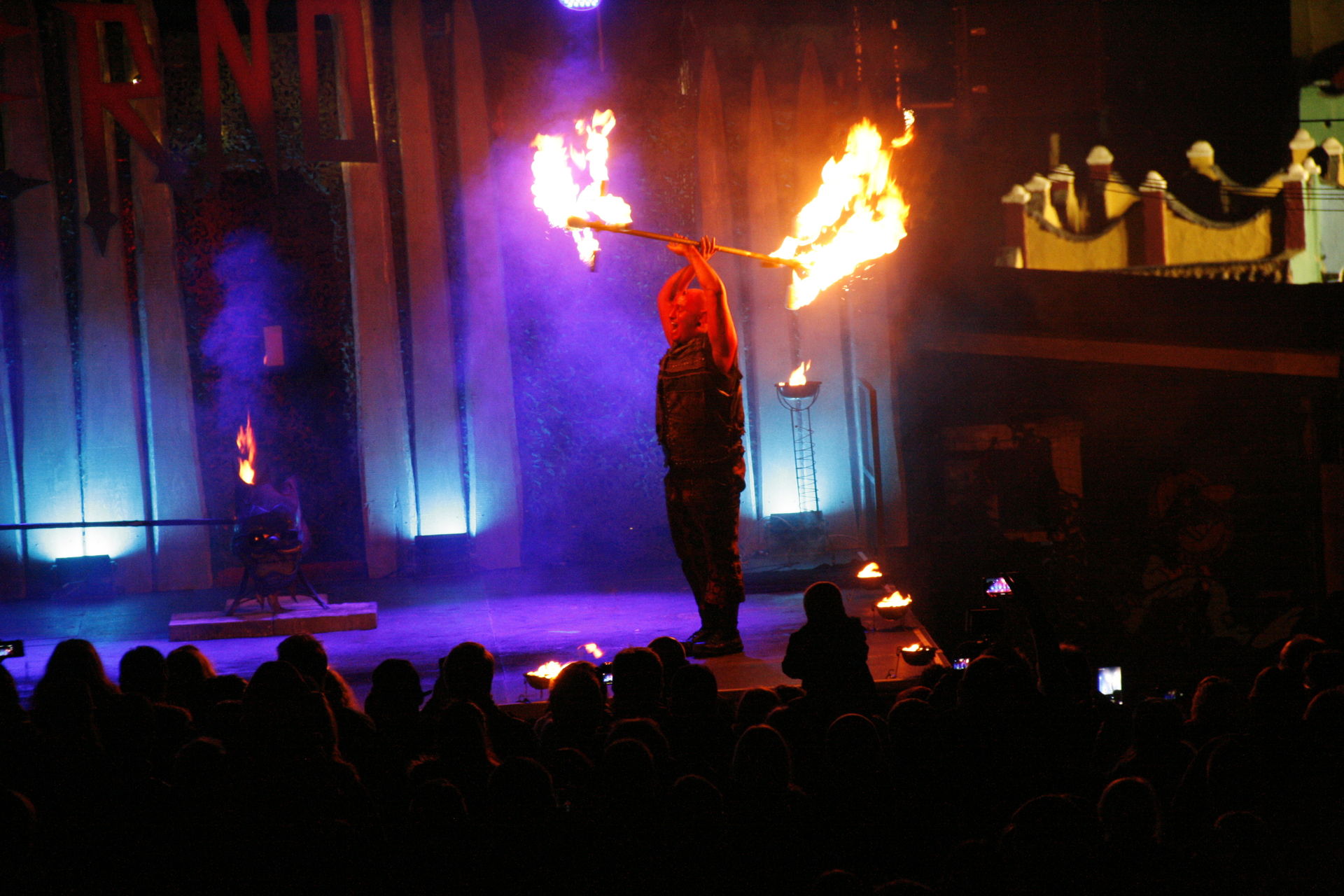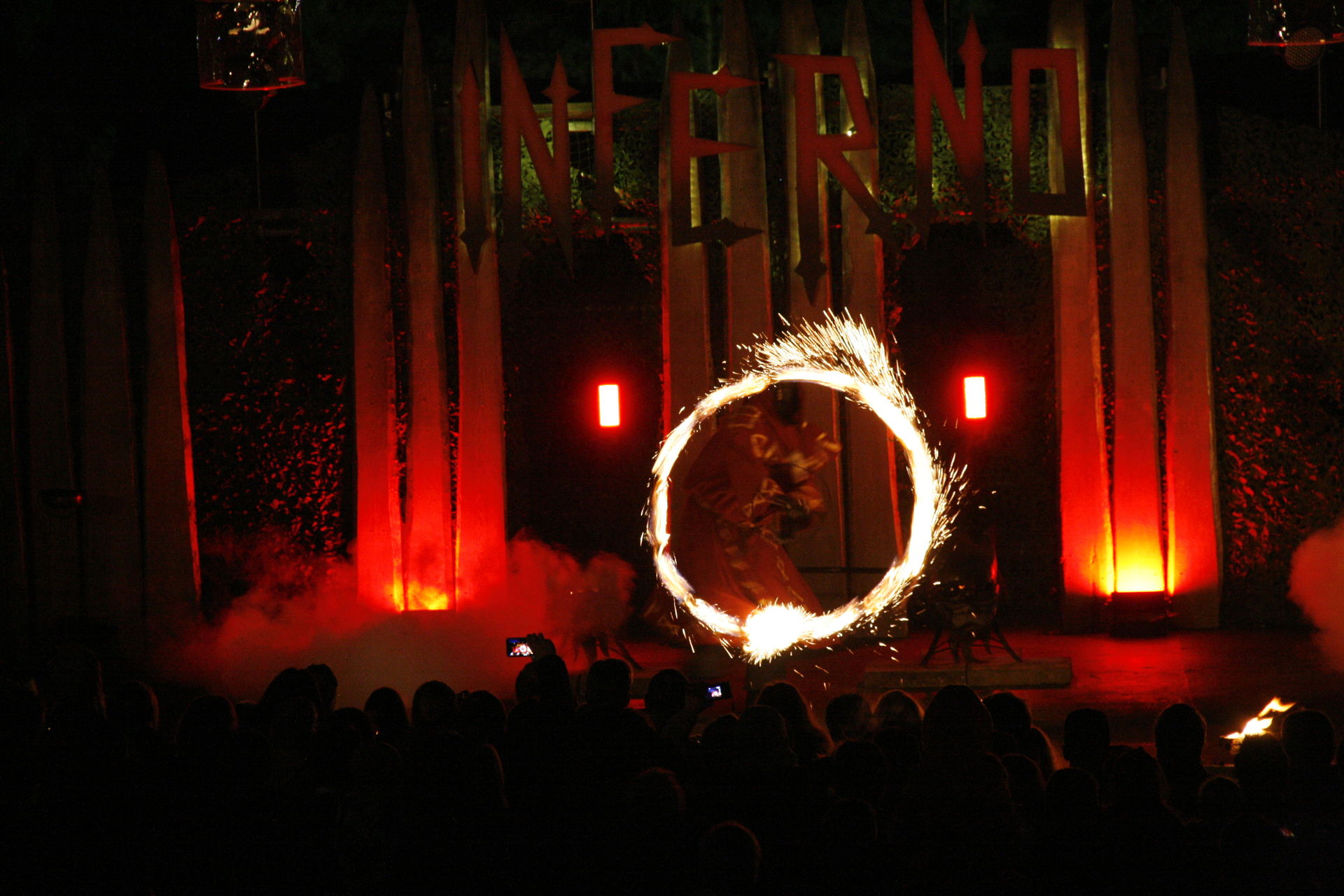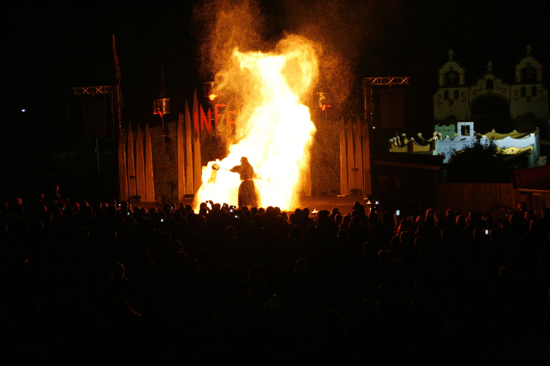 Komplett neu ist in diesem Jahr die Feuershow Inferno. Statt einer Show im Saloon wurde diese nun vor den Saloon verlegt. Eine weise Entscheidung wenn man die Flammen der Artisten sieht. Während die Show langsam und mit kleineren Flammen beginnt, wird sie im verlauf dynaischer und die Flammen heizen dem Publikum gut ein.