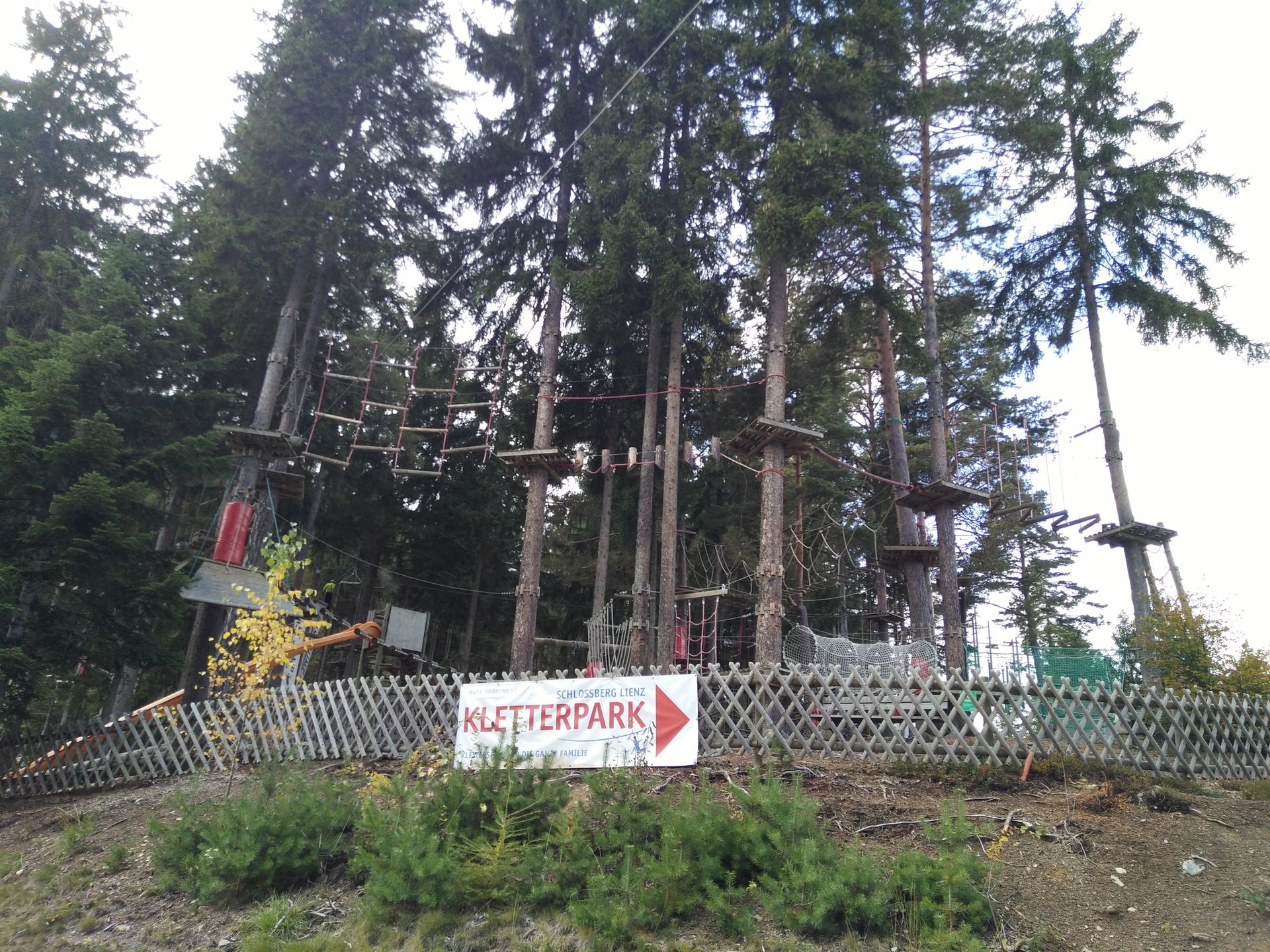 ... einem Kletterwald, für den die Kassiererin unten bereits geworben hatte...