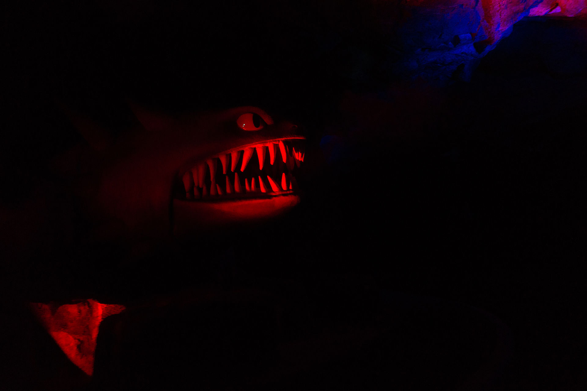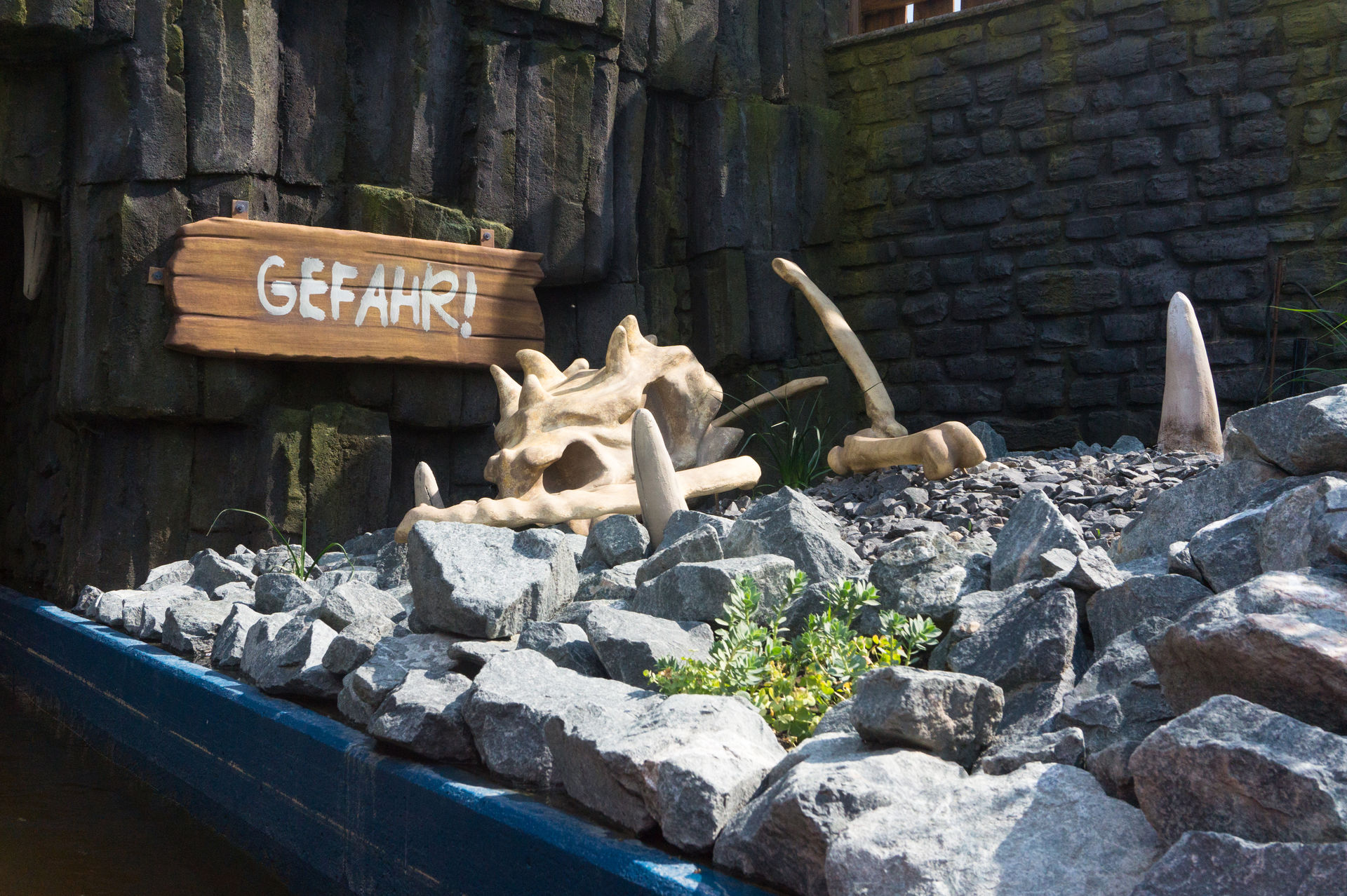 Die Stimmung danach war bereits mies, aber immerhin dauerte es ja nicht mehr allzu lange bis zum nächsten Boot. Mit diesen geht es erst einmal durch eine Miniaturausgabe eines verlassenen und halbwegs zerstörten Wikingerdorfes, ehe es in die verbotenen Höhlen geht. Kurz davor wechselt man wieder in eine normalgroße Perspektive, ansonsten machen die Schilder nämlich nur bedingt Sinn. Anstelle der ehemaligen Ansammlung kultiger uralt Animatroniks führt einem die Kehre unterhalb der angetriebenen Achterbahn „Grottenblitz“ an einigen Plastiken und einer Videoprojektion vorbei. Die rechte Seite der Kehre wird in der Hinsicht kaum noch benutzt. Daraufhin endet die Fahrt auch wieder.