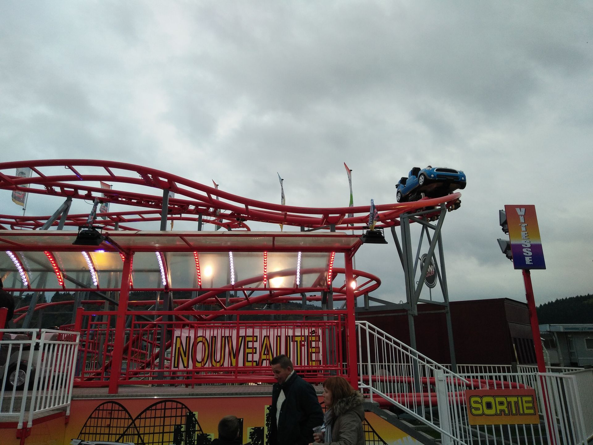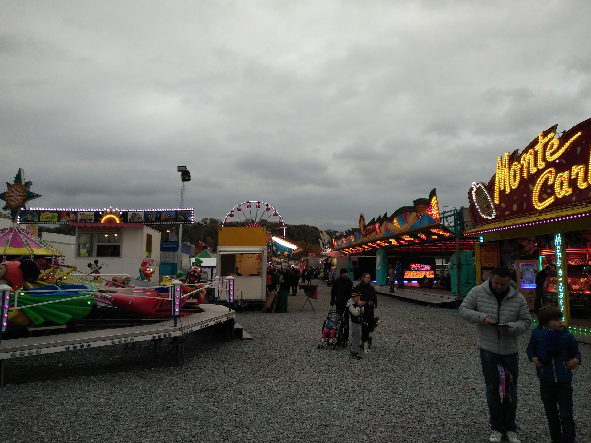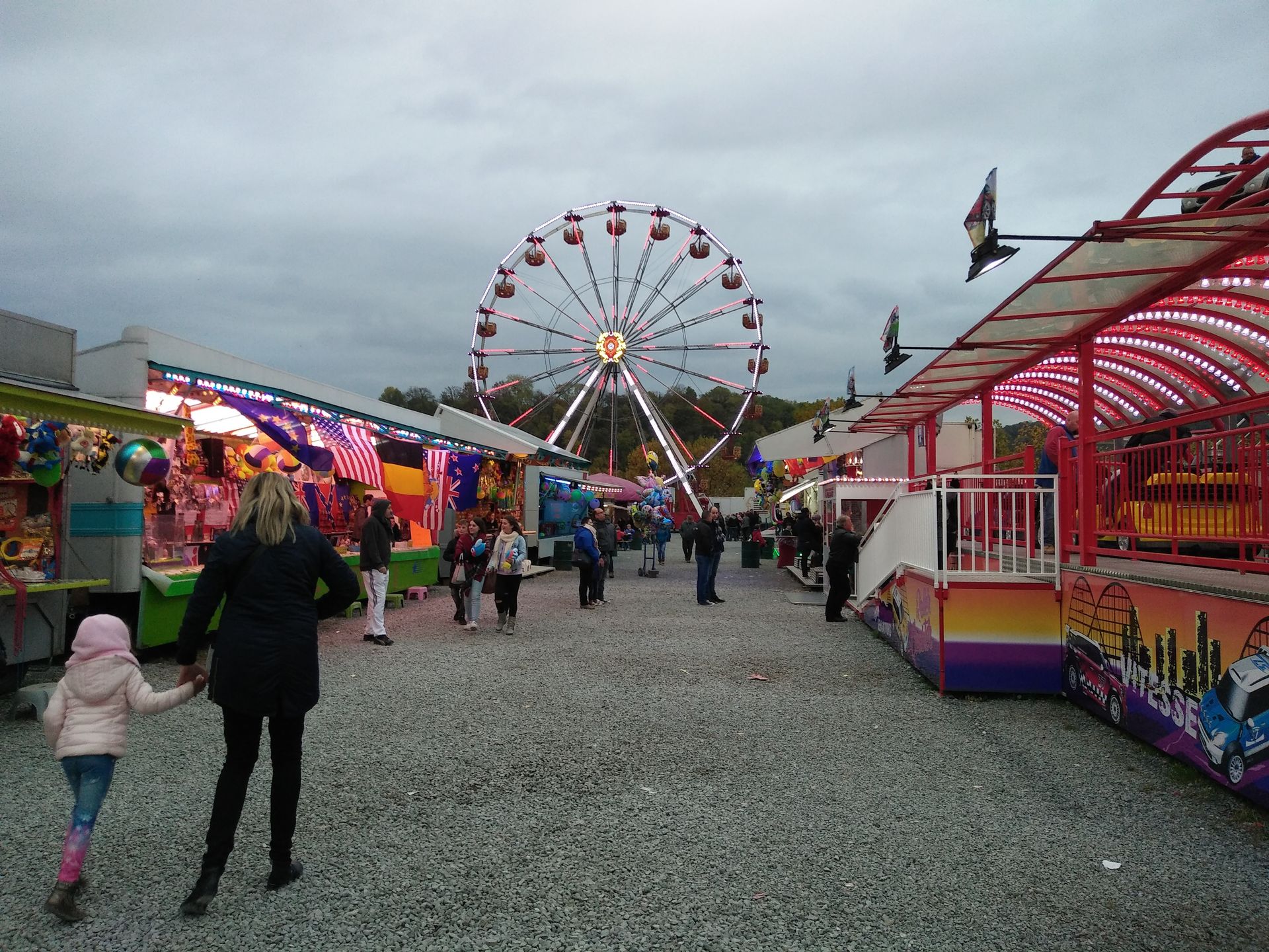 Vom Plopsa Coo aus ging es über eine ewig lange Straßenachterbahn hoch, runter, rechts, links, durch viel zu kleine Orte ins belgische Huy. Das die Kirmes strahlte lag nicht nur an den Geschäften auf dem Schotterplatz, sondern auch am nahe gelegenen Ort und Kraftwerk Tihange. Bekannt aus Funk und Fernsehen...