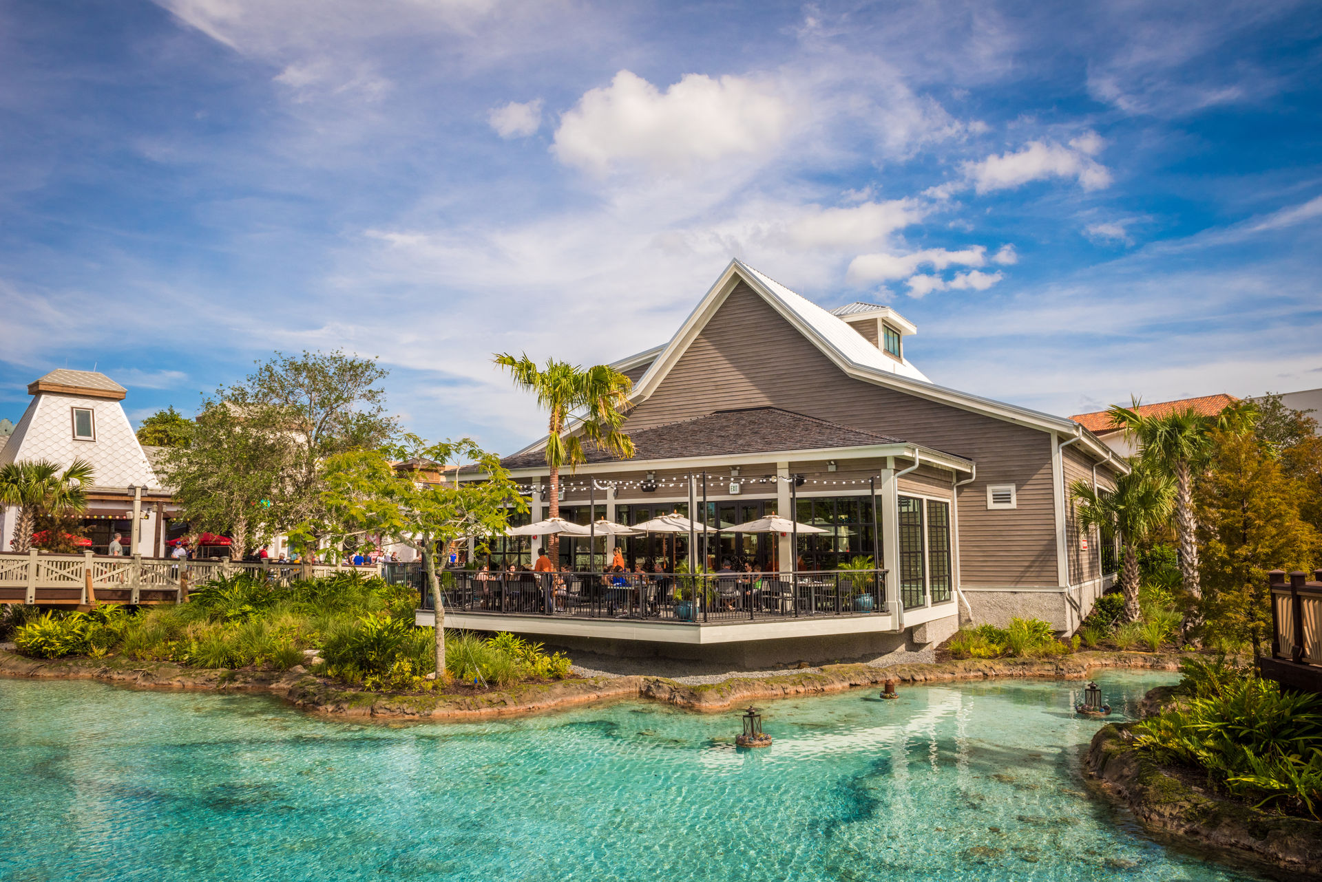 Verhungern bei Disney ist machbar. Zumindest, wenn man auf Fast-Food-Buden verzichten will und nicht 180 Tage im Voraus seine Dining-Reservation klargemacht hat. Mit „Downtown Disney“ gab es zwar immer schon eine Alternative, allerdings mit vergleichsweise begrenzten Restaurant-Optionen. Das hat Disney offensichtlich erkannt, den chronisch überlasteten Parkplatz platt gemacht, stattdessen riesige Parkhäuser gebaut, das Angebot an Restaurants und Geschäften erheblich vergrößert und das Ganze in „Disney Springs“ umbenannt. Und die neuen kulinarischen Optionen sehen wirklich alle sehr gut aus: „STK“ bietet fantastische Steaks, „The Boathouse“ stilvolles Waterside-Dining, „Morimoto Asia“ 1a Sushi, „D-Luxe“ Fleischbrötchen (a.k.a. Hamburger) und, und, und… Absolut zu empfehlen, wenn man eine Auszeit von den Parks braucht. Und der neu gestaltet „Town Center“-Bereich lässt das „alte“ Downtown Disney auch tatsächlich „alt“ aussehen. Und es wird weiterhin gebaut und renoviert.