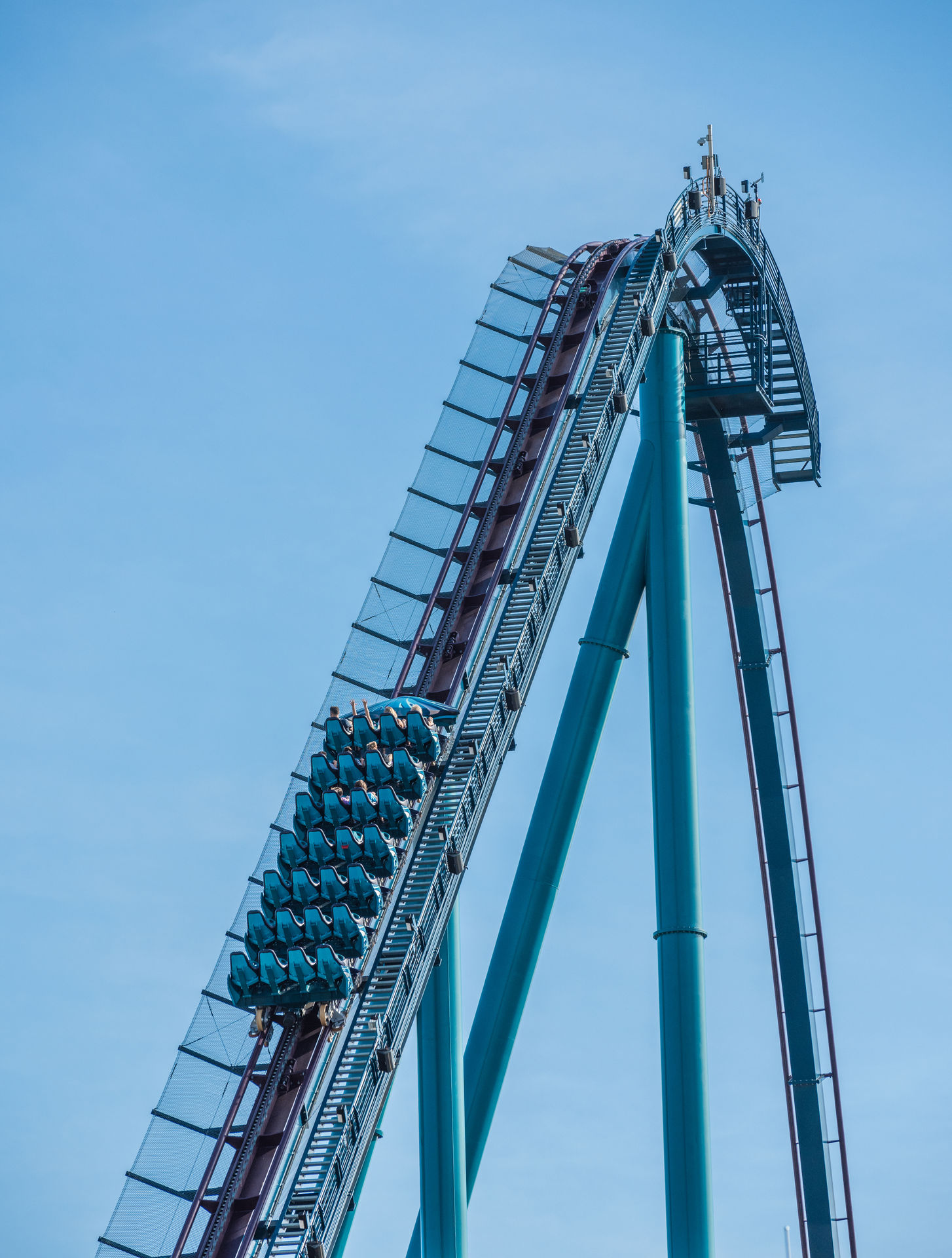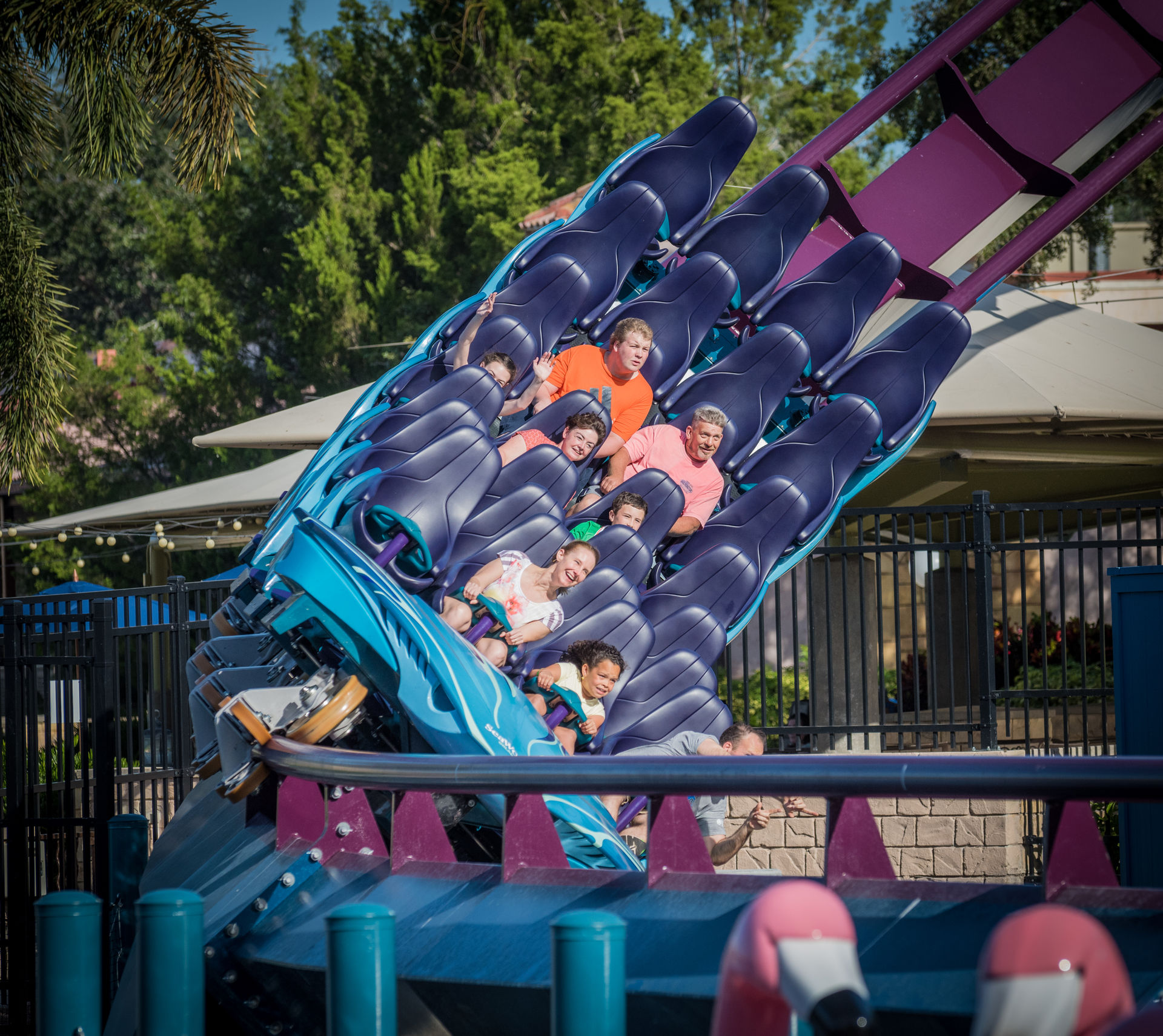 #1 in Orlando. Fahrfreude pur! Ich kann jedem nur raten, schleunigst einen Trip zu Seaworld zu unternehmen, denn irgendwie scheinen sich die herausragenden Fahreigenschaften dieser außergewöhnlichen Spaßmaschine noch nicht herumgesprochen zu haben: Während unseres Besuchs war den gesamten Morgen Walk-On, Sitzenbleiben und freie Sitzwahl angesagt. Die Ride-Ops fuhren trotz geringen Andrangs die Bahn kontinuierlich im Zwei-Zug-Betrieb und verteilten die Fahrgäste sogar pro-aktiv auf die Sahne-Plätze vorne und hinten.