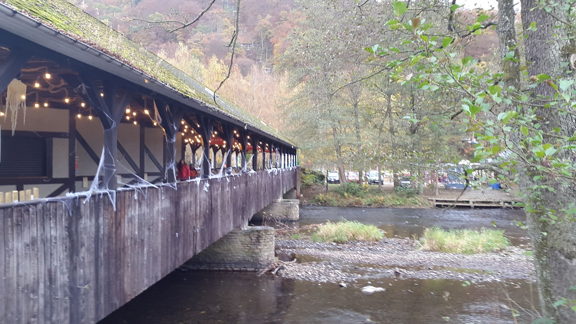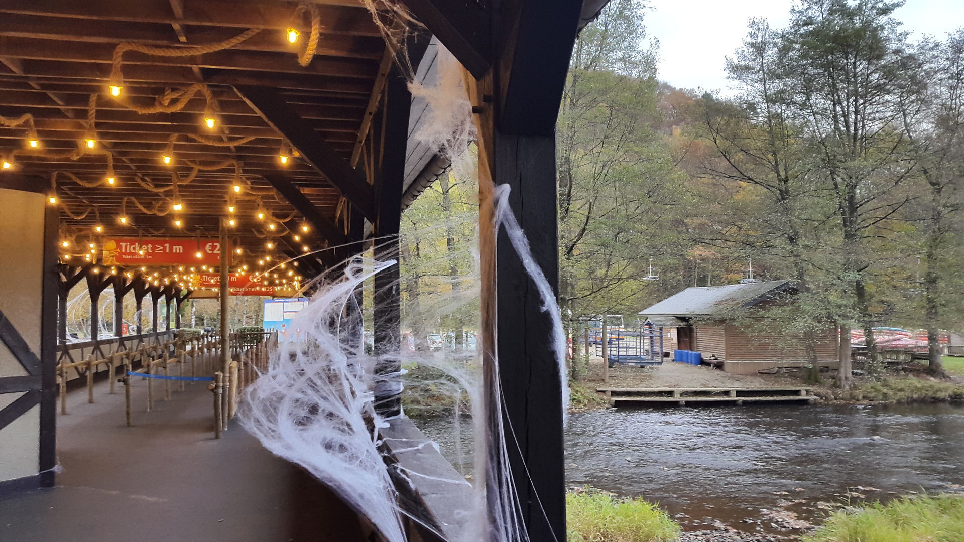 Die Brücke führt vom Parkplatz zum Eingang und war mit Spinnweben dekoriert.
