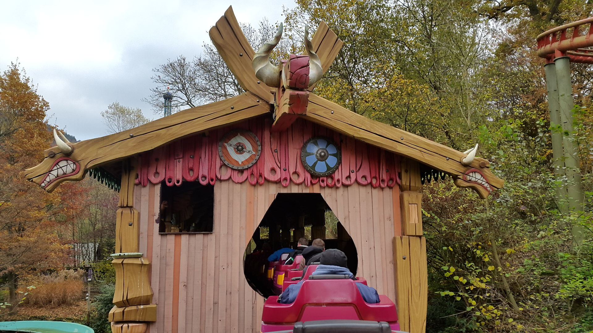 Weiter zum zweiten und letzten Count des Parks, Halvar. Der seltene Vekoma MK-700 Custom liegt schön in die Natur eingebettet. Sowohl Vickys als auch Halvars Stationsgebäude sind im passenden Plopsa-Stil gelungen thematisiert, der Rest ist relativ schlicht.