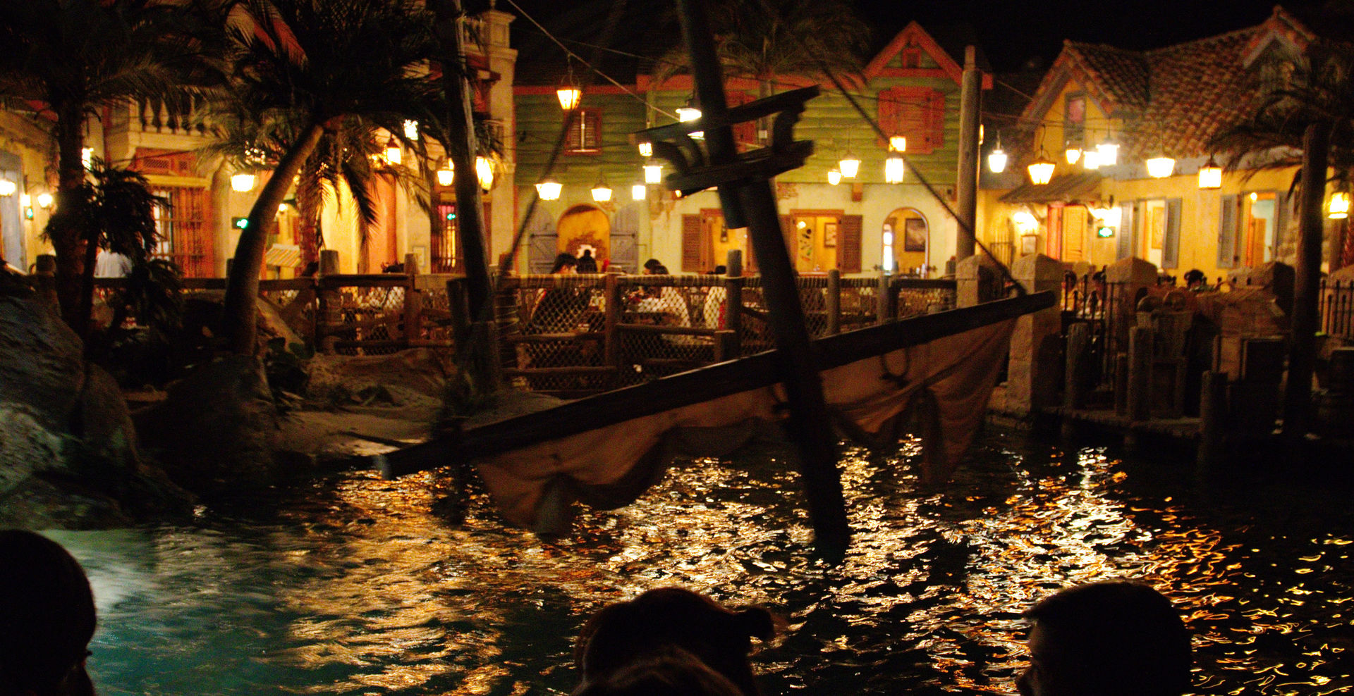 Das andere ist eine simple, unvorhersehbare Änderung des Fahrverlaufes. Während man zwischen den beiden großen, kriegführenden Schiffen entlang fährt und eigentlich geradeaus auf die nächste große Szene zusteuert, wird das Boot seitlich durch ein Leck in das durch Kanonenkugeln getroffene Boot Jack Sparrows gesogen. Un-fass-bar!!!
