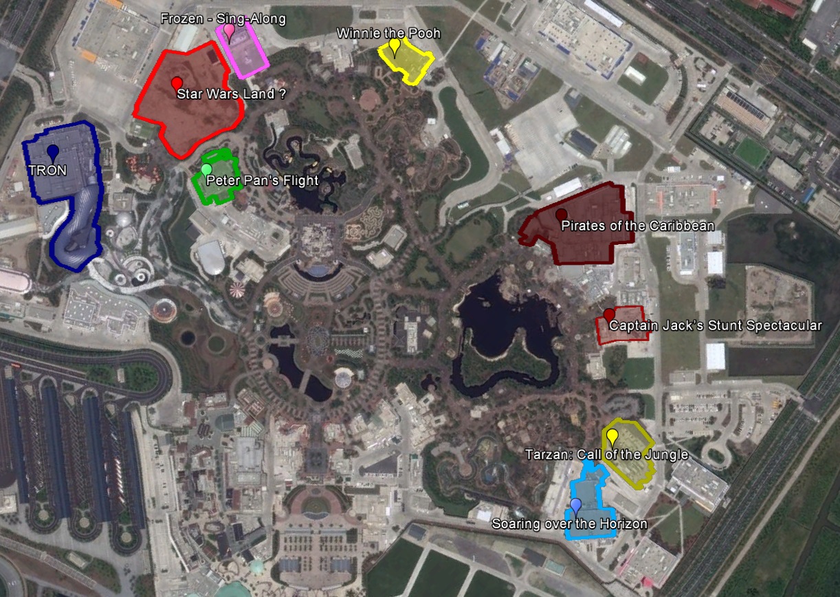Doch der Blick von Oben zeigt etwas äußerst unheimliches: Hier hat man noch so einiges vor! Zwischen Tomorrowland und Fantasyland ist eine riesige Fläche, die - glaubt man diesem Internet - wohl für