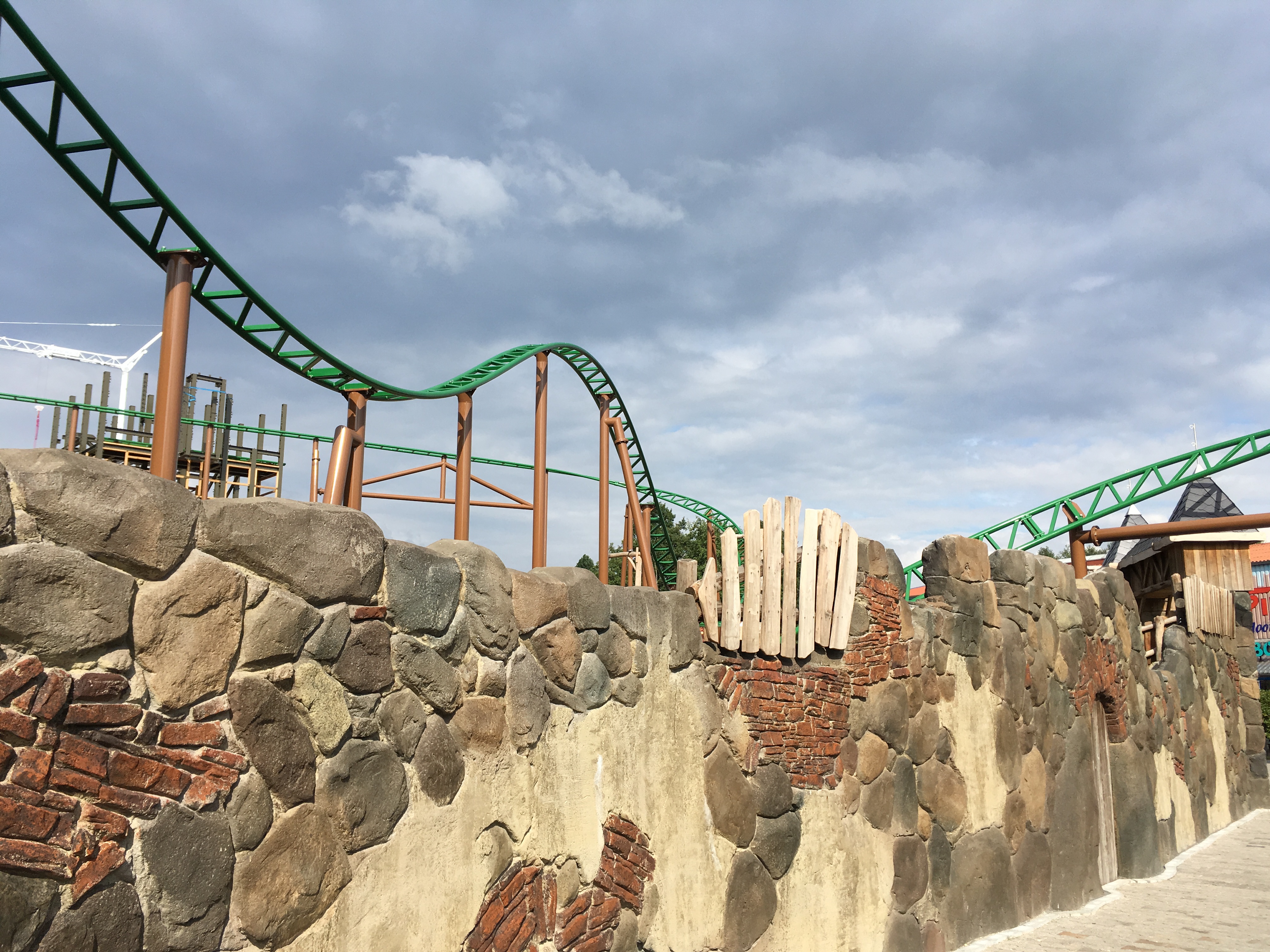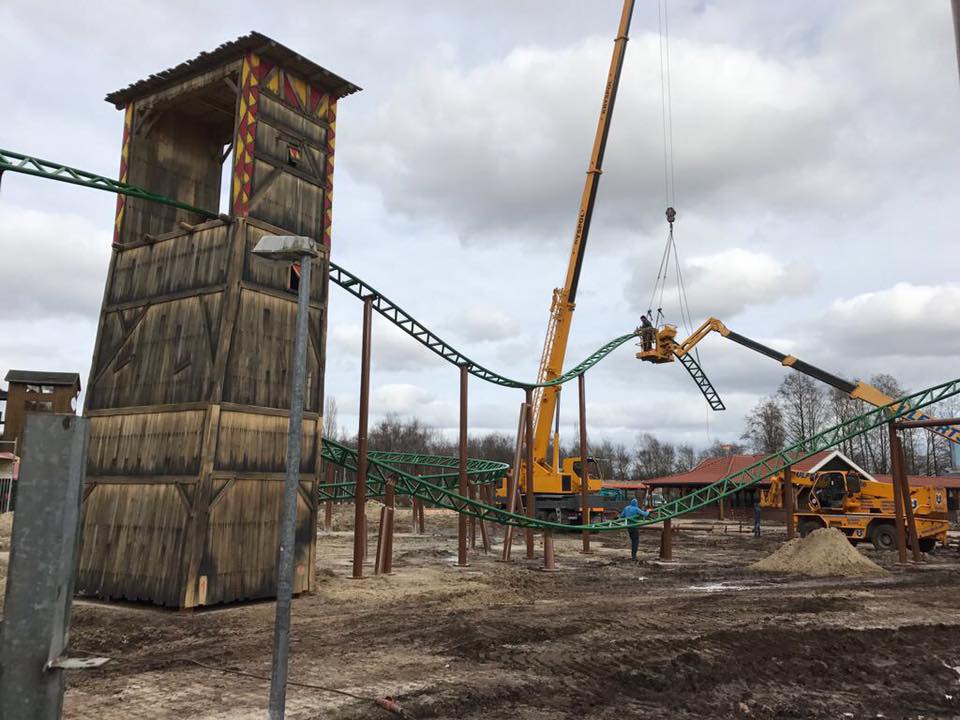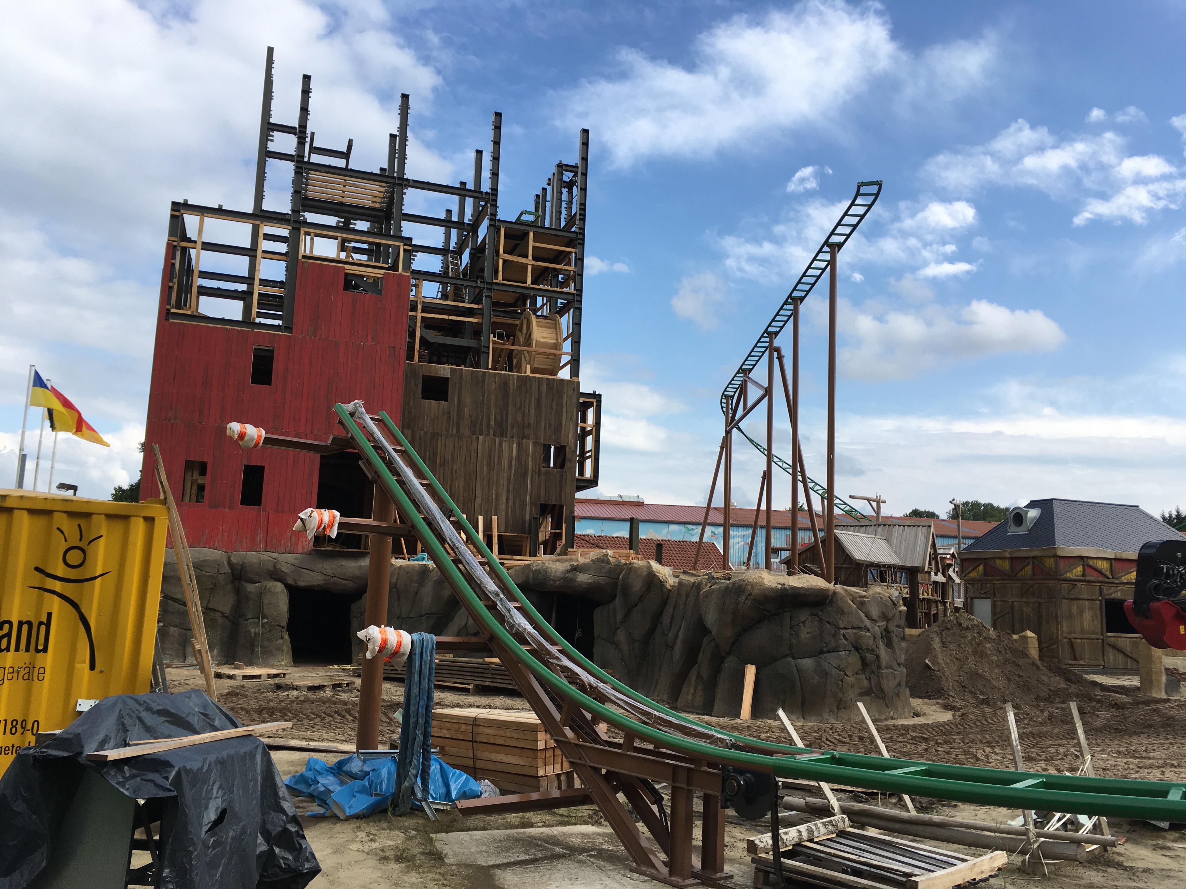 Das Tempo bleibt hoch, parallel zum (weit fortgeschrittenen) Schienenbau wird schon die mittelalterliche Thematisierung mitgebaut, der erste Turm steht schon. Dennoch soll die Bahn "nicht vor September" eröffnen.