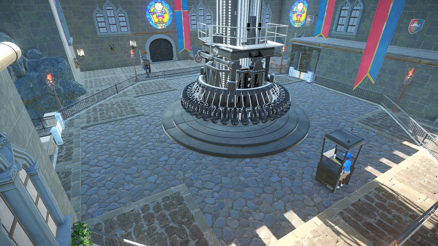 Zwischendurch habe ich auch einen Drop Tower im Burg-Stil angefangen. Innenleben und der Tower ansich ist fertig. Drumherum soll noch eine Art mittelalterliches Dorf entstehen: