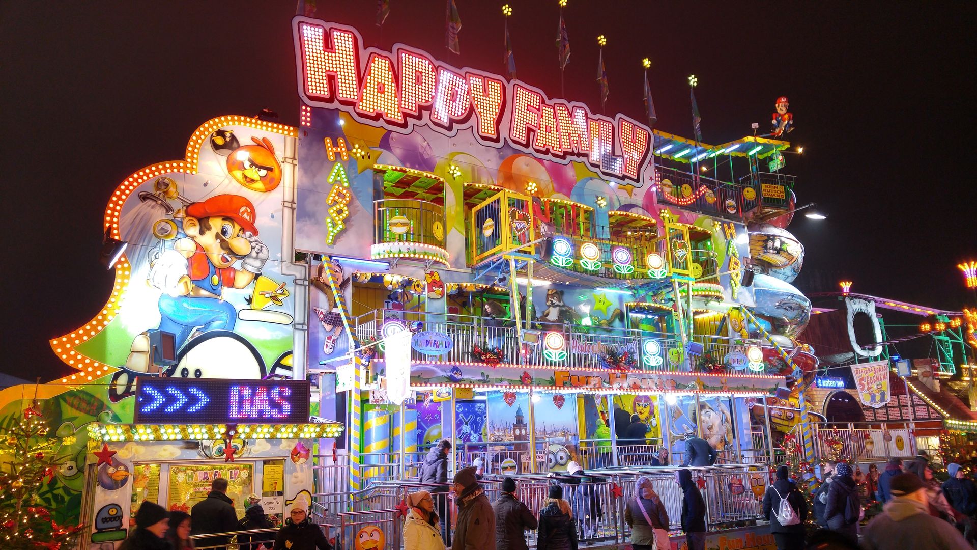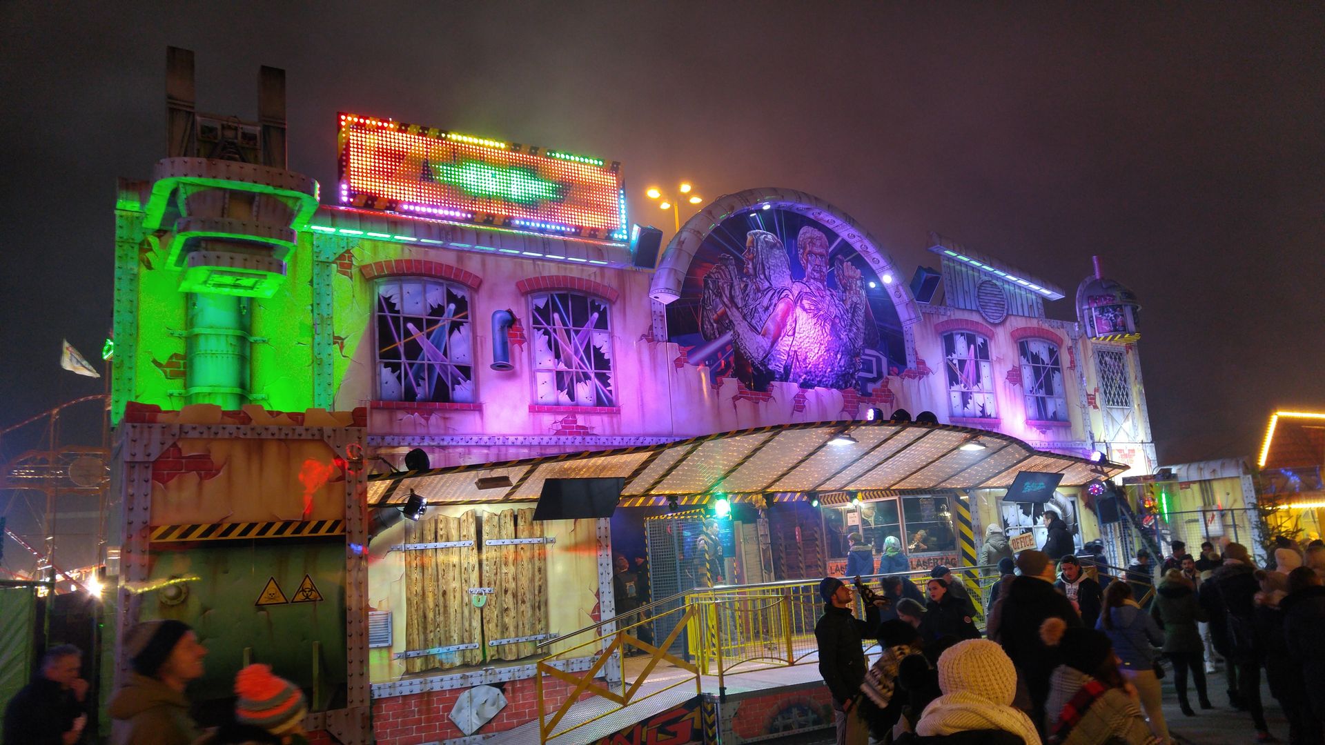 Meine Premierenfahrt. Ich bin ja eh nicht so der Freund von Geisterbahnen, weil ich finde, dass viele einfach viel zu wenig zu bieten haben. Die Dom Geister... haben diese Einstellung noch einmal verstärkt. Und auch die Kaleidoskopbrillen reißen da aus meiner Sicht mal gar nichts raus.