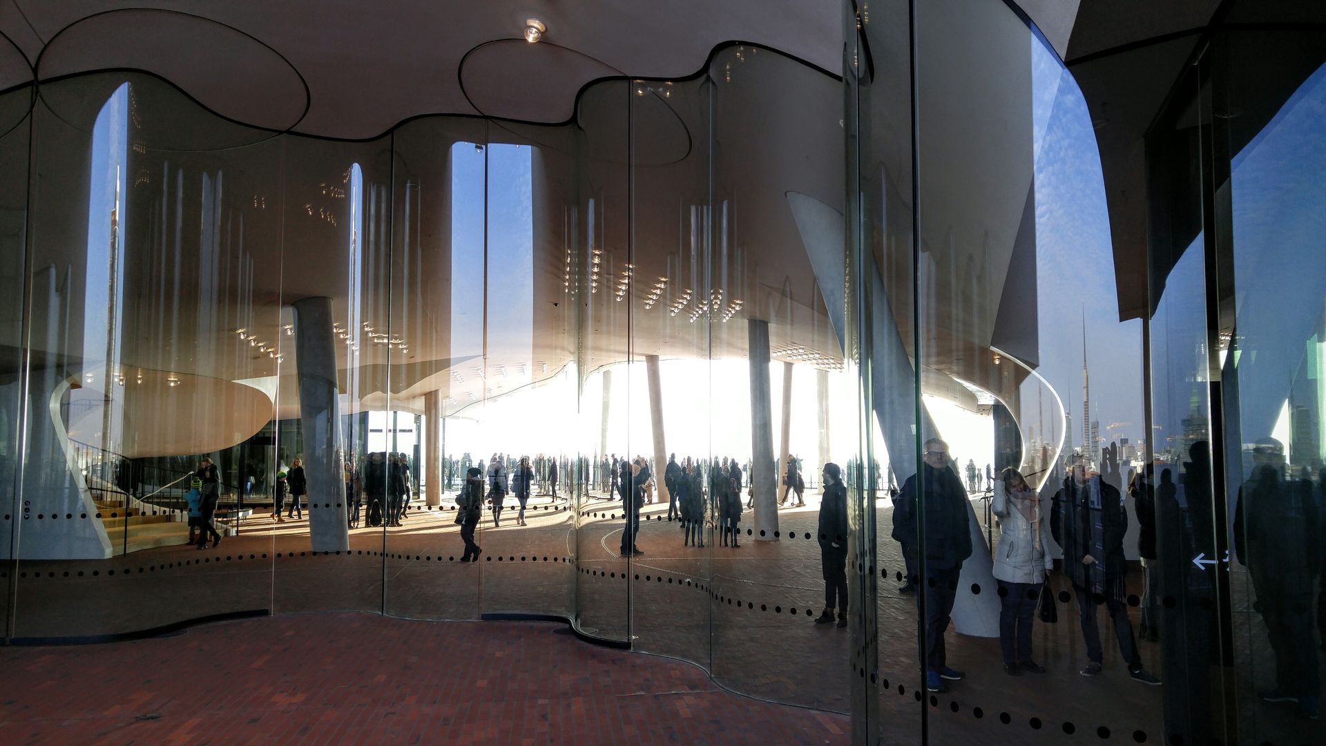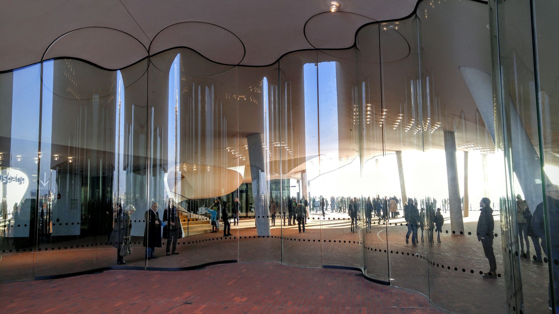Sonntagsmittags noch mal ganz Tourimäßig zur recht frisch eröffneten Plaza der Elbphilharmonie