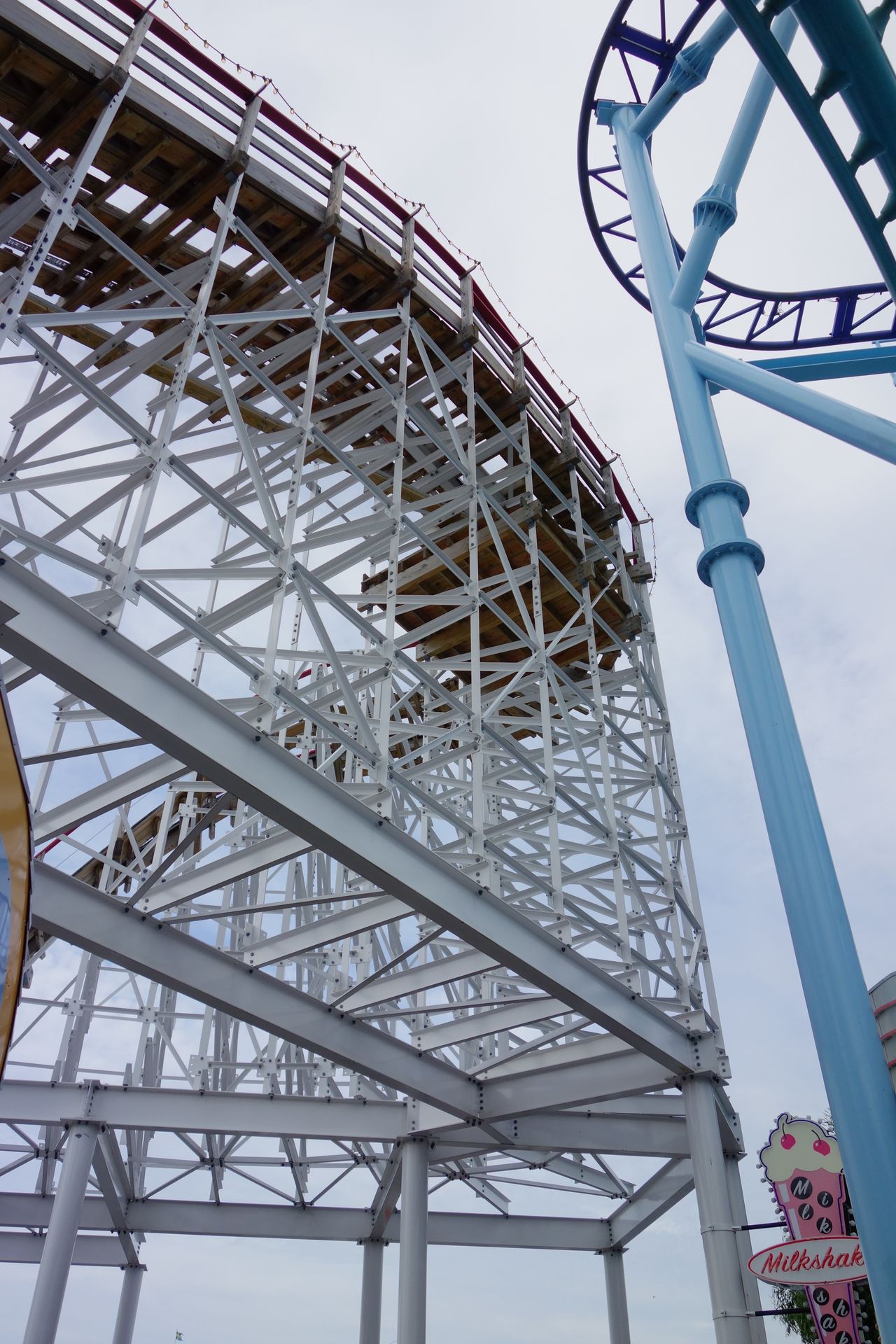 Der 15 Meter hohe Lifthill thront auf einer Stahlkunstruktion (oh, ein Schreibfehler, aber Kunst passt doch auch irgendwie