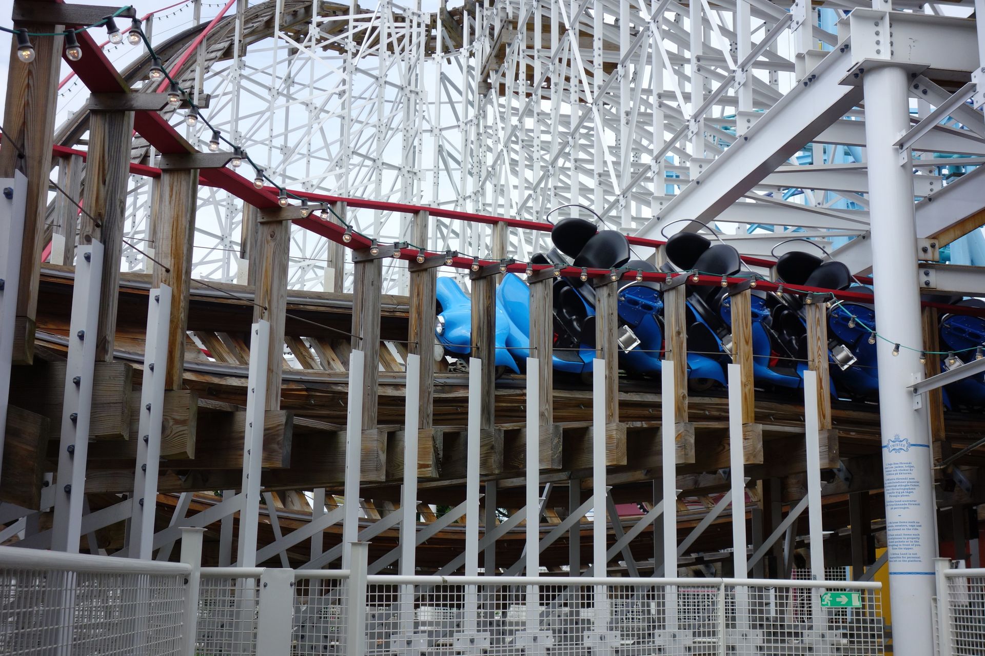Airtime hier und da hätte der Bahn nicht geschadet. Wirklich vermisst habe ich sie aber auch nicht, die Kräfte in alle anderen Richtungen sind schließlich mehr als ausreichend vorhanden. Und über die Fahreigenschaften brauchen wir wohl kaum zu reden, die sind wie von Schwarzkopf/ BHS gewohnt auch nach 28 Jahren noch erste Sahne. Wobei ich doch leider hin und wieder mit den Beinen gegen die Seitenstange des Bügels gestoßen bin, aber das ist ein kaum erwähnenswerter Kritikpunkt. Alles in allem ist Jetline eine grandiose Bahn für ihr Alter. Der benachbarte Twister ist für mich als Holzfan aber eben doch eine winzige Spur besser.