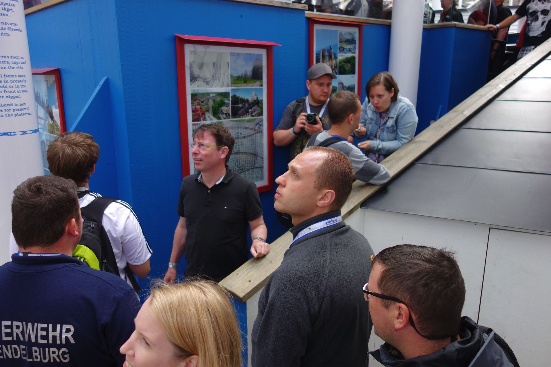 Wenn ich mich nicht irre, sind manche von uns sogar noch ein zweites Mal mitgefahren, damit die kleine Gruppe nach uns auch die passende Stimmung an Bord hatte. Außerdem fanden wir den Notaus-Knopf ganz witzig, die Aufschrift ließ für uns nämlich eher auf einen flotten Thrill-Modus schließen. Leider will mir dessen genauer Wortlaut nicht mehr einfallen (und nein, es war nicht Nödstopp).