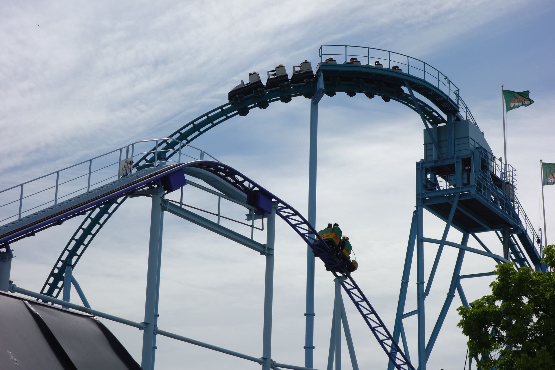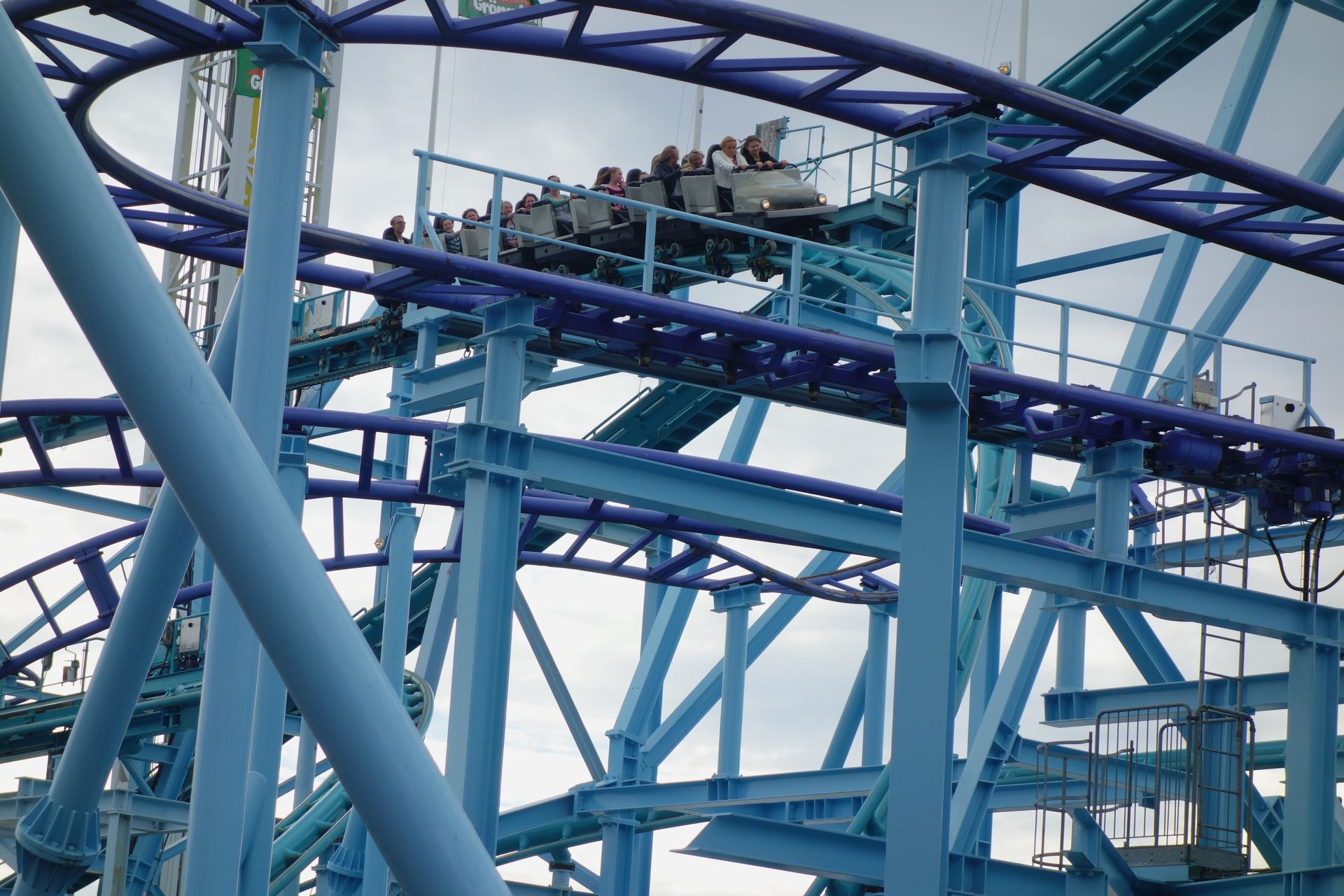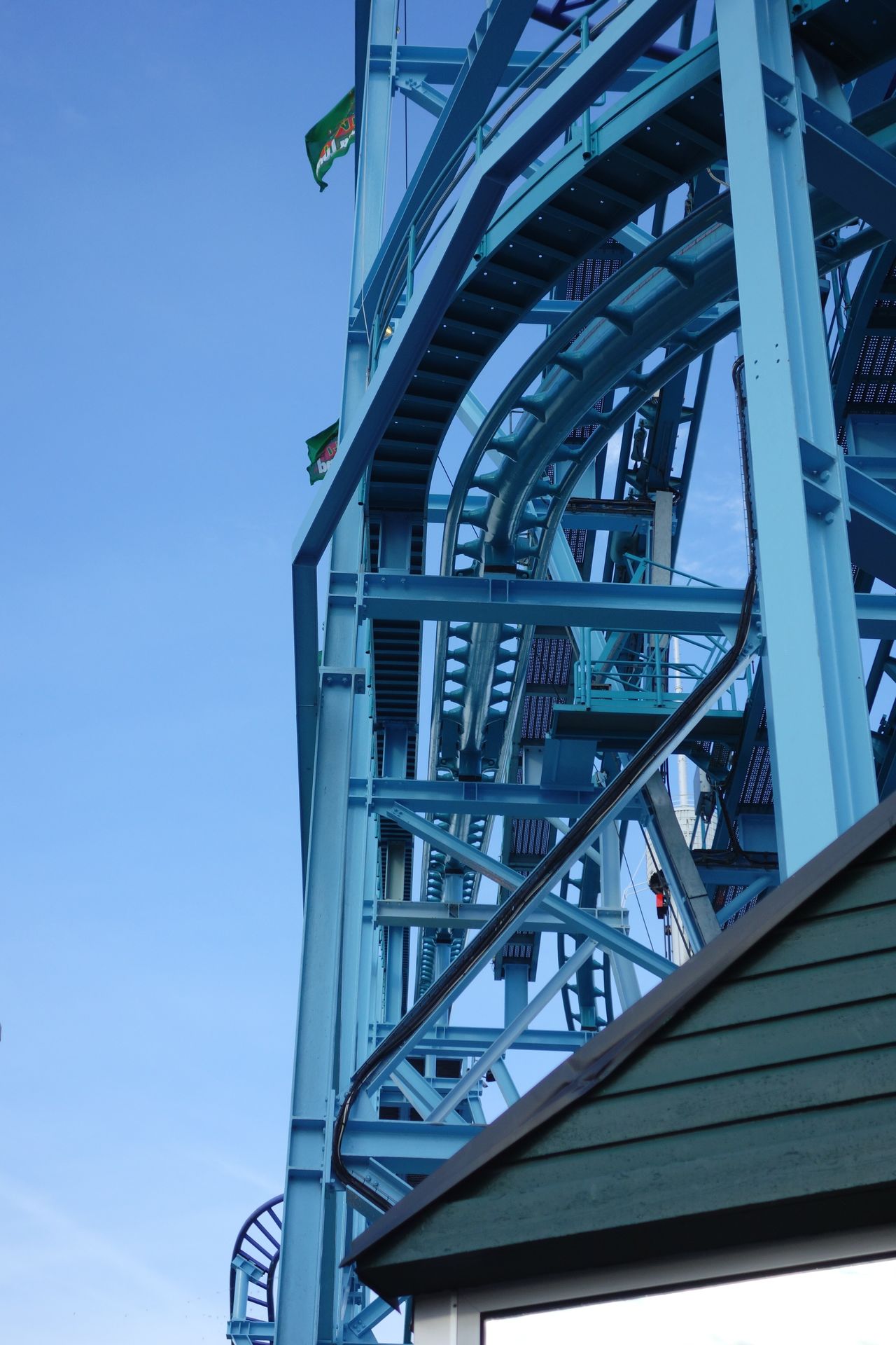 Ein krasses Fahrerlebnis, an das keine der Wiederholungsfahrten so recht heran kam. Wobei die Fahrt mit Blickrichtung aufs Wasser auch nicht schlecht ist. Besonders bei der Einfahrt in die Schlussbremse, wenn man Kopf voran gen Wasseroberfläche stürzt. Dafür fehlen ein bisschen die Überraschungsmomente bei den rasanten Abstürzen.