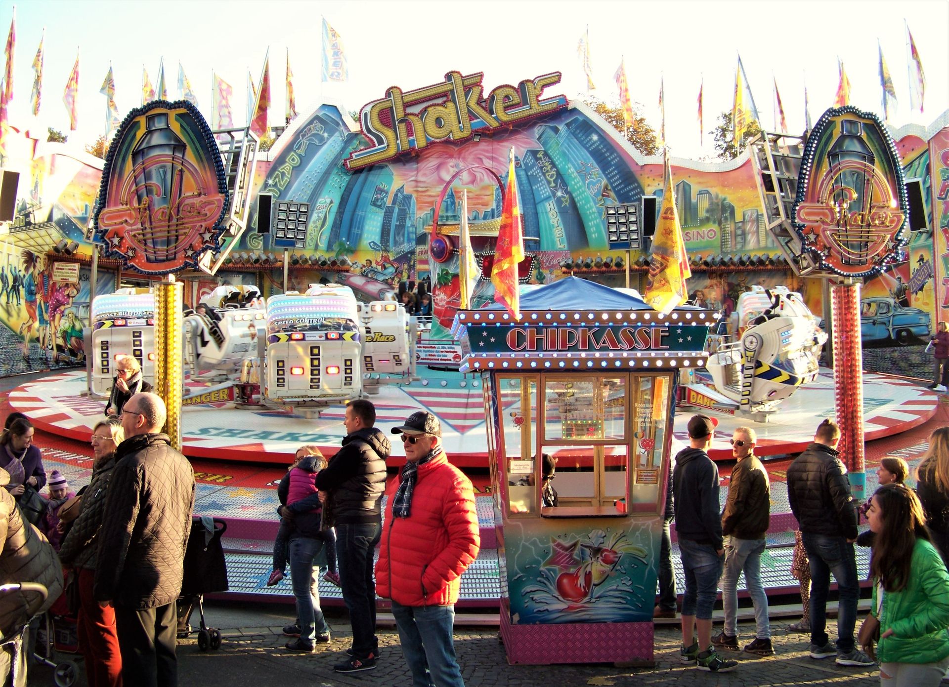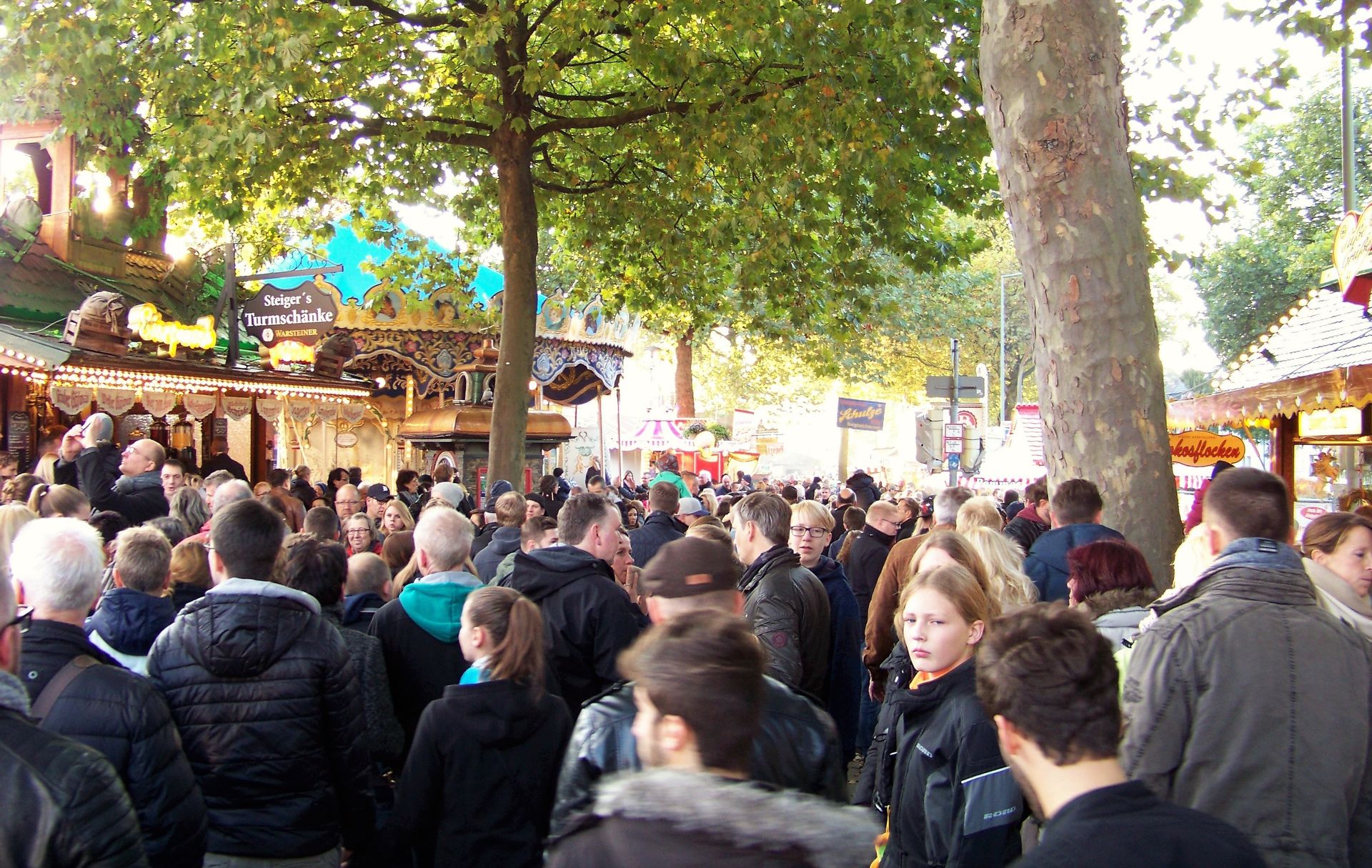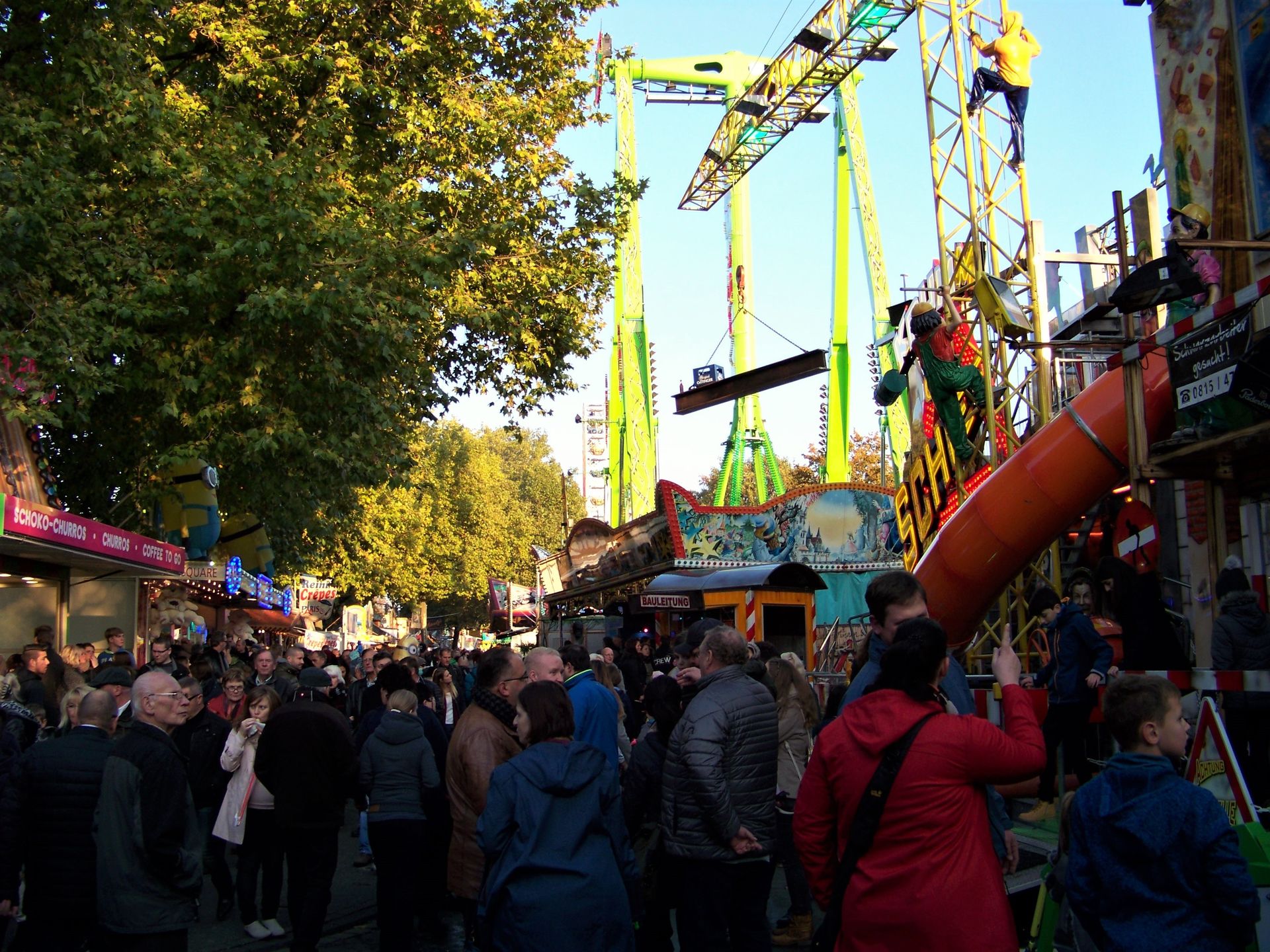 Als Besuchstag hatte ich mir den Sonntag des ersten Veranstaltungswochenendes heraus gesucht, an dem wunderbares, sonniges Herbstwetter herrschte. Mit dem Ergebnis, dass sich große Besuchermassen über den Liboribergs bewegten - fast schon Verhältnisse wie im Sommer bei der großen Schwestvereranstaltung. Leider wirkte sich die Platzfülle (fast ausschließlich Familienpublikum mit kleineren Kindern) nicht wirklich positiv auf den Zuspruch an den Fahrgeschäften aus (vor allem den drei Thrill-Geschäften), die relativ lange auf Mitfahrer warten mussten und dann meist noch nicht mal zu Hälfte gefüllt ihre Fahrten absolviert haben.