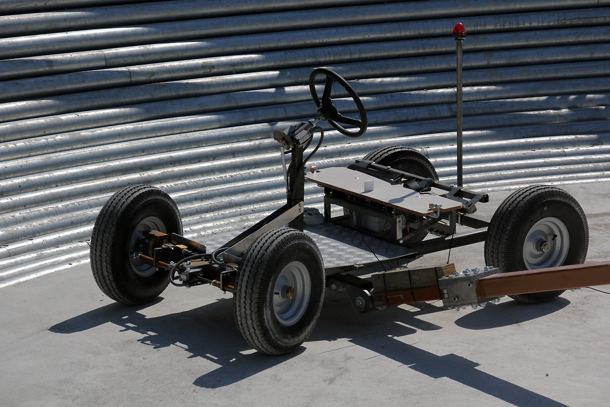 Die Ausleger sind teleskopisch. Über die Lenkbewegungen kann man später steuern, wie weit die Fahrzeuge die Wand hochfahren. Dabei ist das oberste Rohr ein Anschlag. So wie ich es verstanden habe, wird aber auch die Auslenkung des Auslegers gemessen und bei Bedarf per Steuerung eingegriffen.