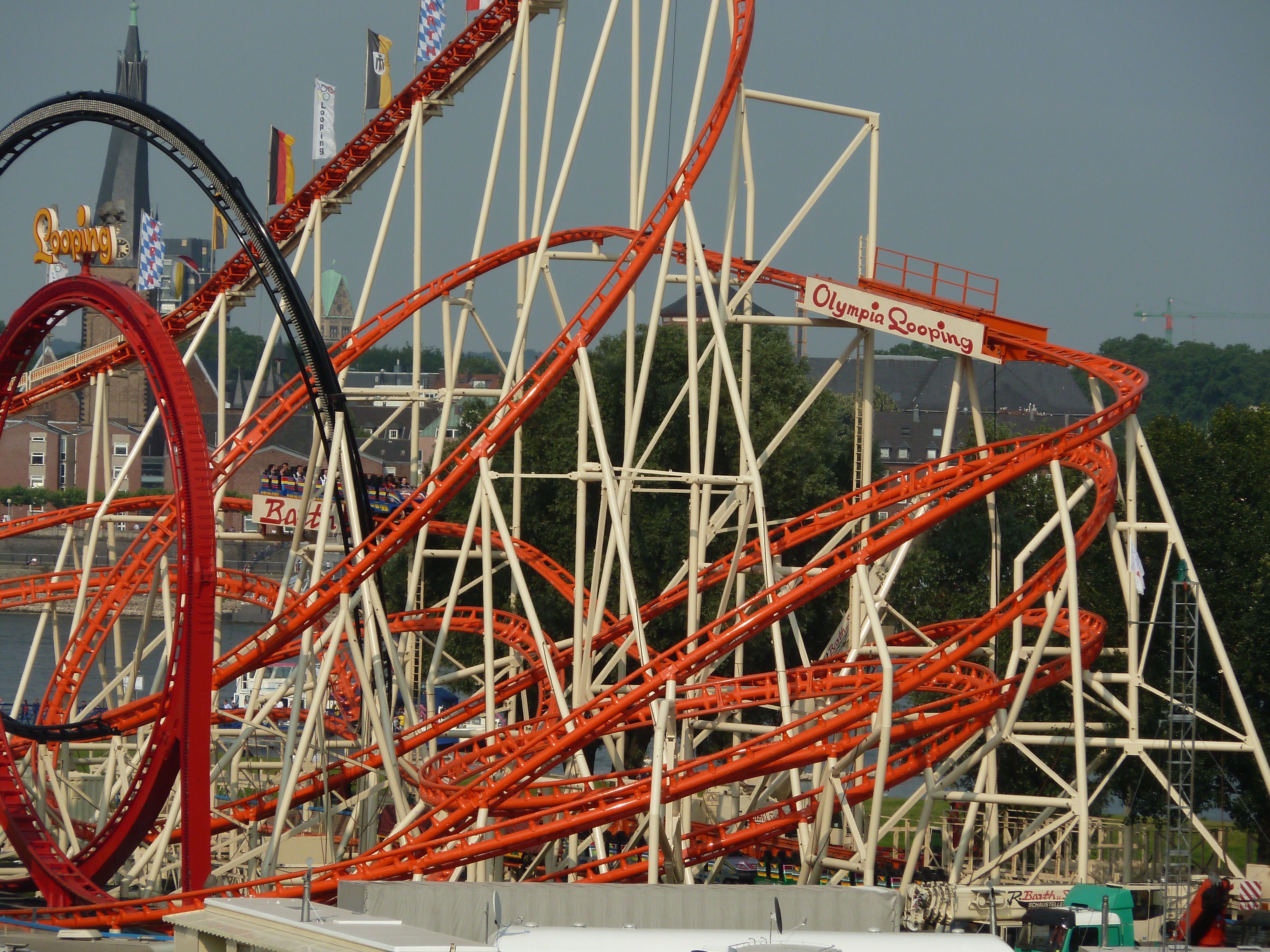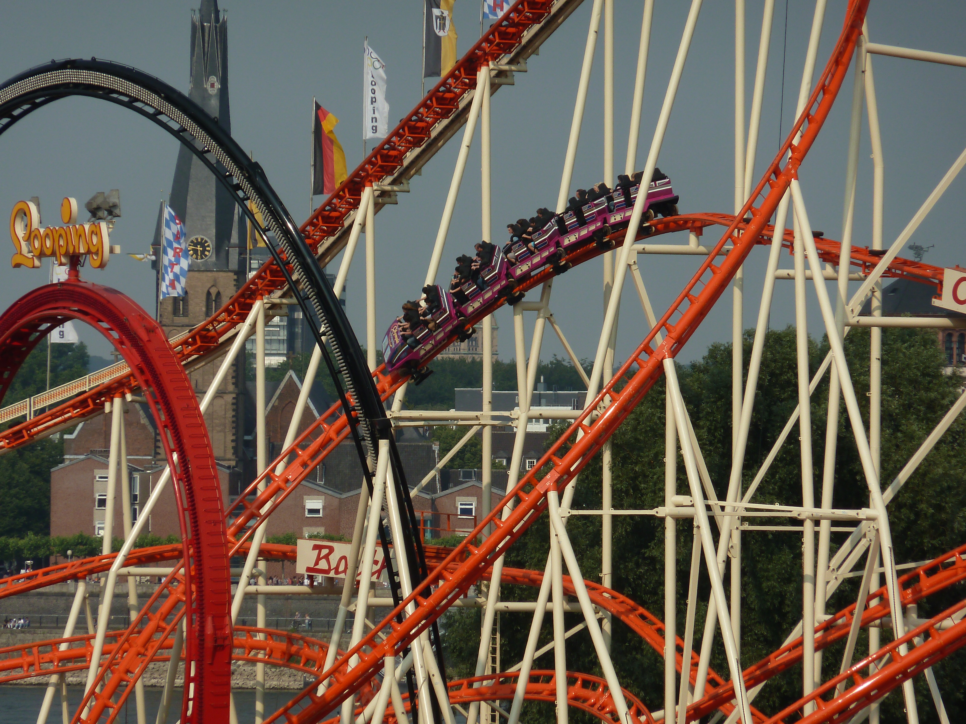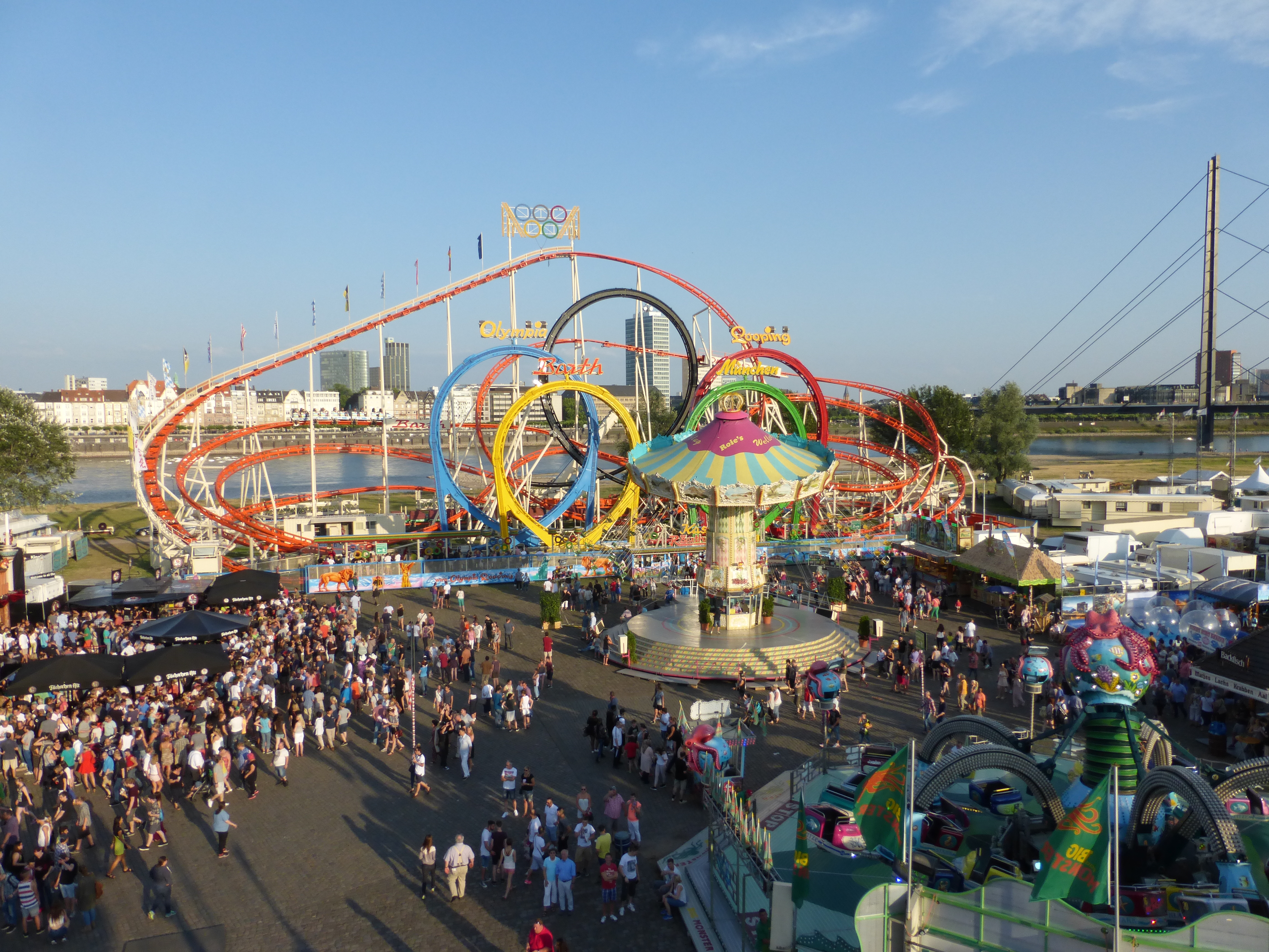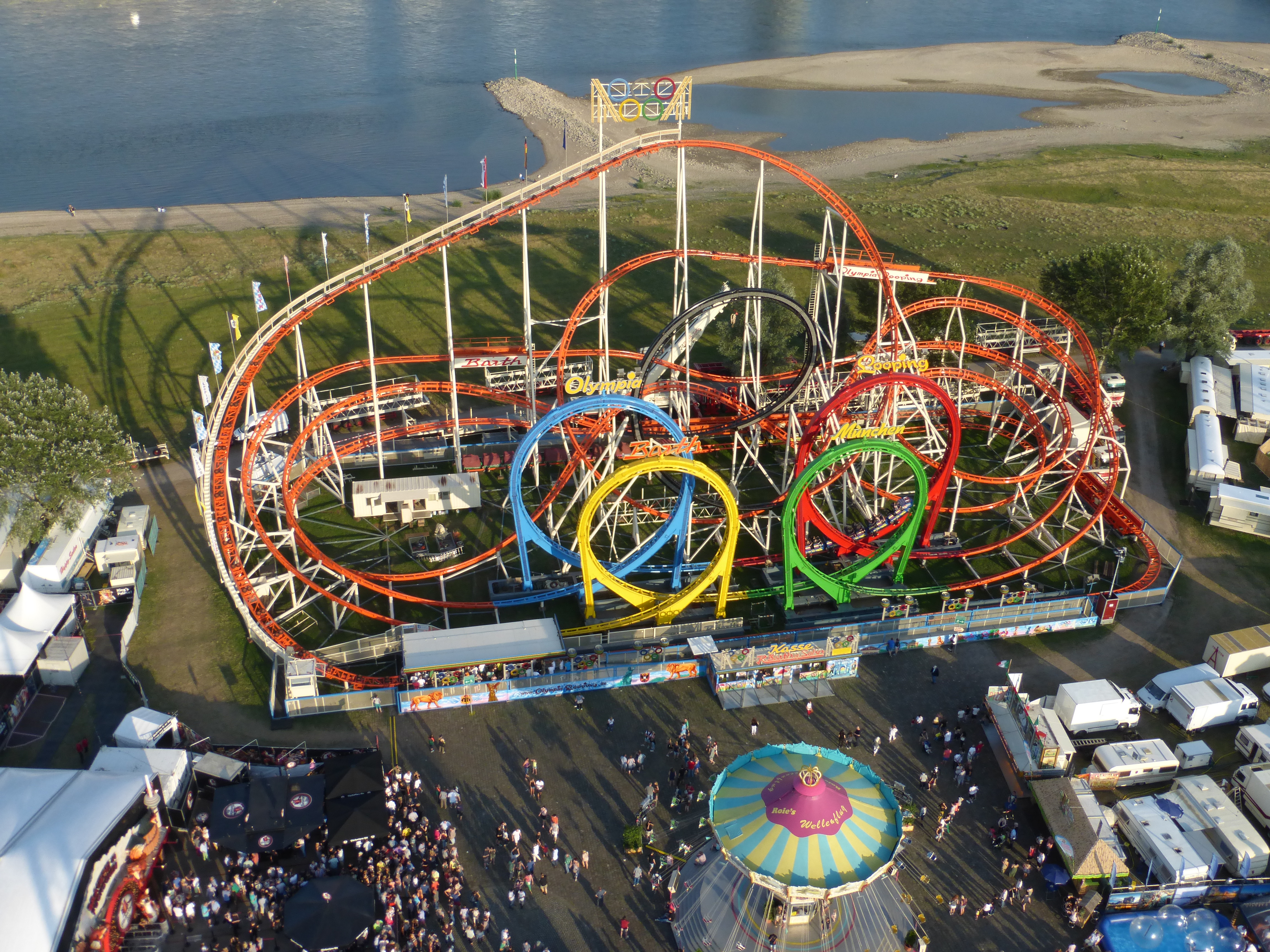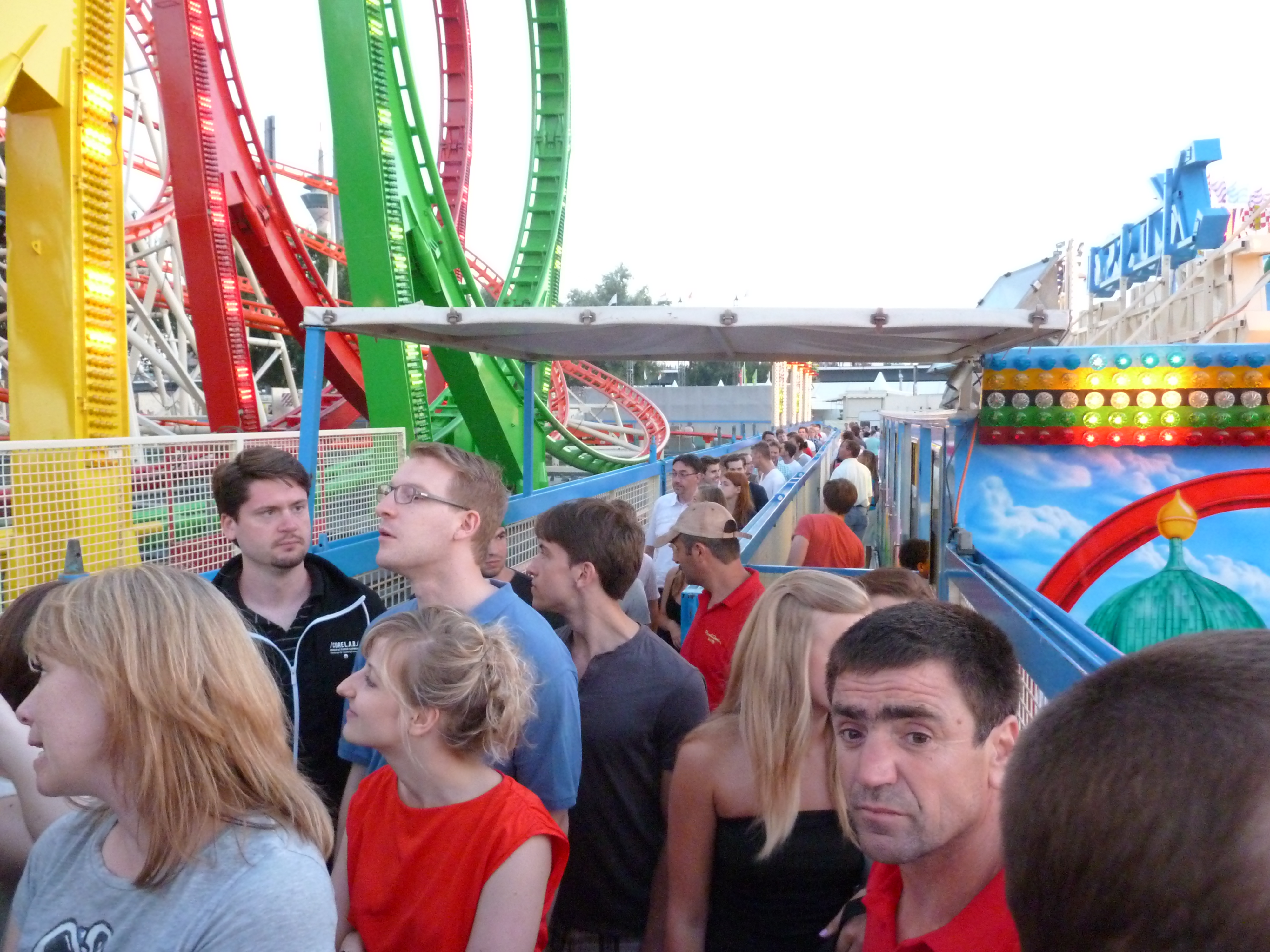 Mit Menschenmassen, Weihnachtspyramide, PowerTower II Kasse, im 5 Wagen- u. 7 Wagenbetrieb.