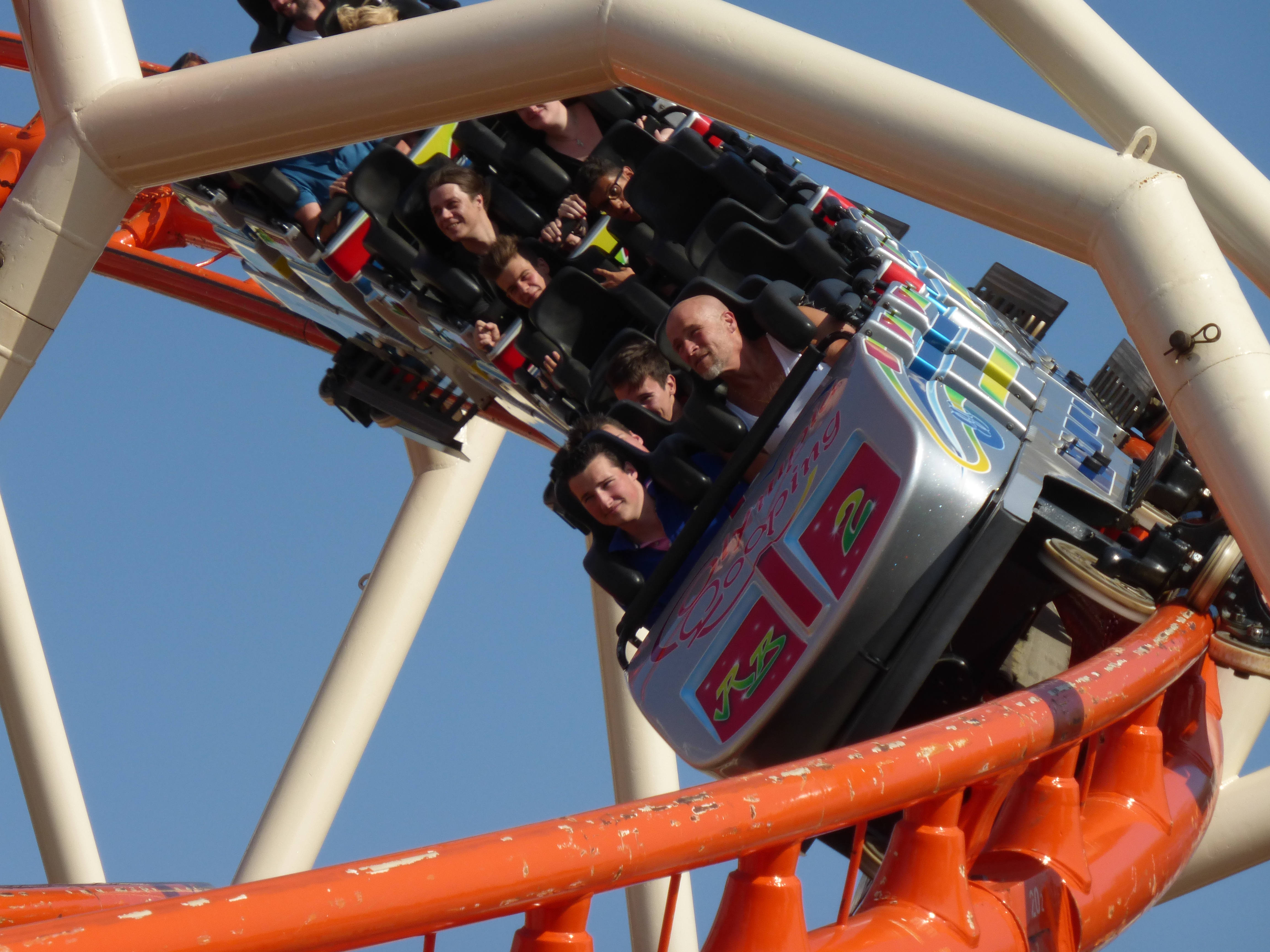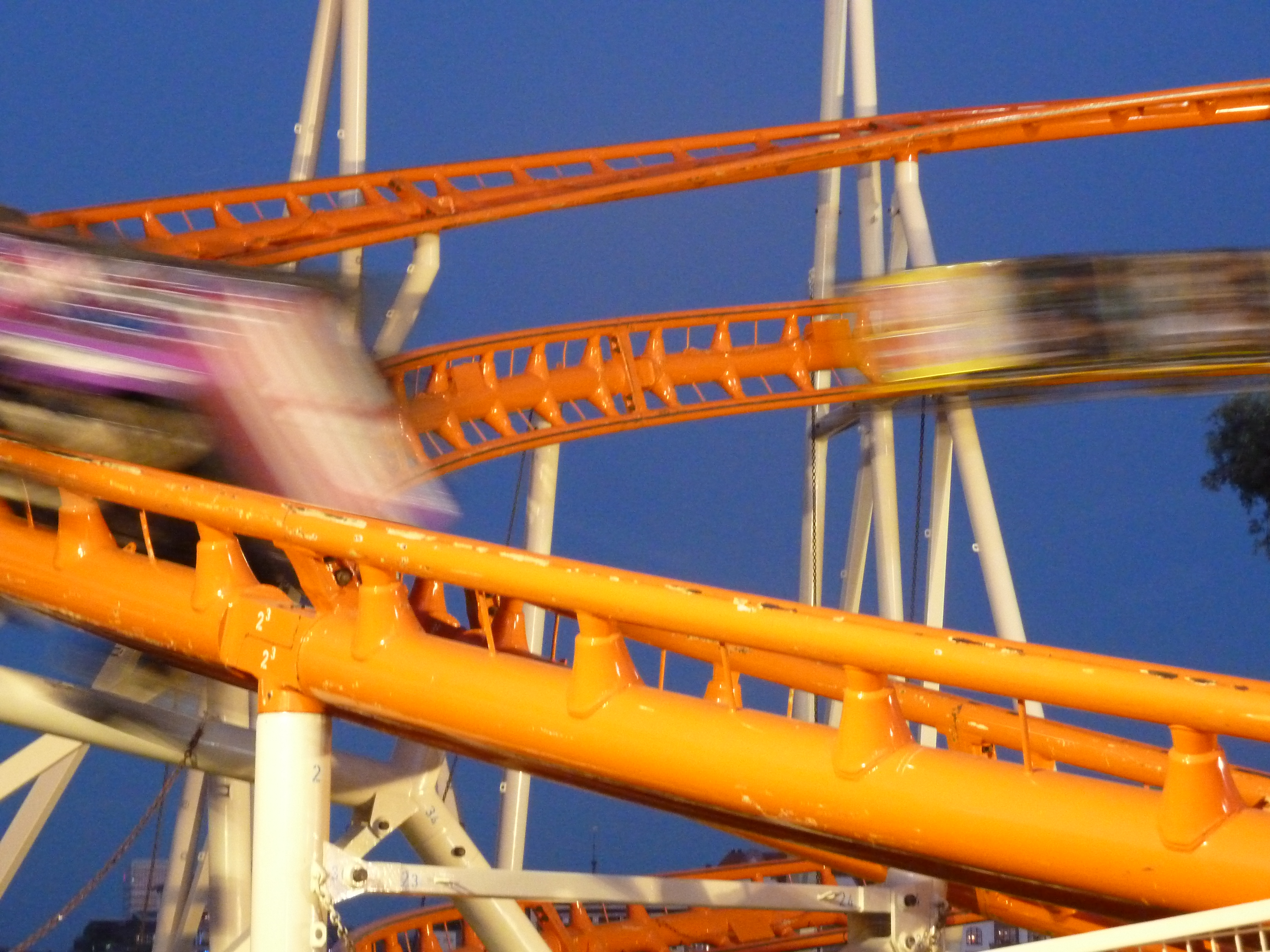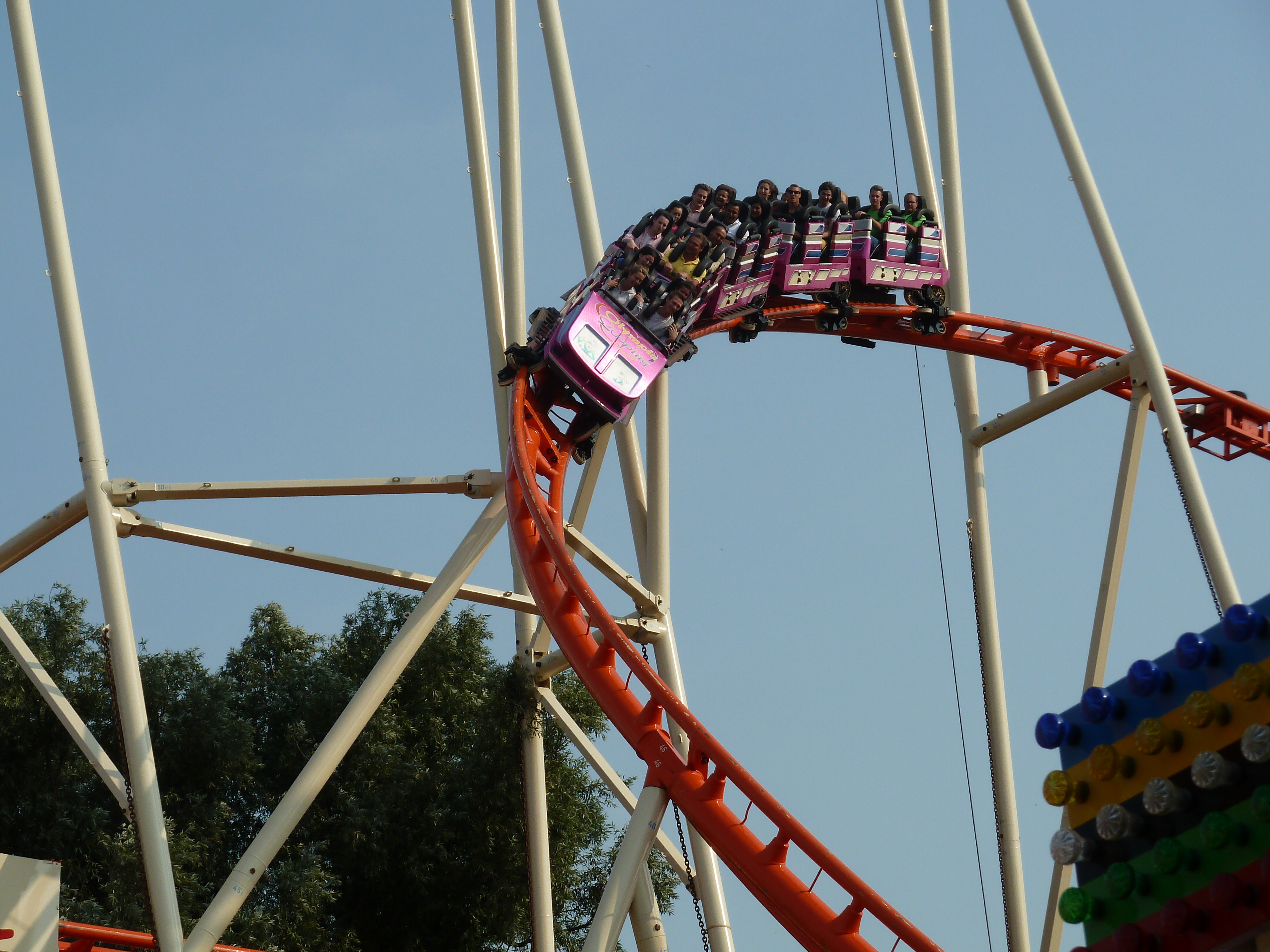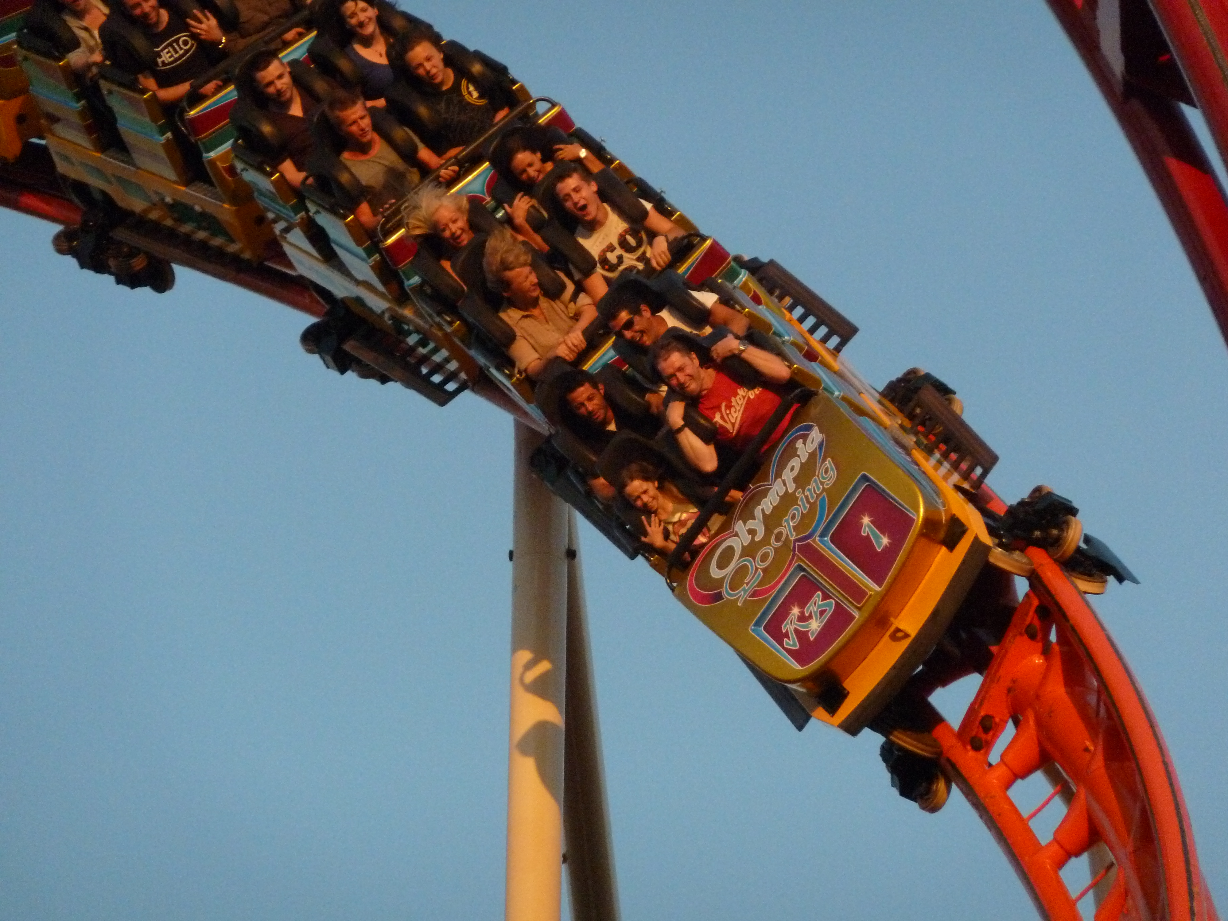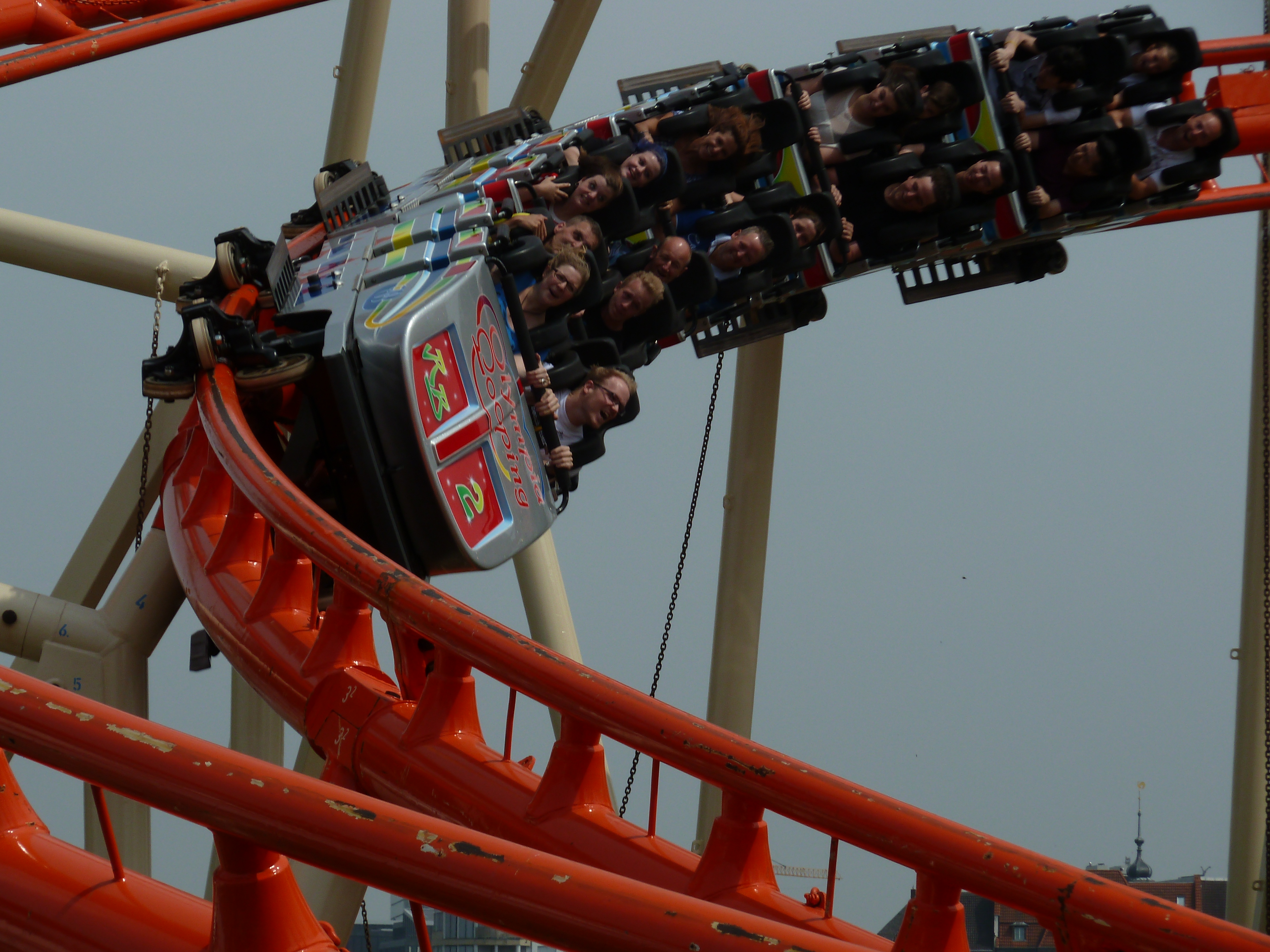 Mit Menschenmassen, Weihnachtspyramide, PowerTower II Kasse, im 5 Wagen- u. 7 Wagenbetrieb.