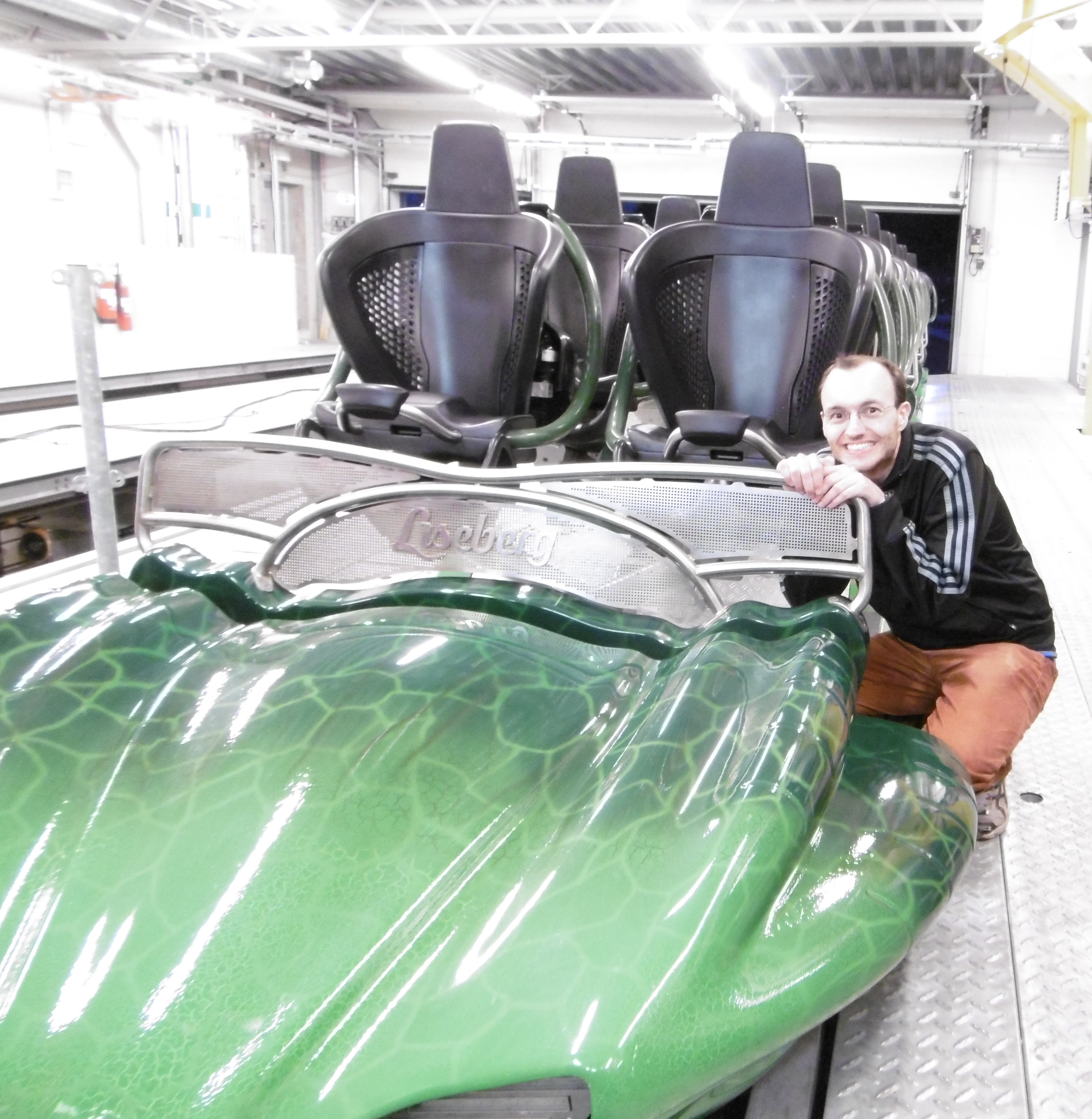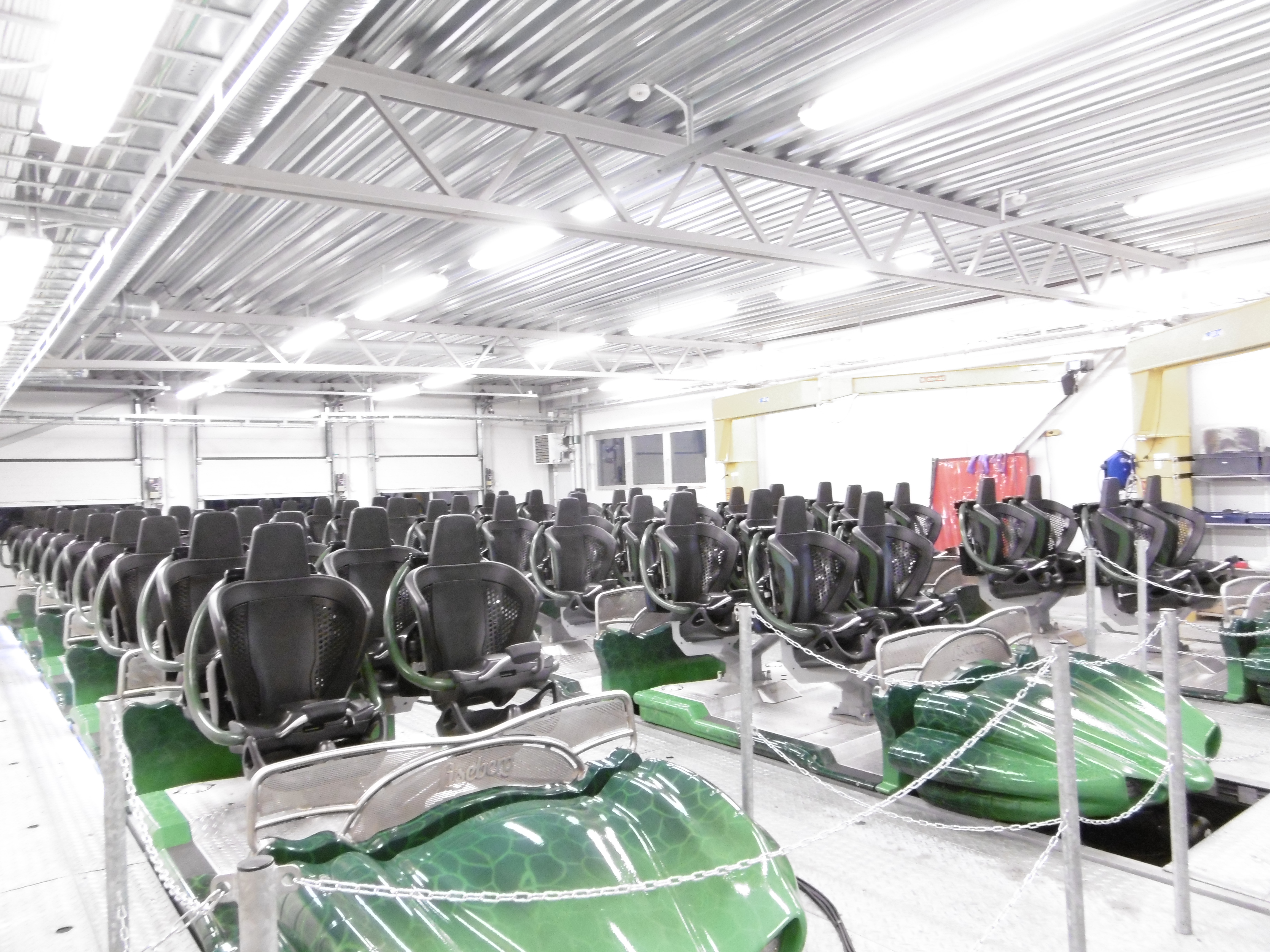 Megacoaster in die Wartungshalle zu dürfen. Netterweise gesellte sich noch ein Techniker zu uns, den ich anschließend noch ziemlich löcherte. So wird zum Beispiel der zweite Launch auch als Blockbereich eingesetzt. Ebenso kann ein Zug von dort im Stillstand so beschleunigt werden, dass er die Strecke schafft, jedoch sei dies seit der Eröffnung noch nie nötig gewesen.