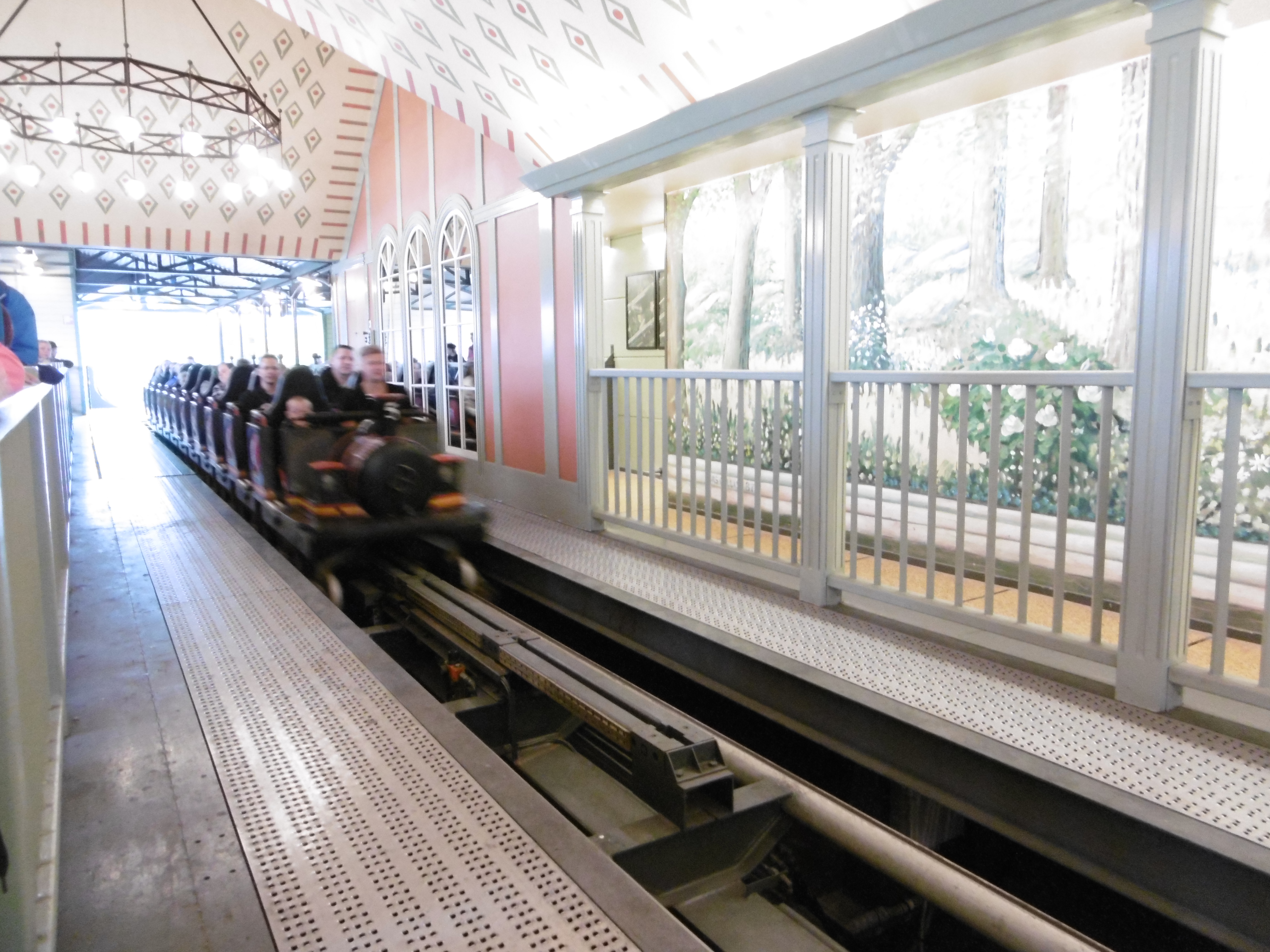 Von dort macht sich der Zug nach dem Abfahrtspfiff auf den Weg zu einem langen Lifthill.