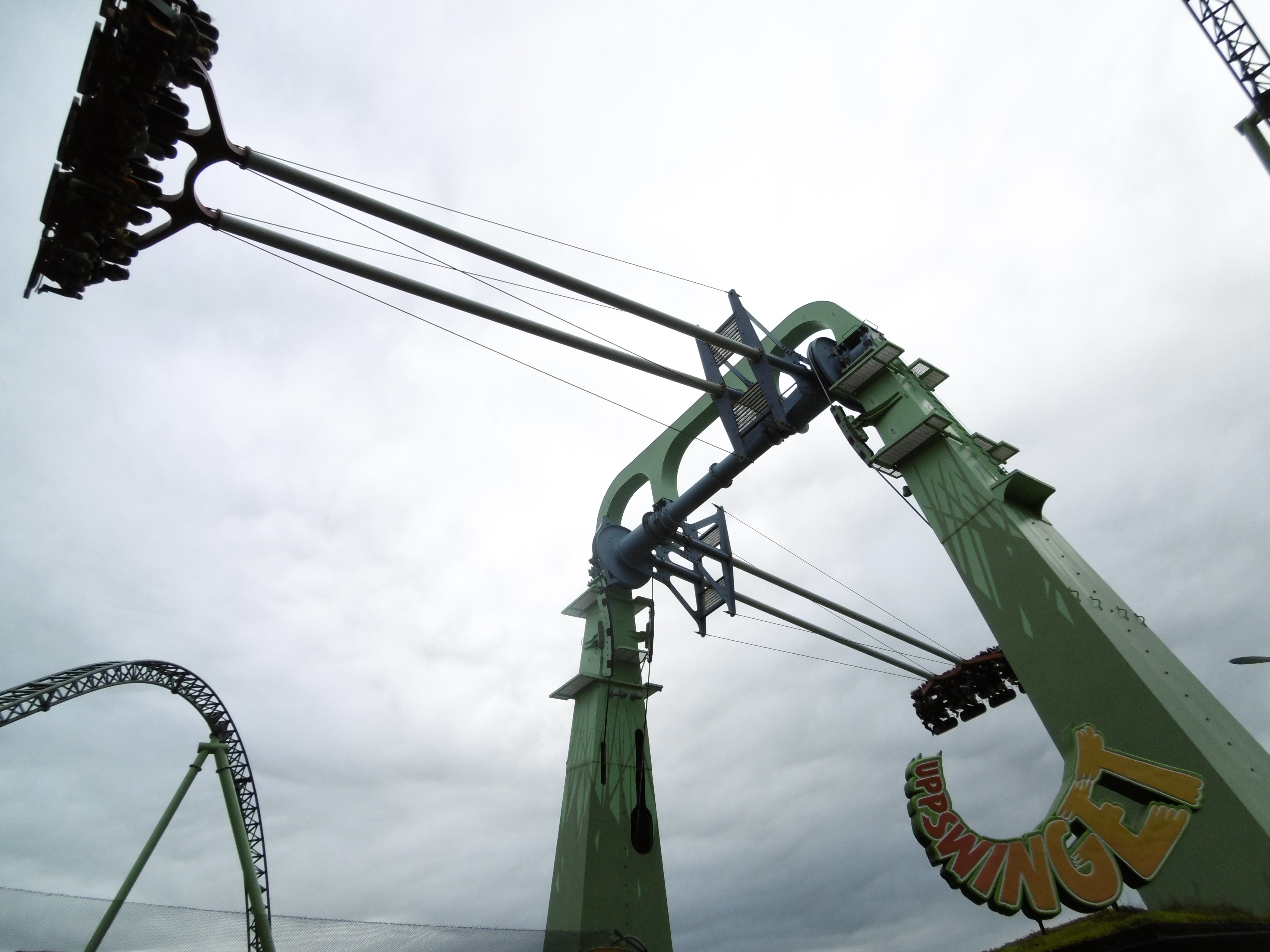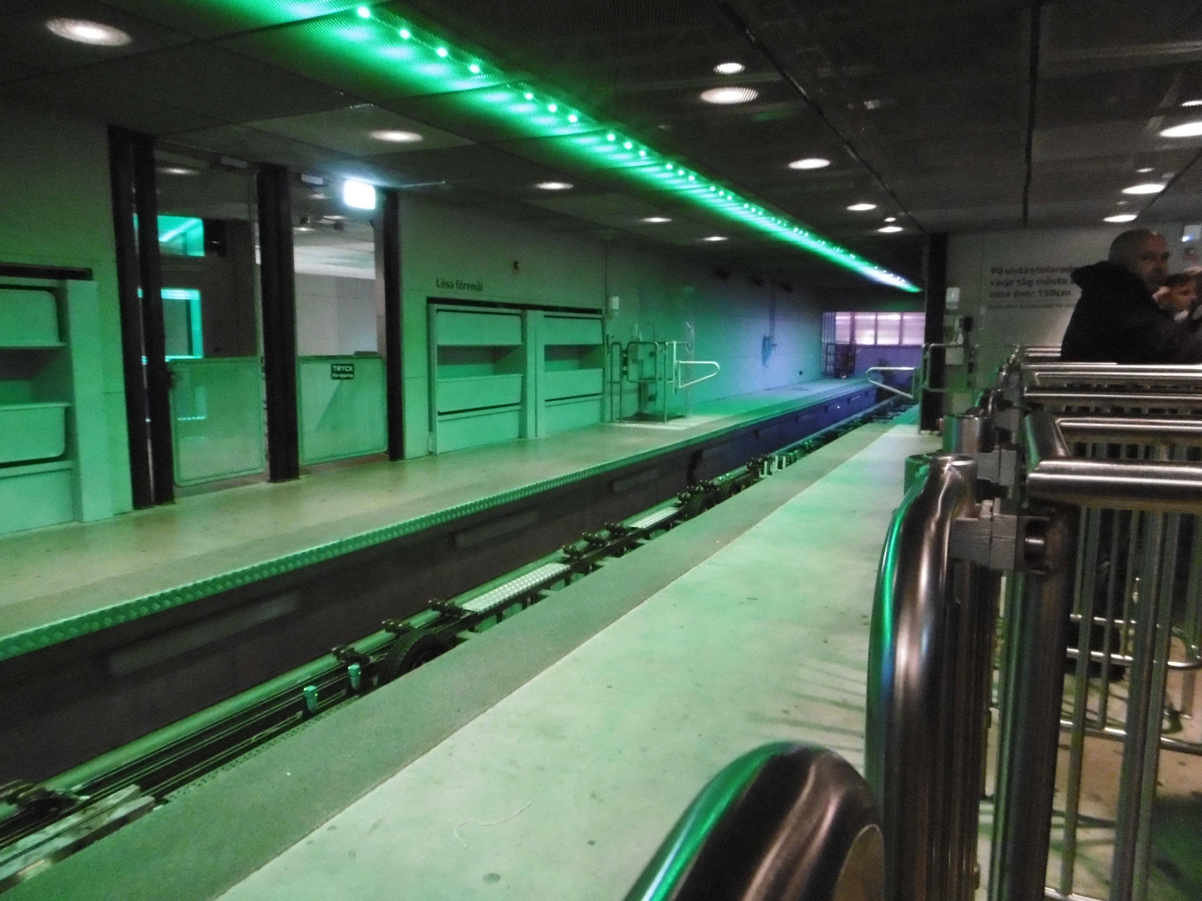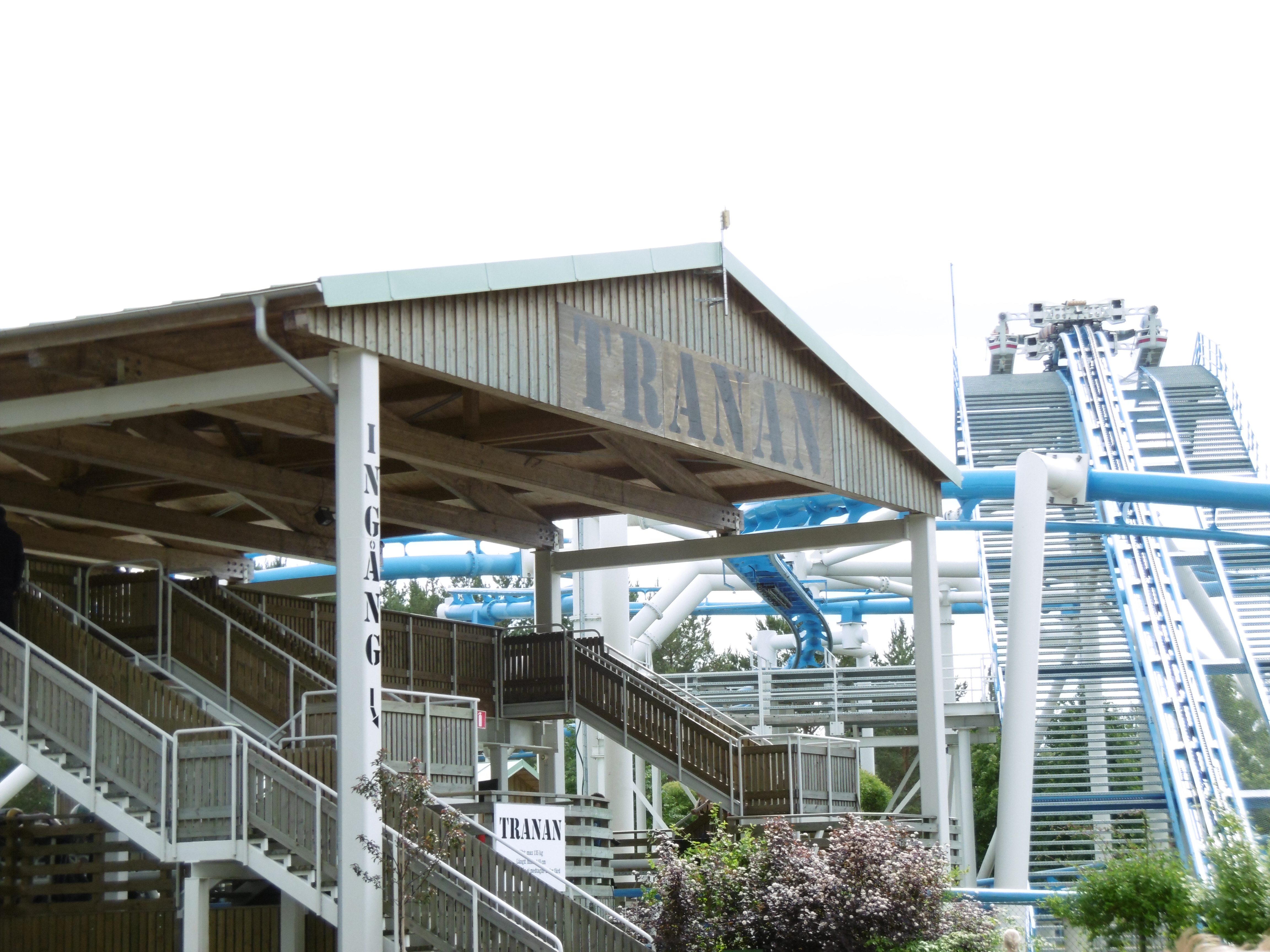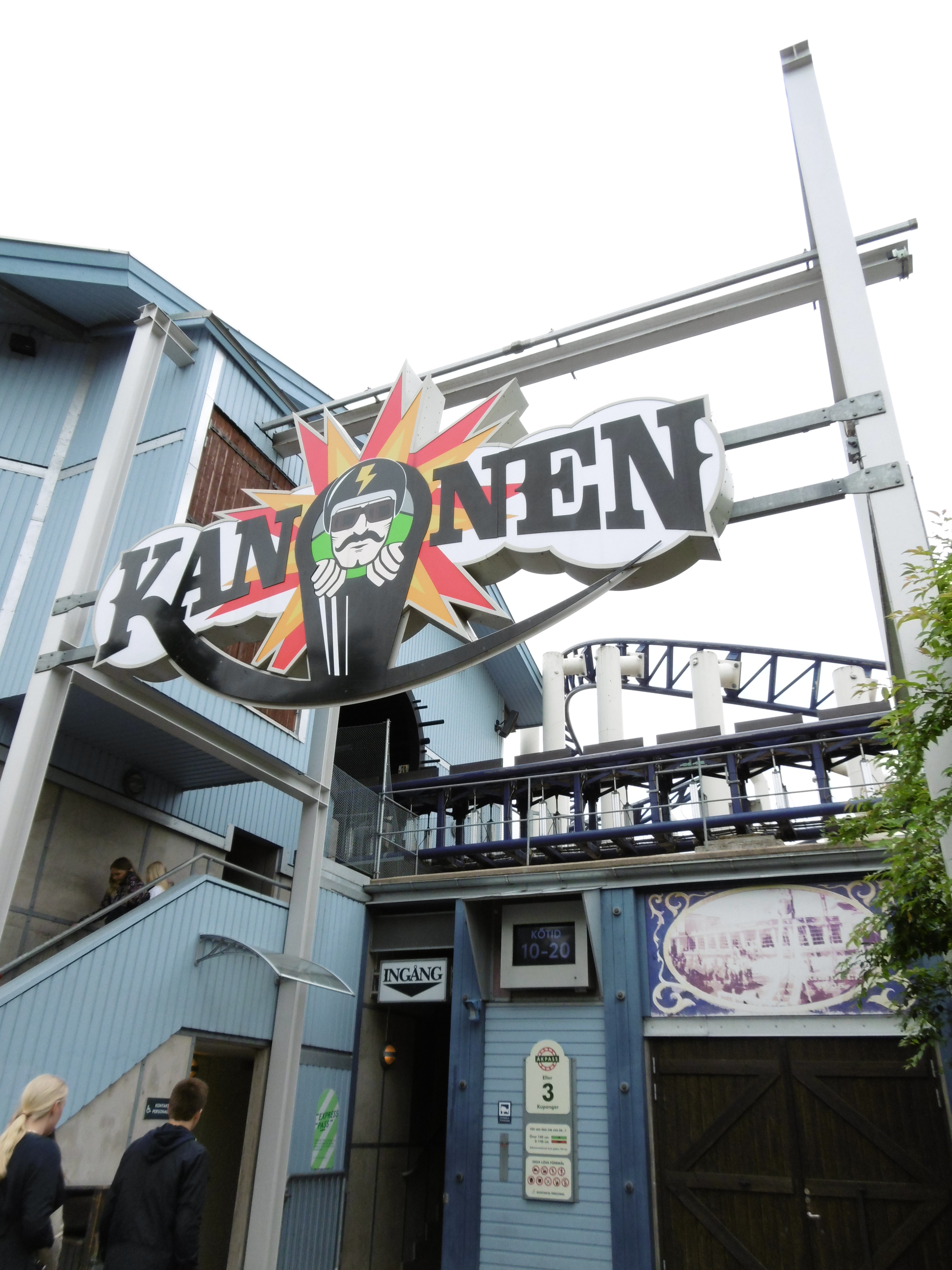 Nun war es 18 Uhr und eine Fahrt auf der schwedischen grünen Hölle stand an. Auch wenn wir noch eine ERT am Abend hatten, wollten wir kein Risiko eingehen, nicht dass die Bahn einen technischen Defekt hat und wir auf eine Fahrt damit verzichten müssen. Die nächsten Minuten lassen sich näherungsweise mit einer f(x) = –sin(x) Funktion beschreiben. Auf dem Weg nach oben fiel mir auf der Rolltreppe auf, dass mir jemand meine Kamera-Tasche gestohlen hat. Zum Glück habe ich meine Wertsachen immer an mir in verschlossenen Taschen und habe meine Kamera in der Hand gehalten. Trotzdem ging meine nach der Uppswinget überragende Laune rasant nach unten. Nachdem wir vor dem Eingangsschild von