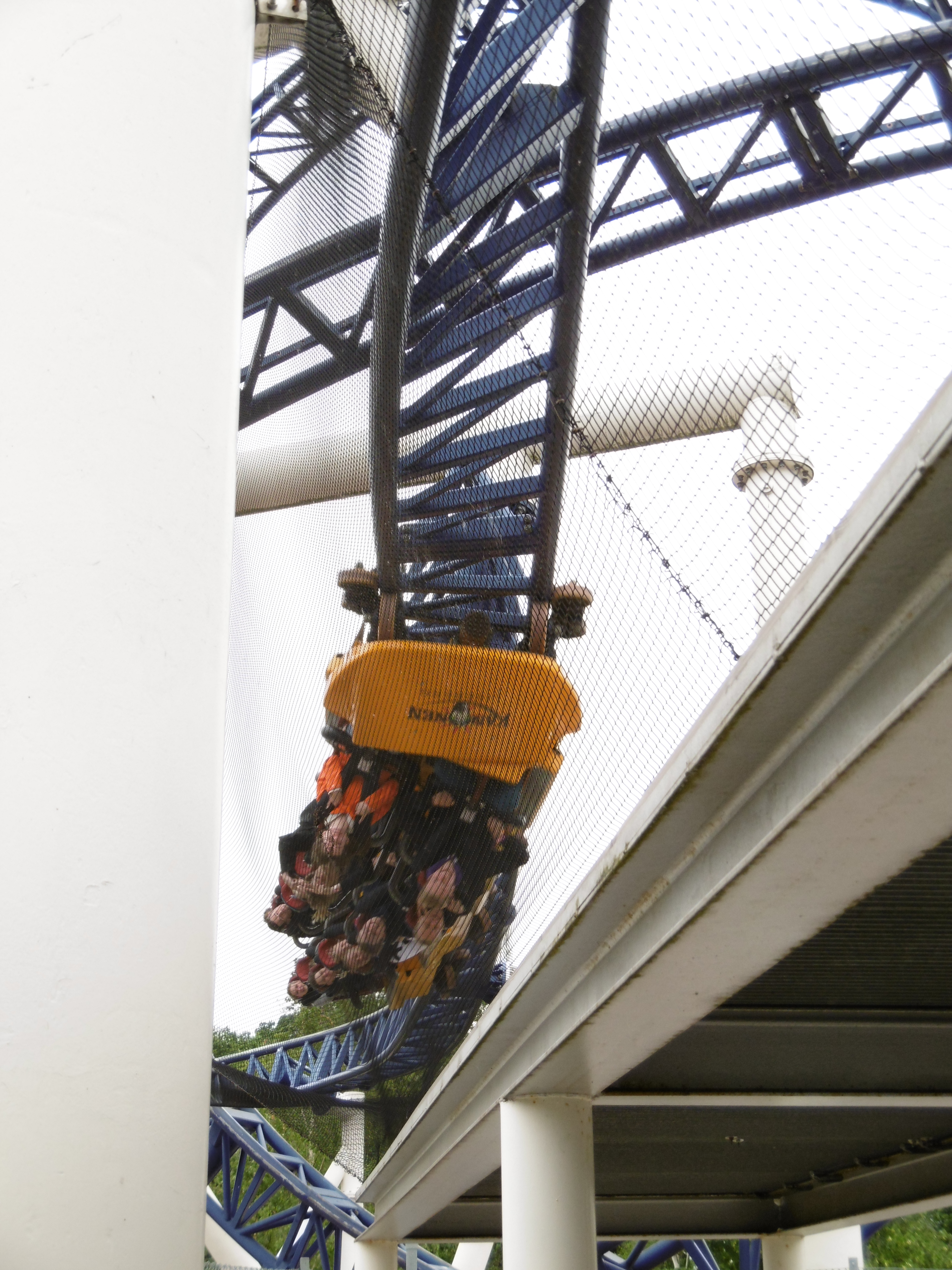 Beginnt hierbei doch auf diesen Plätzen zunächst eine Hangtime einzusetzen, in deren Folge der Zug aber mit noch auf den Kopf stehenden Fahrgästen wieder Geschwindigkeit aufnimmt und den im Bügel hängenden Fahrgast wieder in die Horizontale dreht.