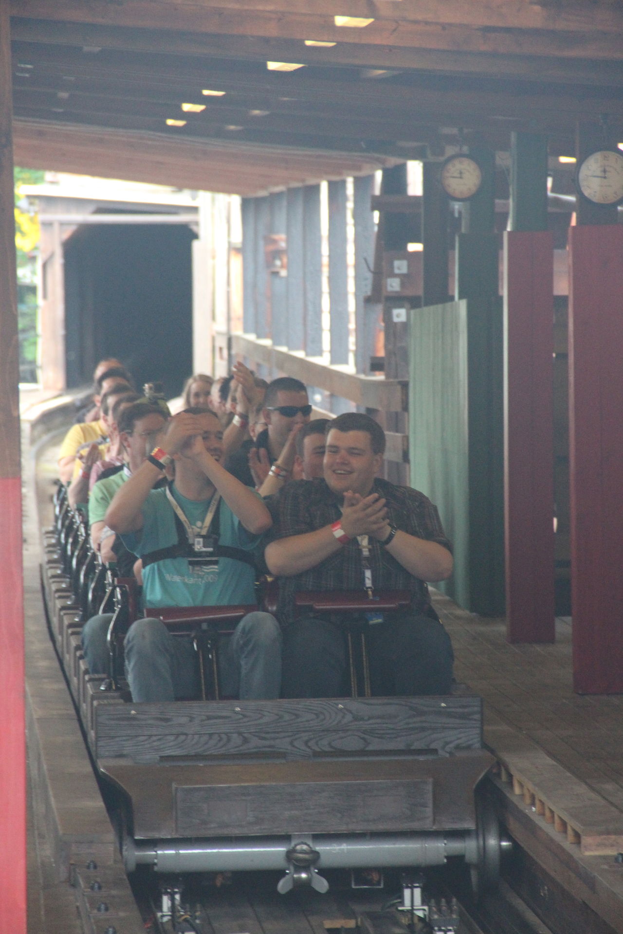 Die Besonderheit dieser Bahn ist die sogenannte "Winkepause". Hierbei wird der Zug nach ein paar Runden auf dem Lifthill kurz gestoppt, damit die Kinder Zeit haben ihren Eltern zu winken. Danach folgen dann die restlichen Runden. Eine witzige Idee, die uns auch noch die restliche Tour in Erinnerung bleiben sollte