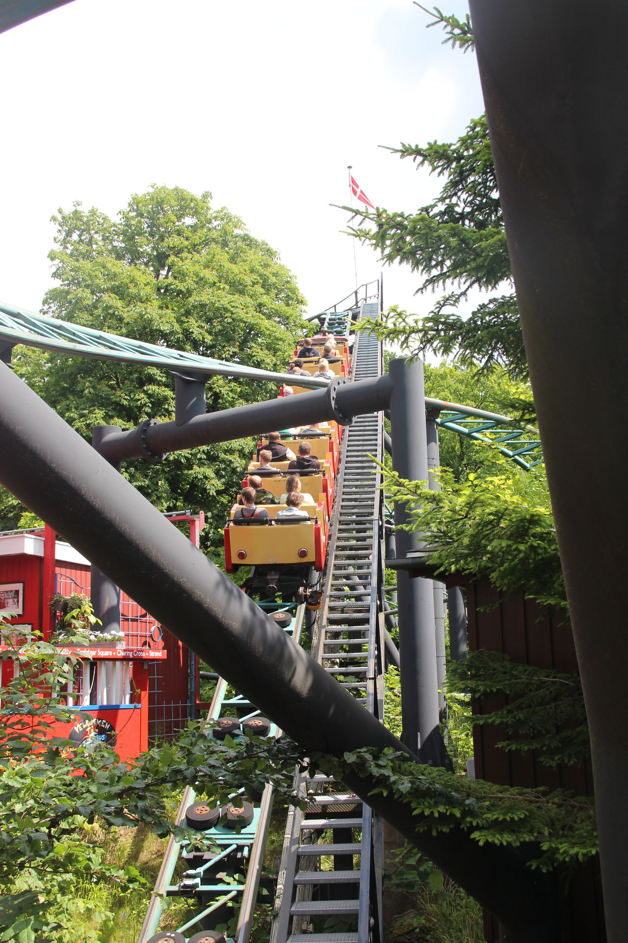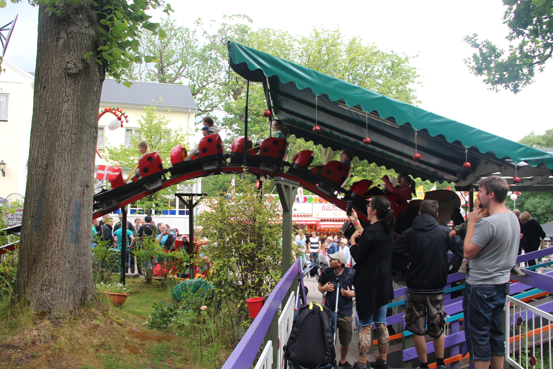 Als nächstes ging es zu Vilde Mus, einer Wilden Maus aus dem Hause Mack. Da es in Bakken eine Höhenbeschränkung gibt, ist die Maus ein ganzes Stück in den Boden eingelassen.