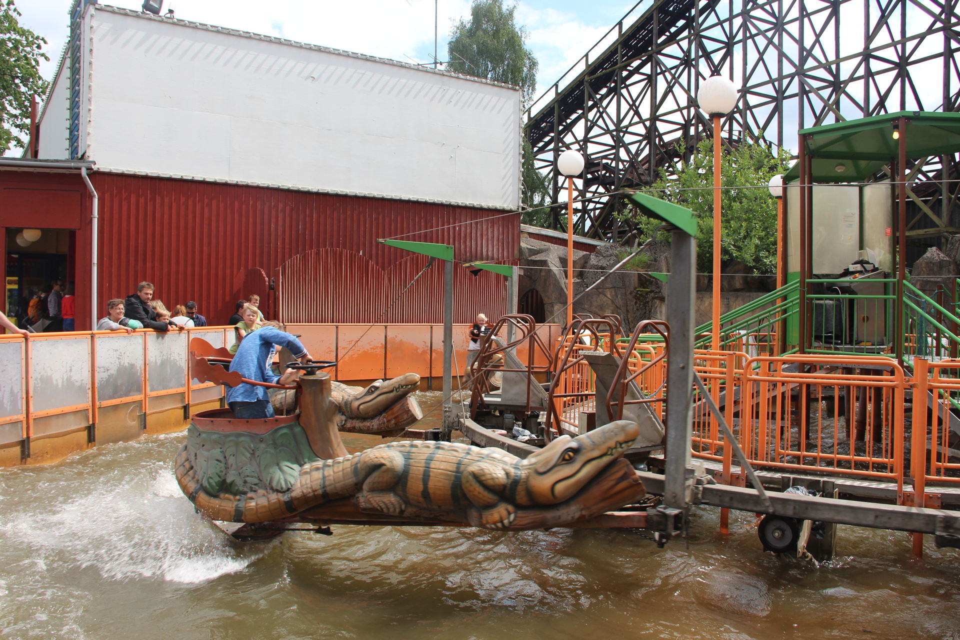 Eine Wildwasserbahn gibt es auch in Bakken. Die auf Stelzen über einem kleinen See gebaute Anlage bietet 2 Abfahrten und eine doch recht lange Fahrt.
