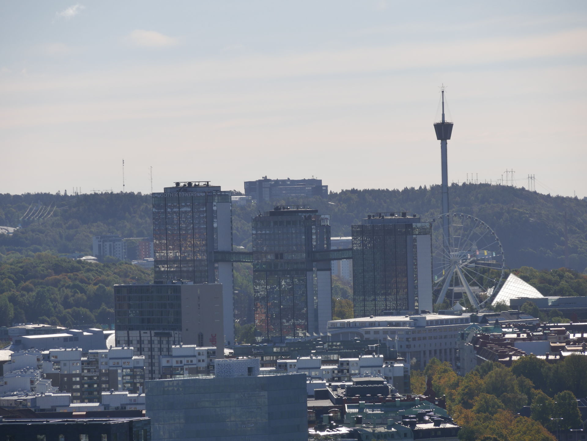 Da der Park am Ende der Sommersaison nur am Wochenende geöffnet hat, stand am Tag der Ankunft Sightseeing auf dem Programm. Das rot-weiße Hochhaus "Läppstiftet" besitzt eine Aussichtsetage, von der man einen sehr schönen Überblick über ganz Göteborg hat.