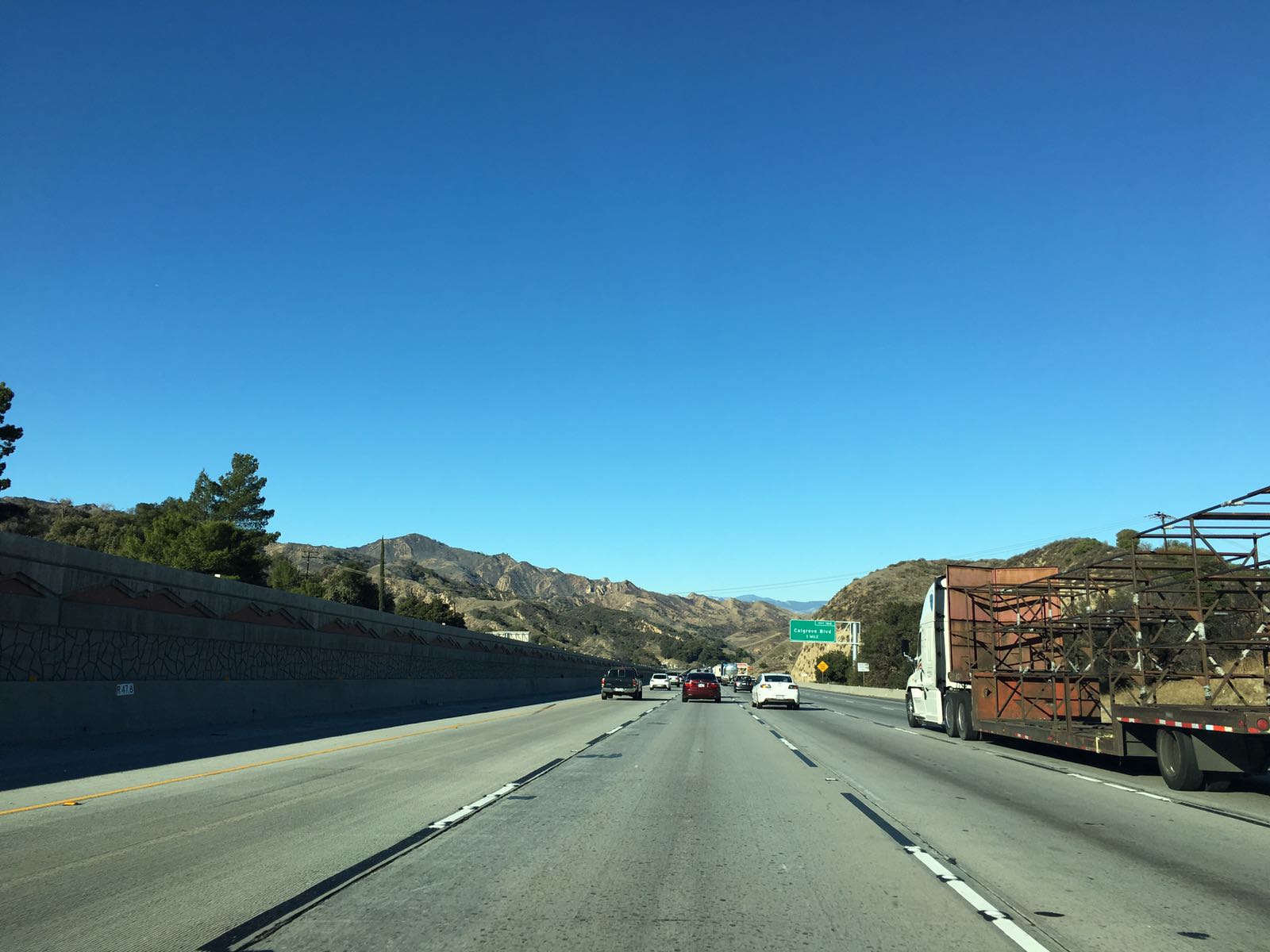 Da hatte sie vollkommen Recht behalten. Solange man sich noch im Großraum Los Angeles auf der I5 befindet, gibt es immer mal wieder dichten Verkehr und kleine Staus. Sie kreuzt dort auch mit mehreren anderen befahrenen Schnellstraßen und so verdichtet sich der Verkehr dort immer wieder.