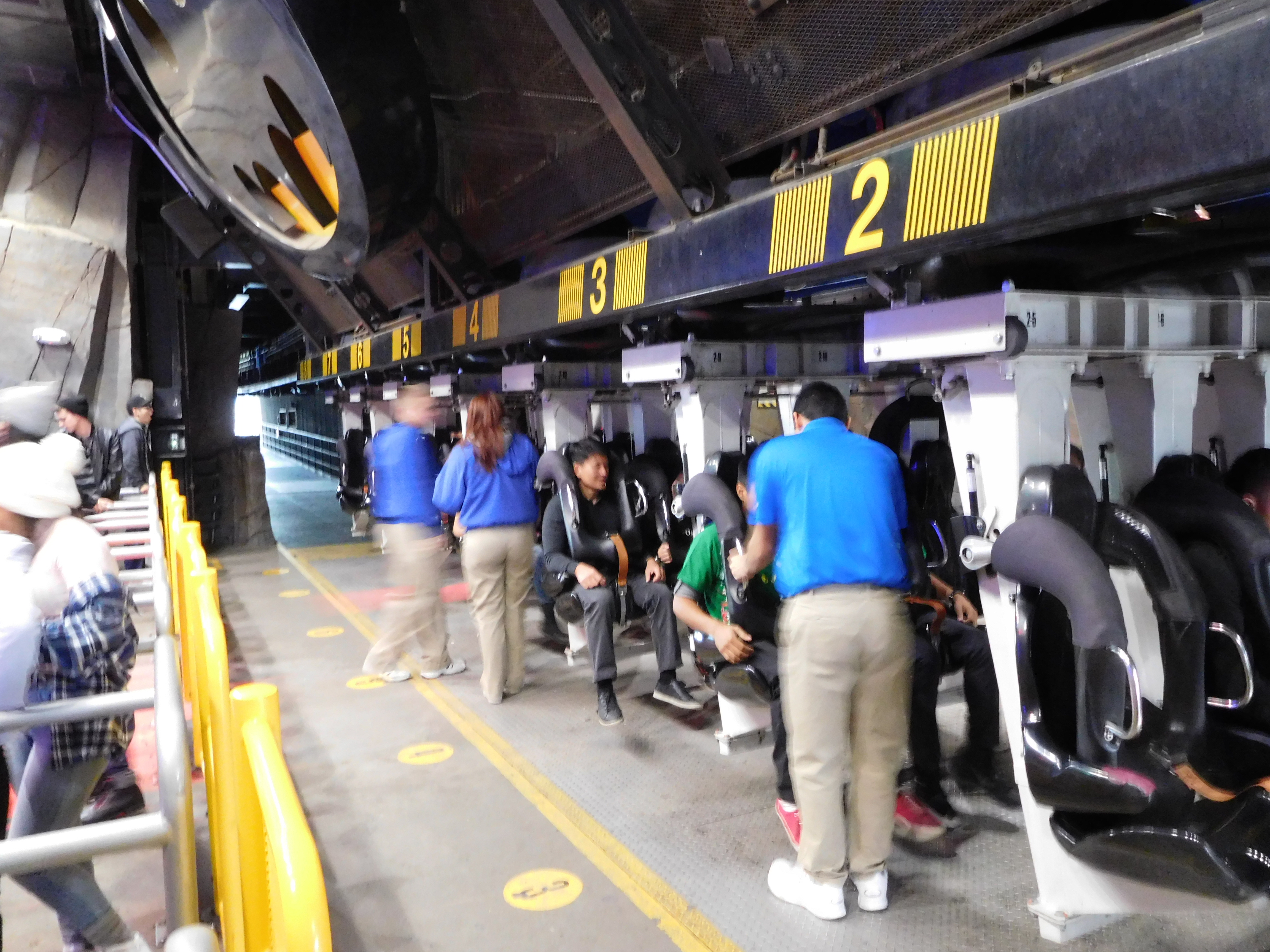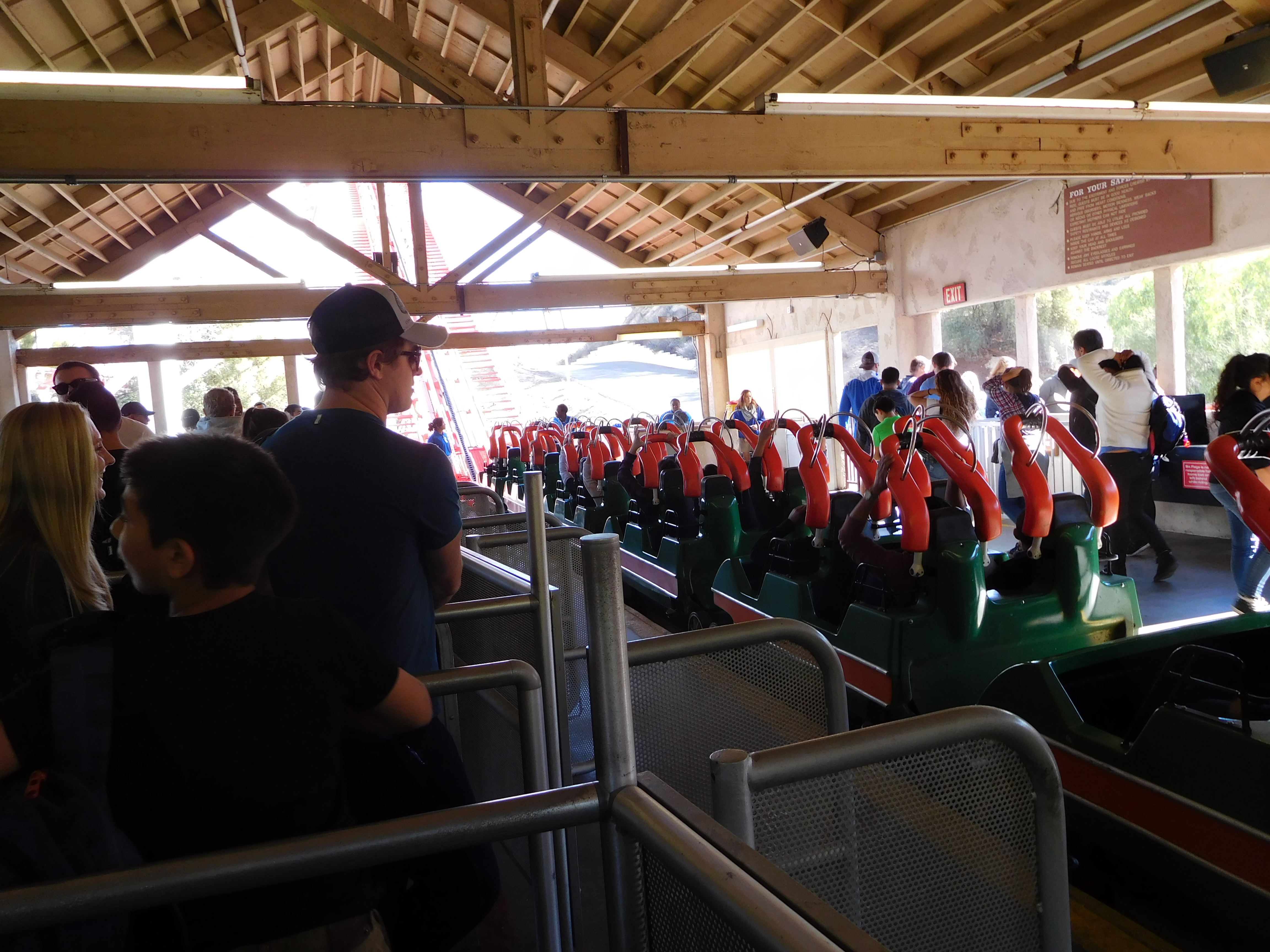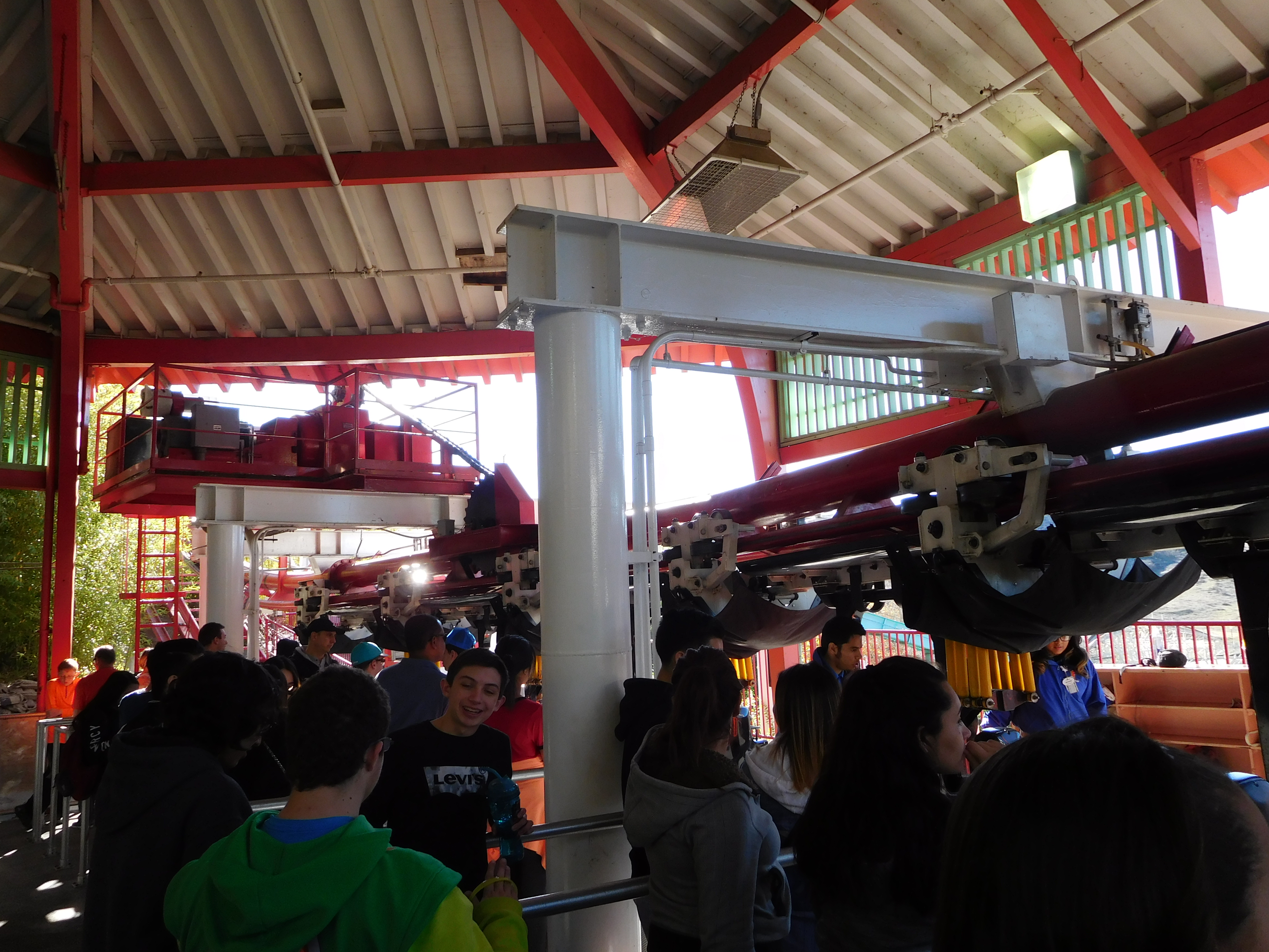 Obwohl die Warteschlange immer noch ziemlich lang war, ging es sehr schnell voran und wir warteten nur 20 Minuten. Grund dafür war ein 3-Zug-Betrieb mit sehr guter Abfertigung. Auch hier kann ich den Mitarbeitern wie bei der Viper nur ein Lob aussprechen: Das war für meine Begriffe schon ziemlich fix!