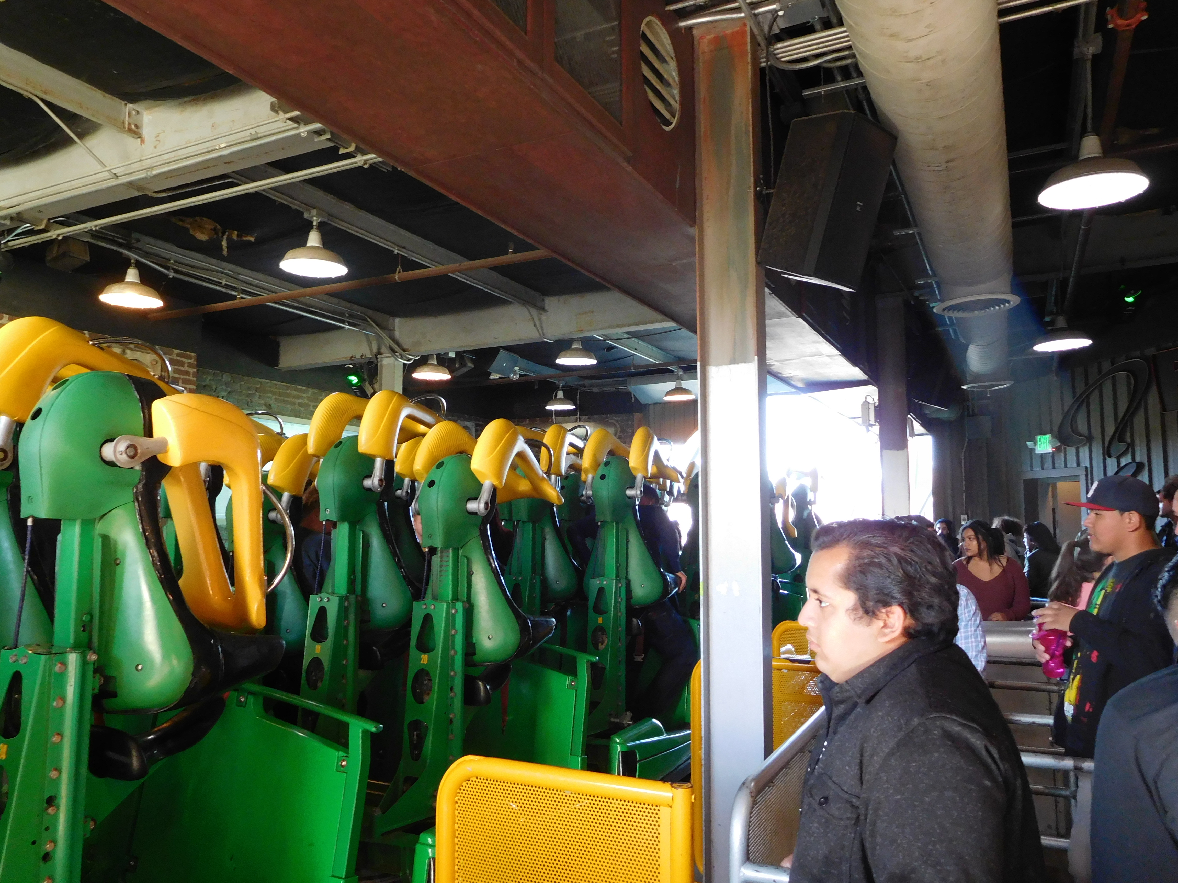 Aus der Station wird man mit einem "Say: Whoop Whoop!" verabschiedet. Dabei schaute die Mitarbeiterin drein wie drei Tage Regenwetter. Keine Ahnung, wer auf die blöde Idee gekommen ist, sowas rufen zu müssen. Selbstverständlich reagierte da keiner drauf. Ich hätte aber an ihrer Stelle genau so ein Gesicht gezogen, wenn ich sowas rufen müsste. Leider gab es das noch an 2-3 Bahnen ebenso. Ein einfaches "Enjoy your ride!" wie im Knotts Berry Farm ist doch viel passender und geht einem nicht nach mehreren Stunden Rufens auf den Keks.