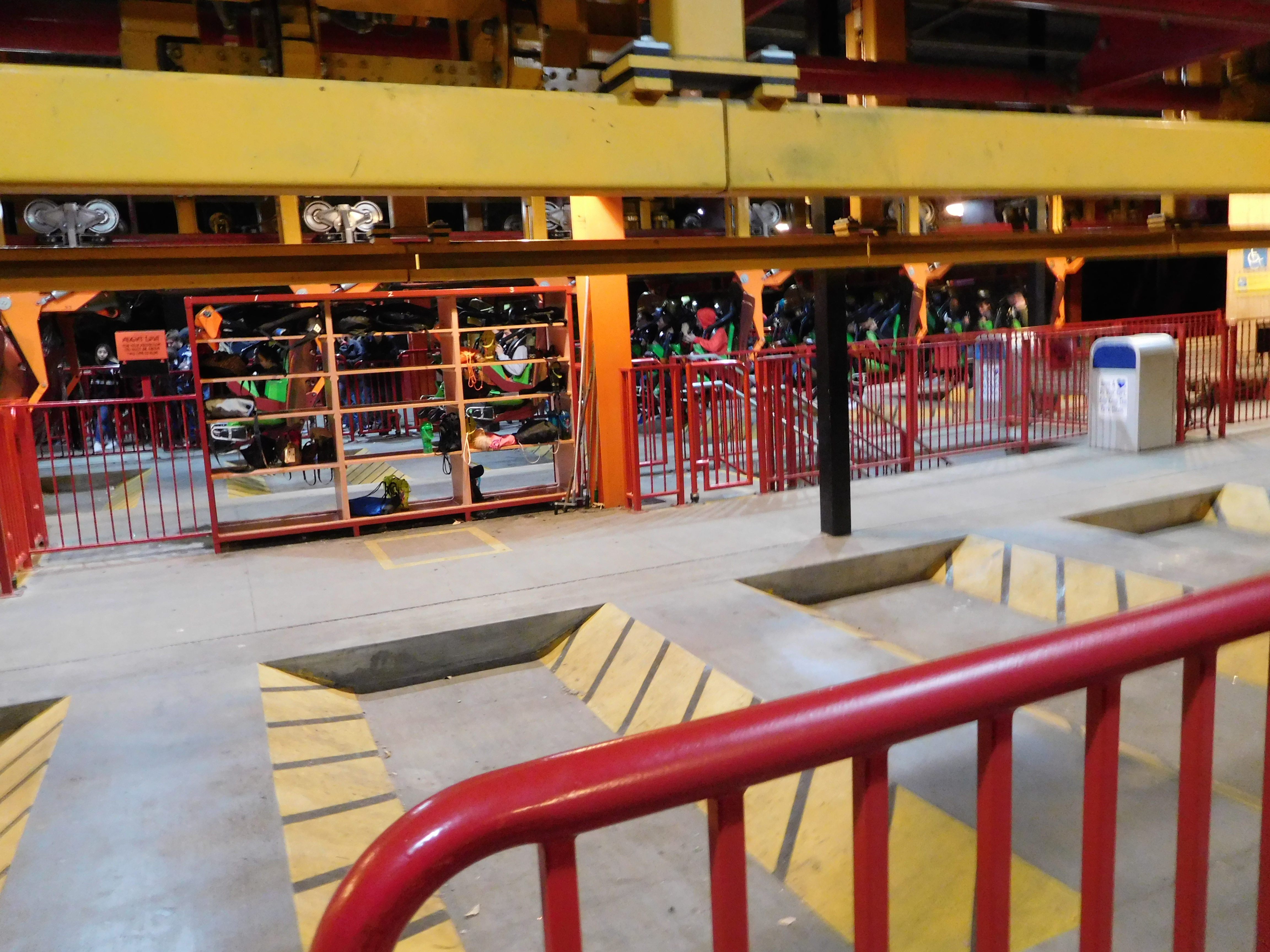 Die Abfertigung war nicht perfekt, für einen Coaster mit komplexeren Bügelsystem mit meist nicht mehr als 2 Minuten aber sehr in Ordnung. Es gab sogar Hinweisschilder, sich bitte auf alle Reihen zu verteilen, um die Kapazität der Bahn nicht zu drücken. Ja, sowas gibt es sogar bei Six Flags.
