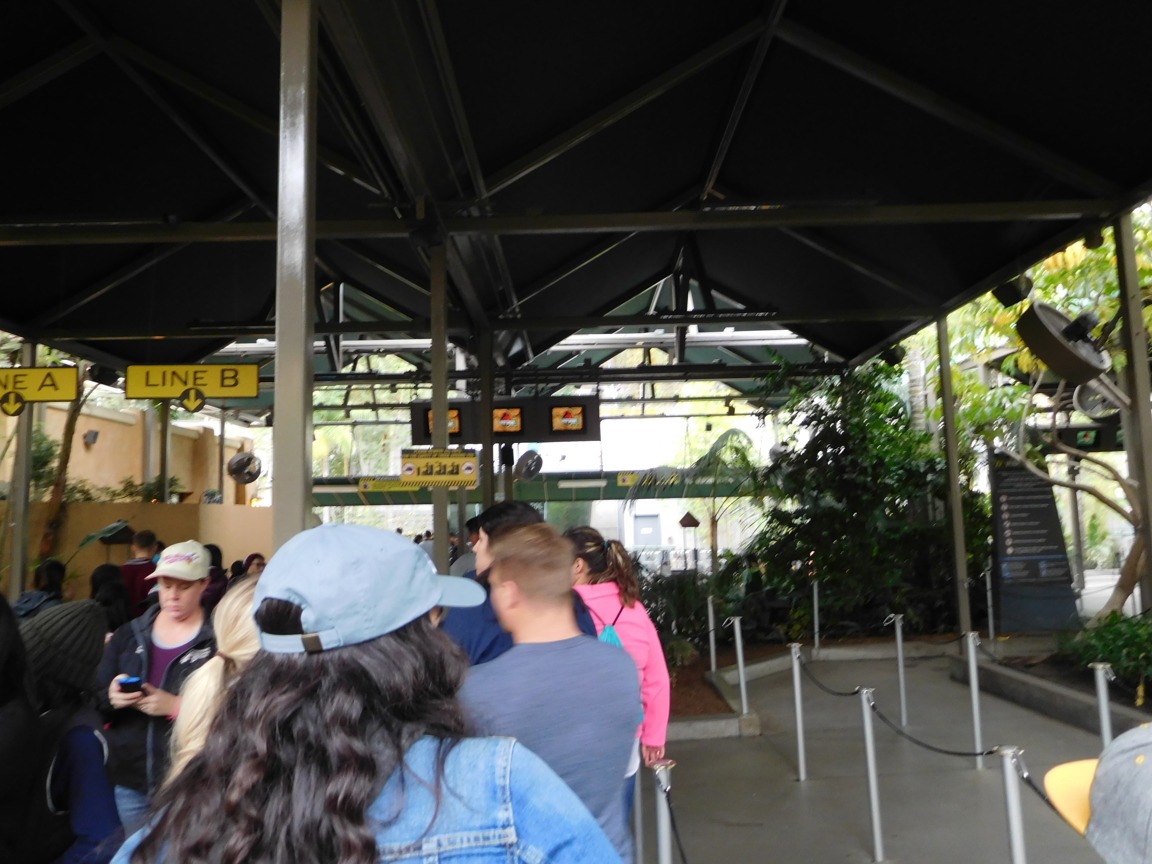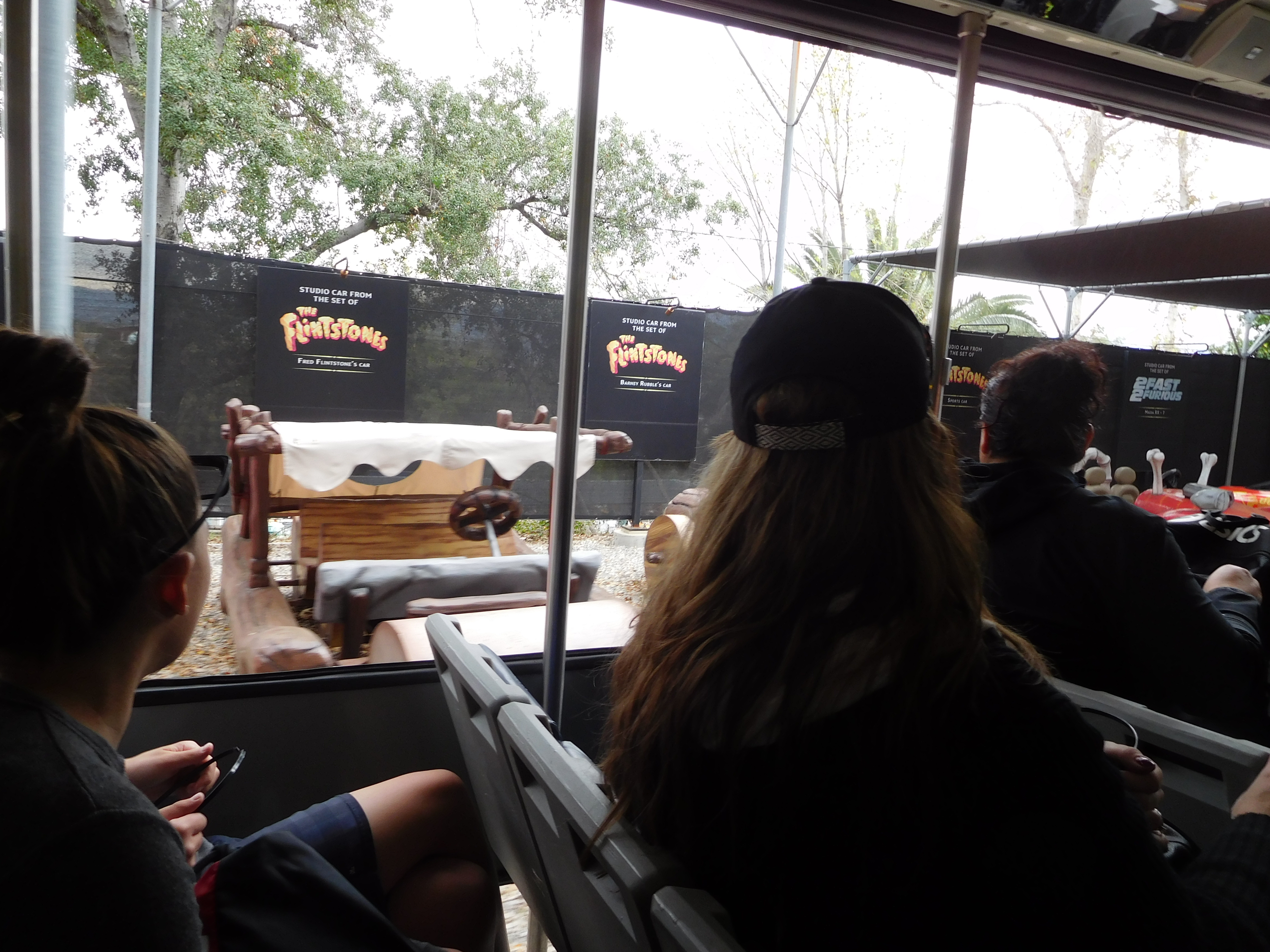 Bei der Studio Tour fährt man an mehreren Drehorten vorbei, in denen Hollywood-Filme spielen. Dabei nimmt man Platz in an den Seiten offenen Bussen, die mit um die 5-6 Wagen aneinandergekettet sind. Die Bus-Ketten stehen da auch in Reih und Glied, was eine Wahnsinns-Kapazität erzeugt. Die Warteschlange war bei unserer Wartezeit schon recht lang, doch es ging einfach extrem schnell voran. Später ging es hier noch auf bis zu 50 Minuten Wartezeit hoch, was ich bei der Kapazität schon sehr erstaunlich finde.