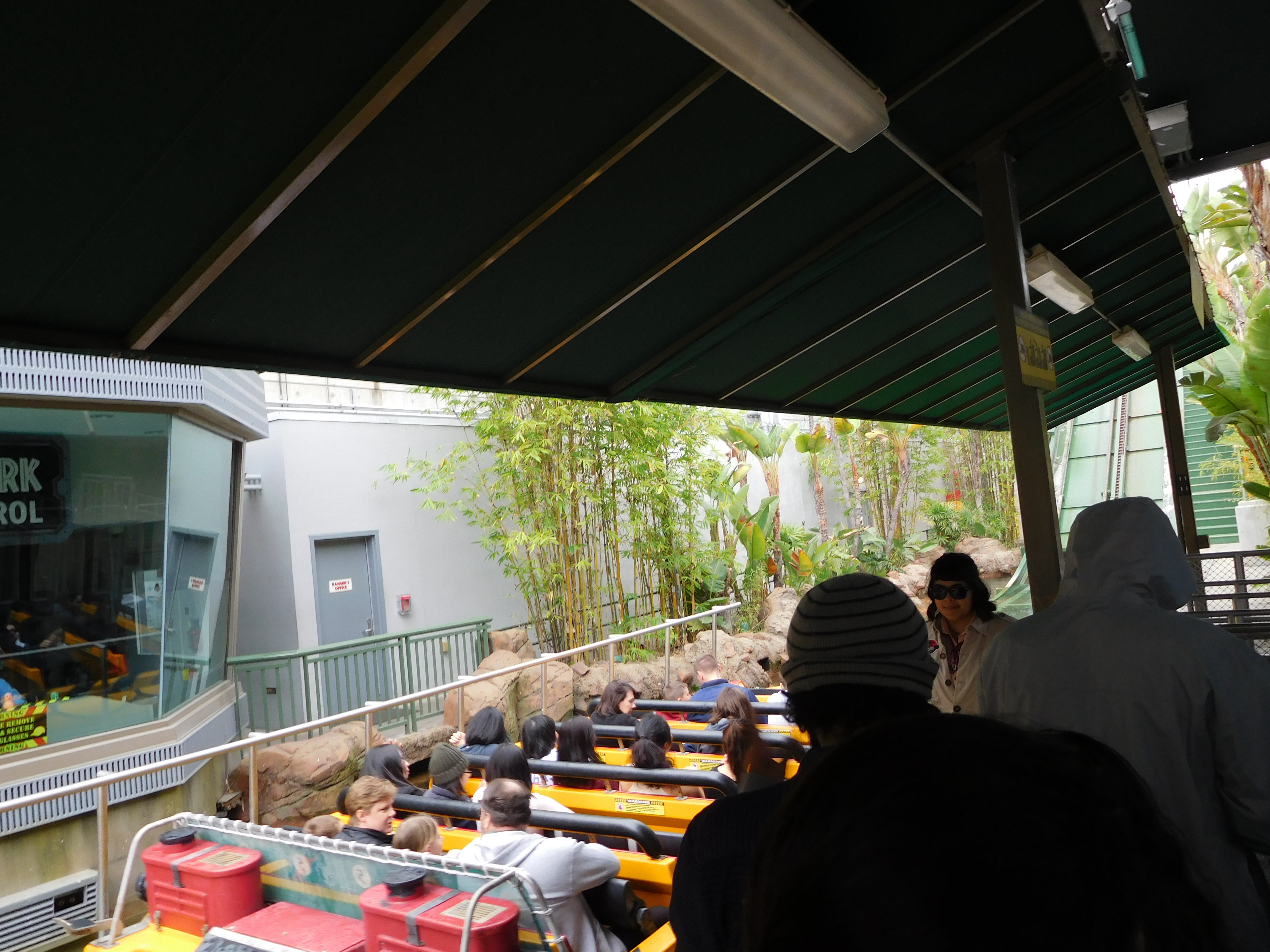 Auch diese Bahn würde ich mehr als Themenbahn bezeichnen. Es gibt auch zwei Drops insgesamt, wobei einer etwas höher ist. Doch den Großteil der Fahrt machen doch eine sehr gute Gestaltung aus. Den schon sehr gut thematisierten Timber Mountain Log Ride in Knotts Berry Farm konnte diese Bahn tatsächlich noch übertreffen. Ein paar sehr schöne Szenen und man trifft immer wieder auf sehr schicke Animatronic-Saurier. Auch atmosphärisch ist das Ganze sehr toll aufgebaut und man fühlt sich auch an manchen Stellen wie im Film. Nass wird man allerdings eher durch wasserspeiende Echsen als durch die Wasserbahn an sich.