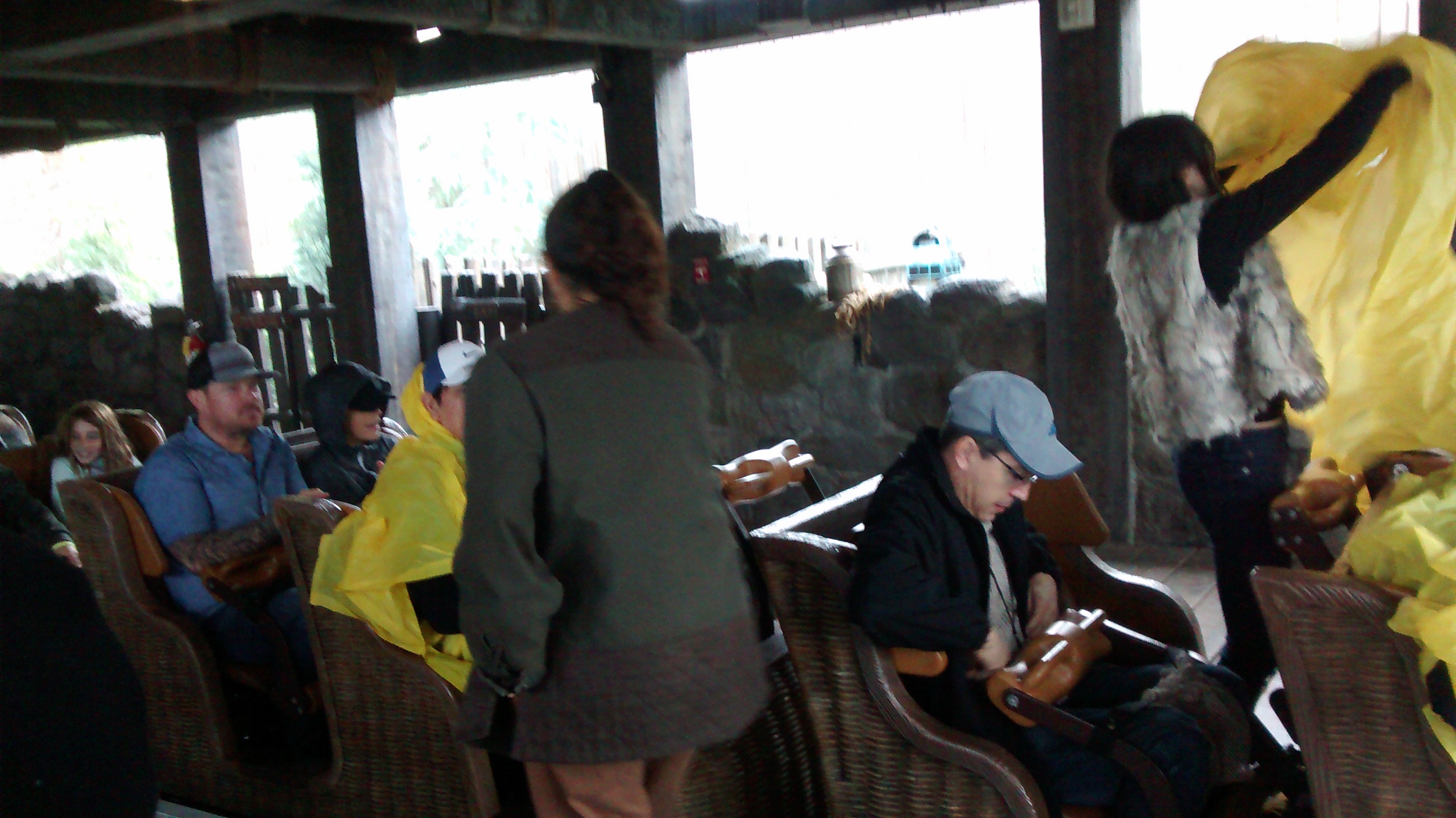 Nach etwas Zeit kamen wir an der Station an. Die Regencapes deuten es an: Es hatte das erste Mal auf der Tour zu regnen begonnen.