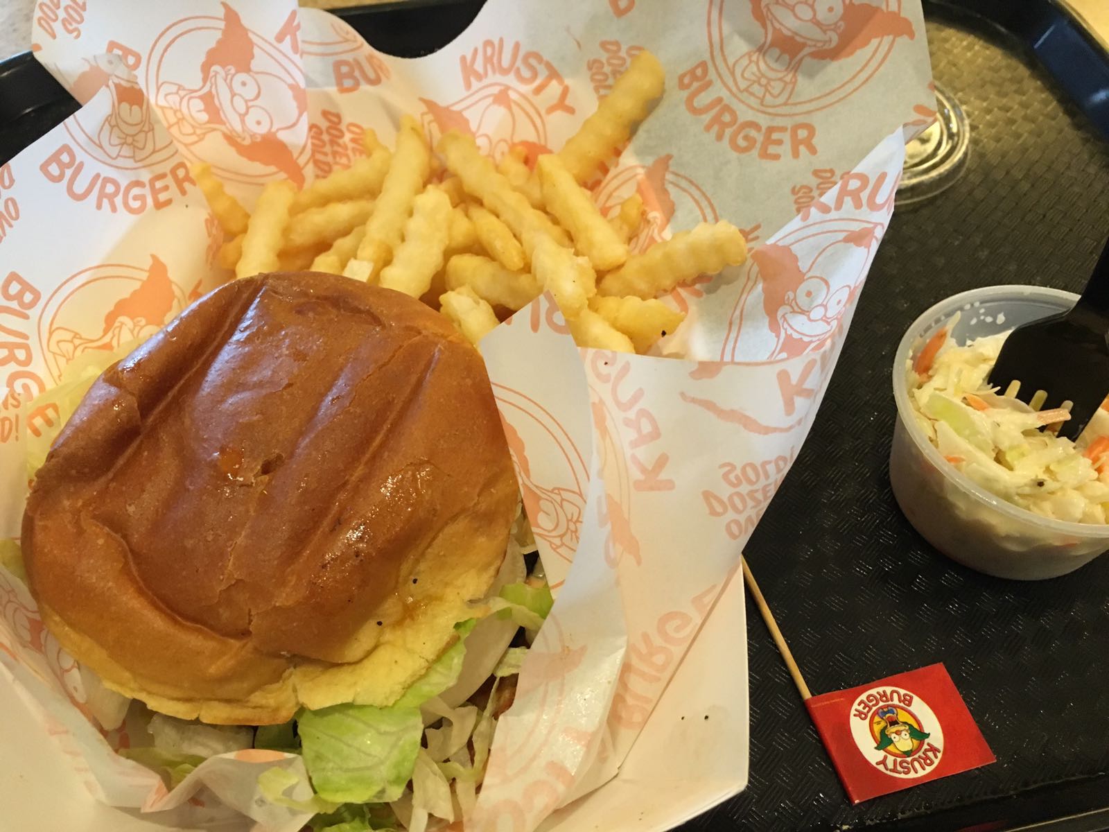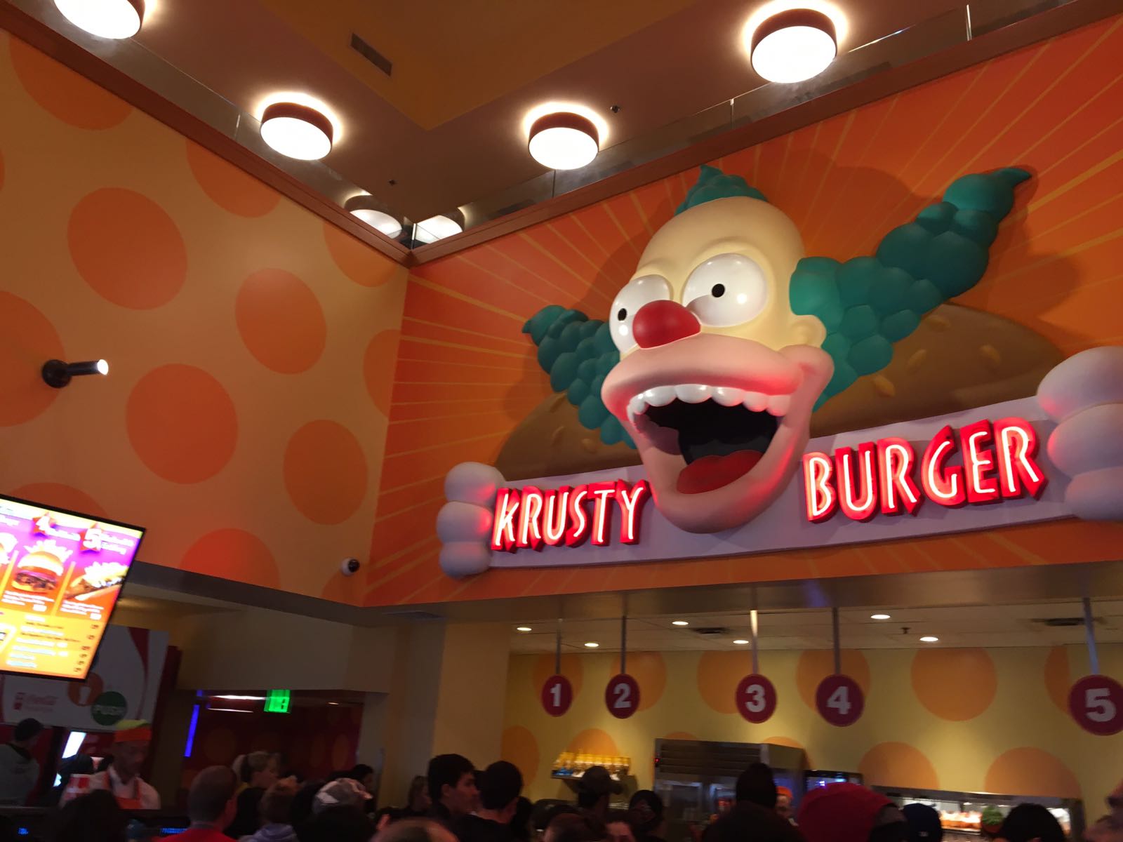 Als Simpsons-Fan war das für ihn natürlich auch eine gute Adresse. Sein Burger Menu war zwar teuer, aber im Parkvergleich noch einigermaßen im Rahmen.